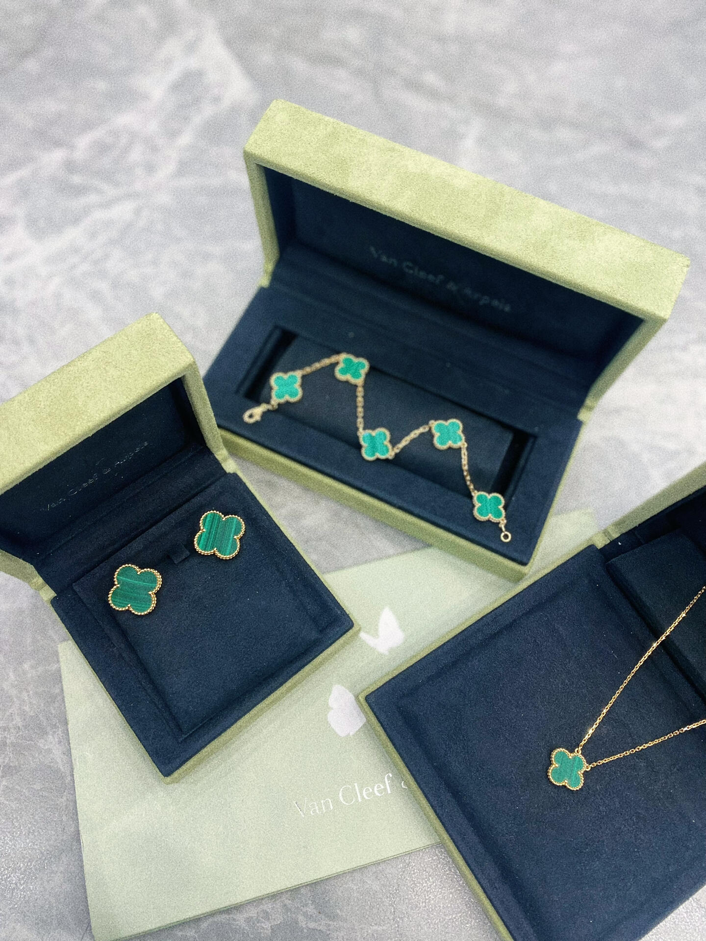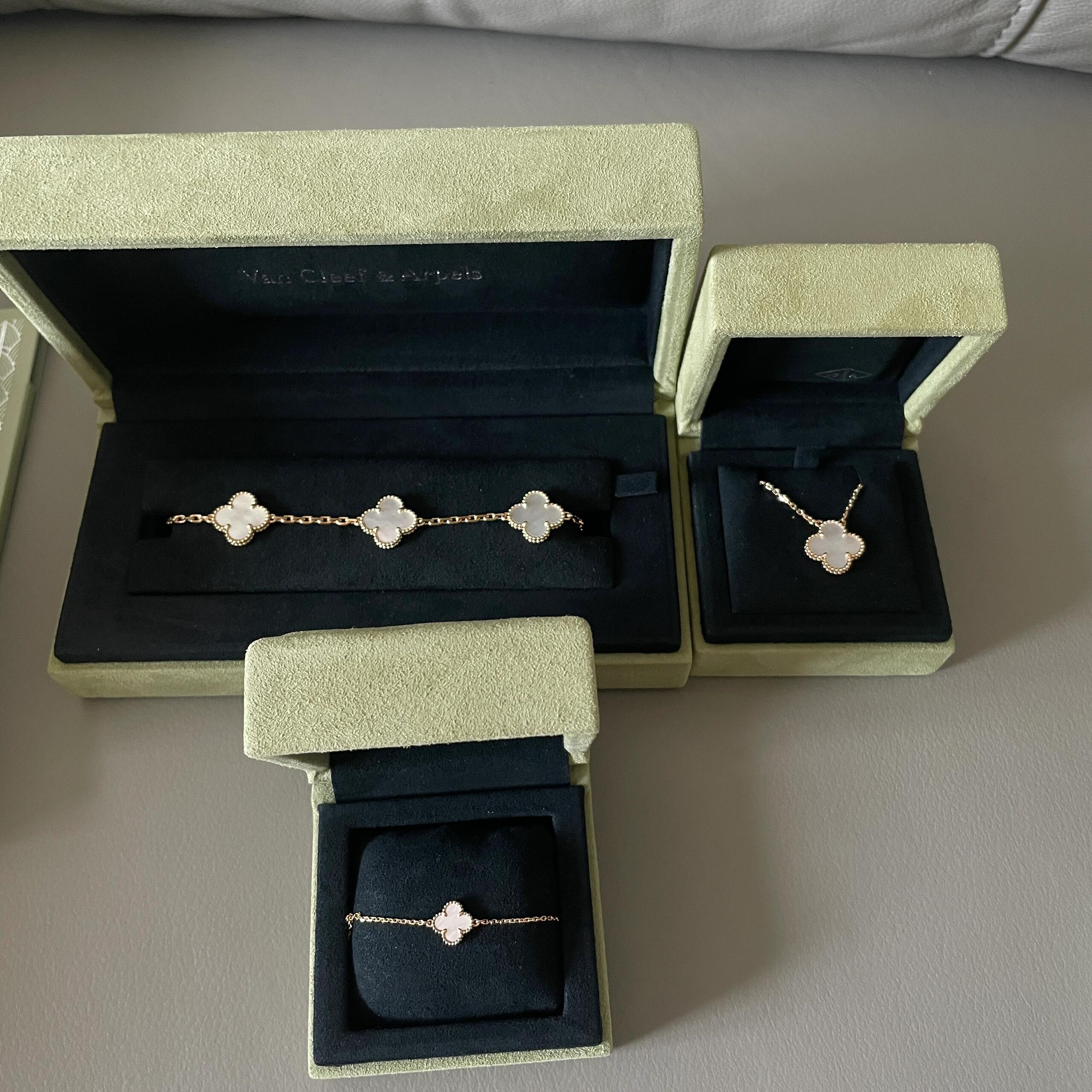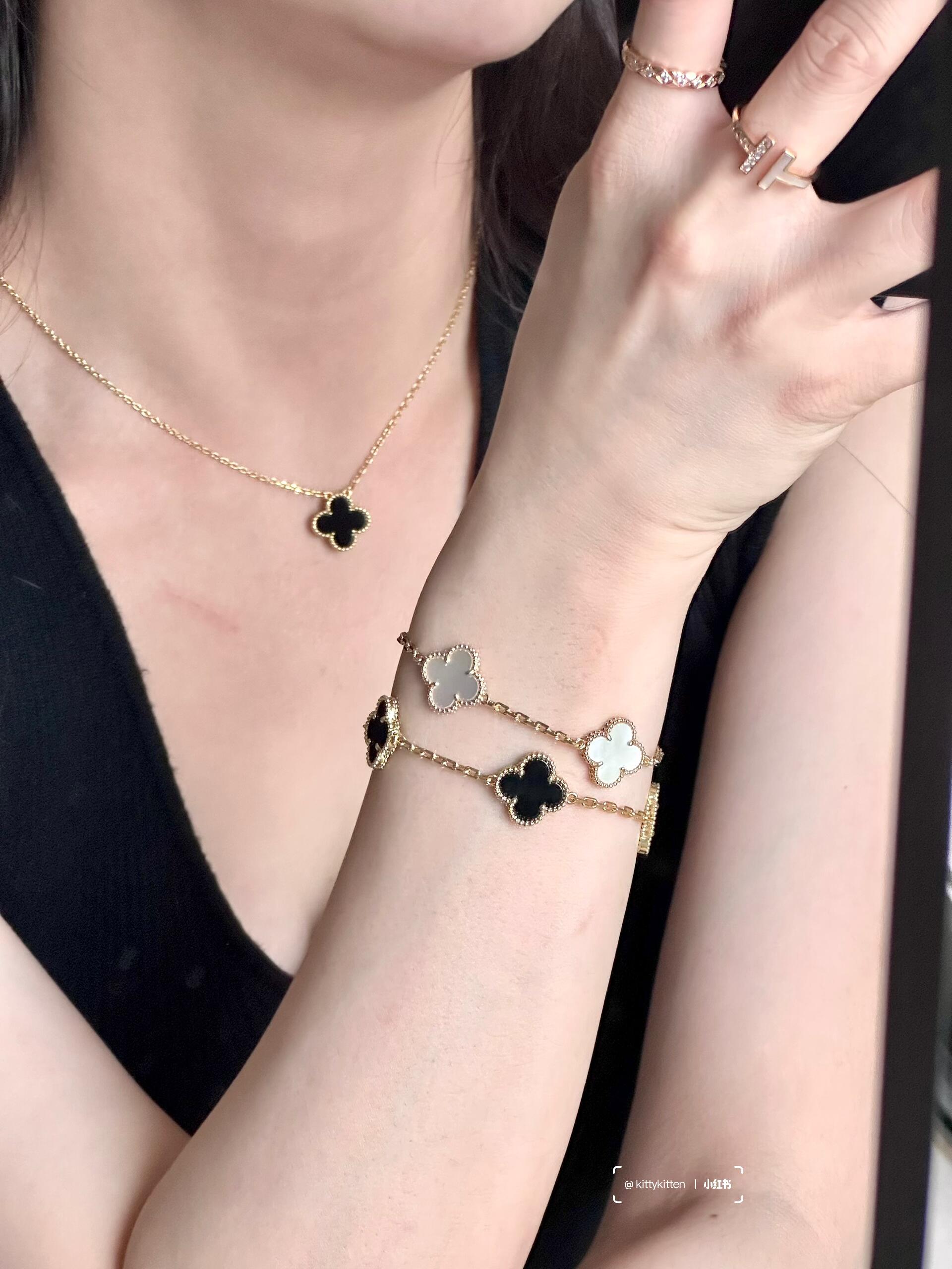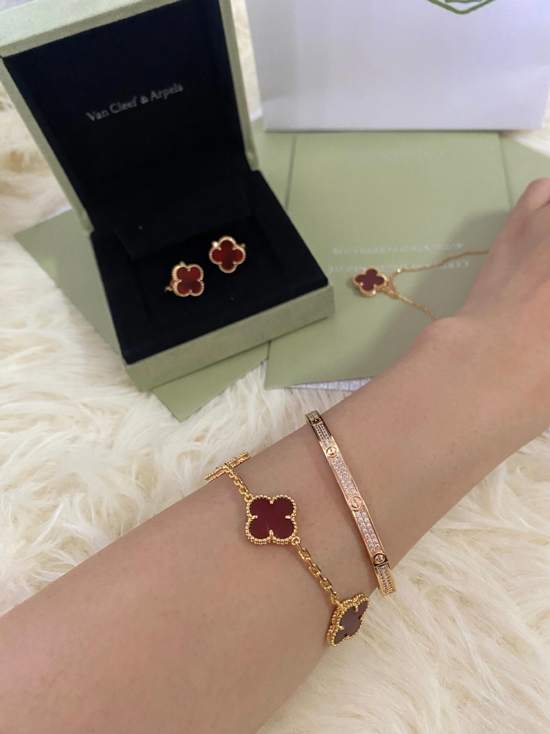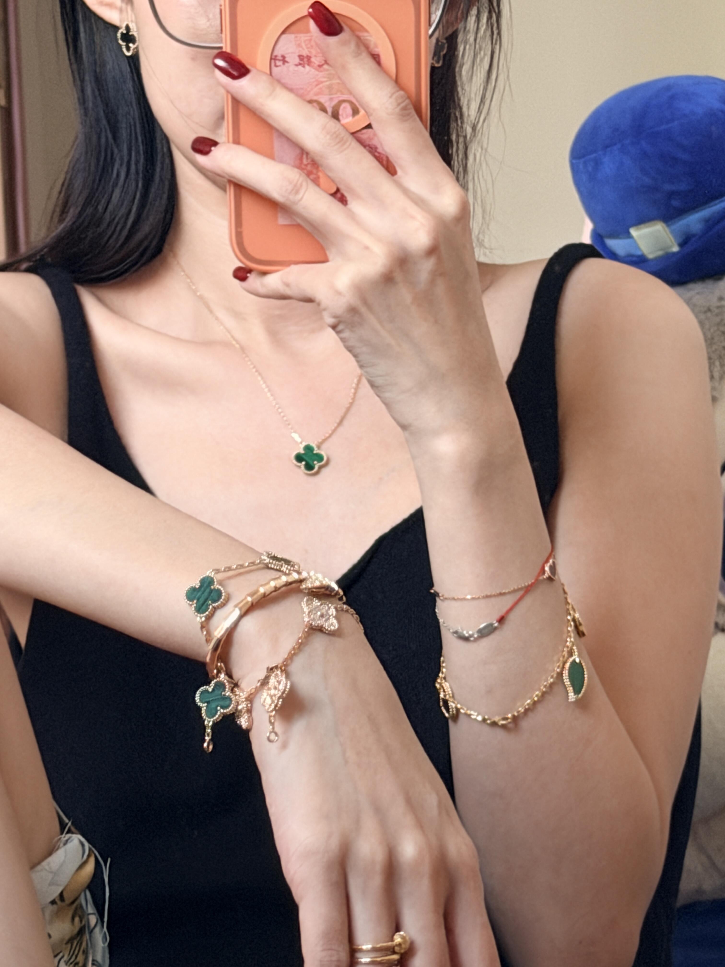返场【充值6800档赠品】梵克雅宝3件套 耳钉+项链+手链,黑/红/白/绿可选(XK)