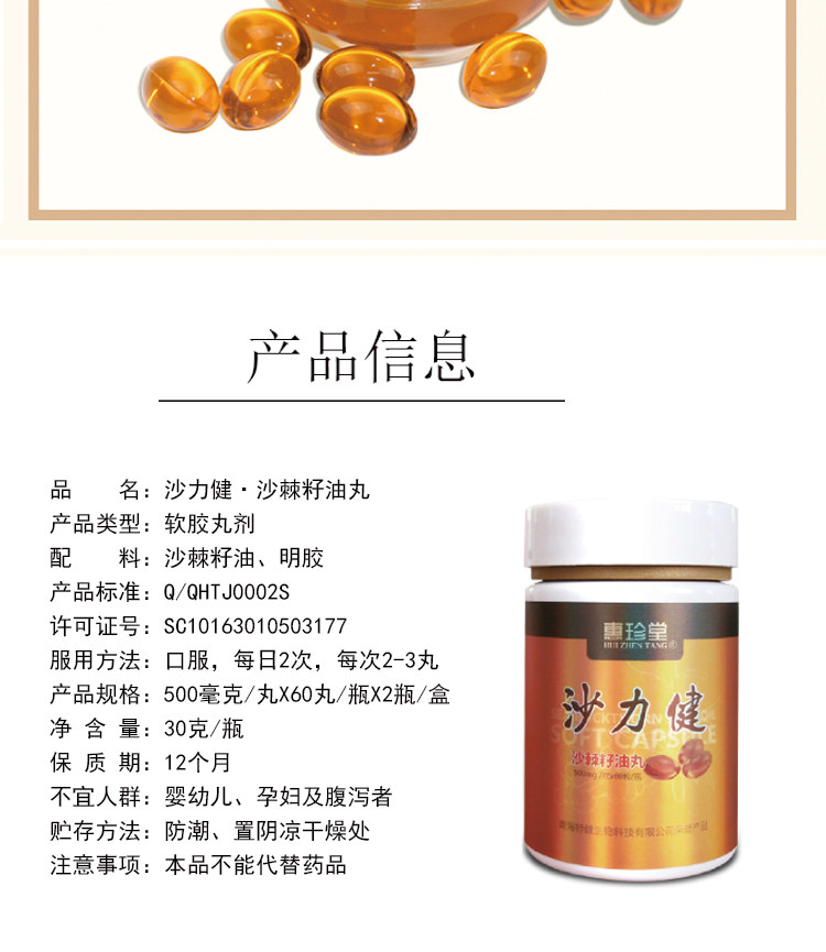 【沙力健】沙棘子果油软胶囊口服天然沙棘原浆果正品非外用