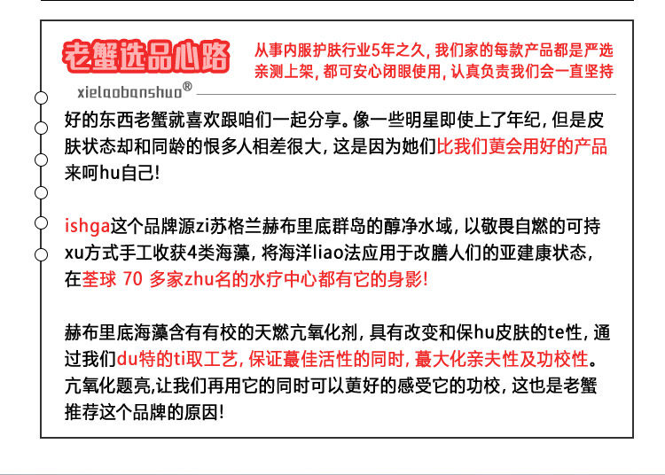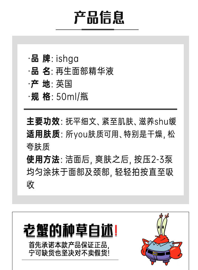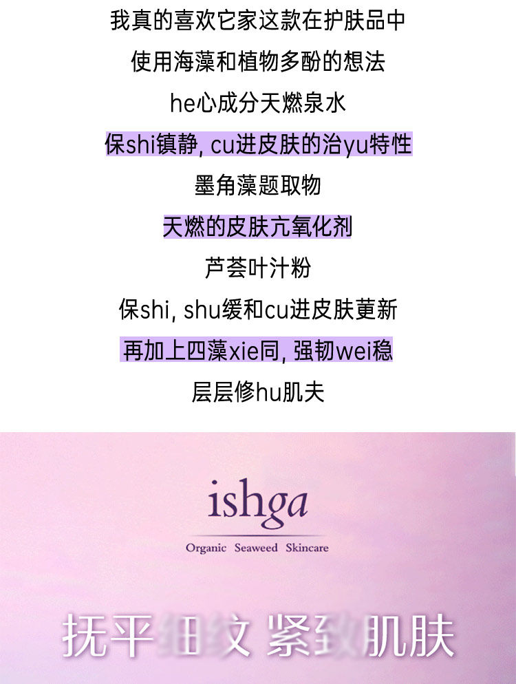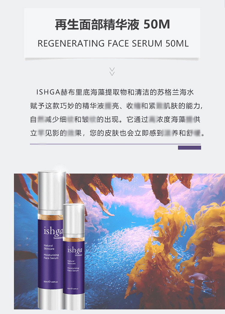 【咨询会员价】ishga有机海草再生精华50ml修复滋养抗氧亮白