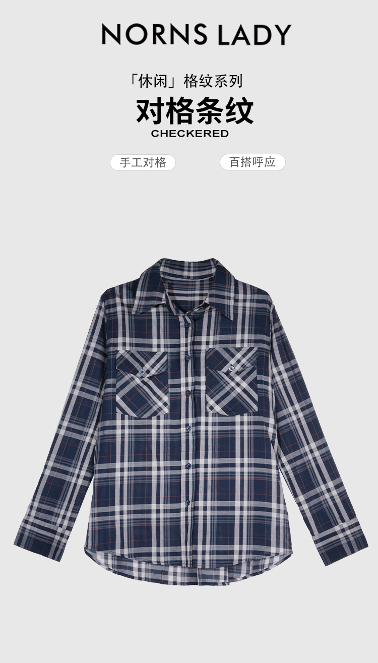 NORNS LADY诺恩 【老钱蓝格】秋季衬衫蓝色格纹经典百搭纯棉长袖上衣 H25SF30484-12.1