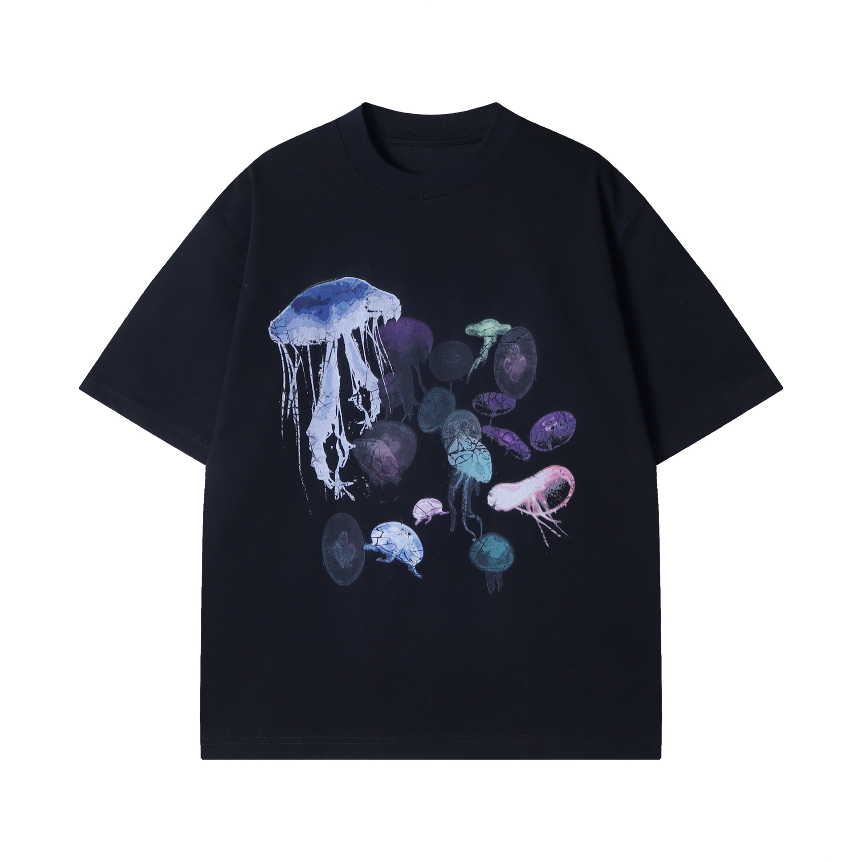 T2199早春新款时尚个性水母印花圆领短袖T恤百搭高级感设计套头上衣