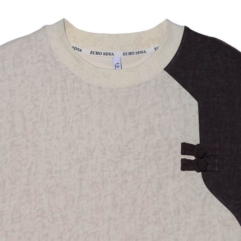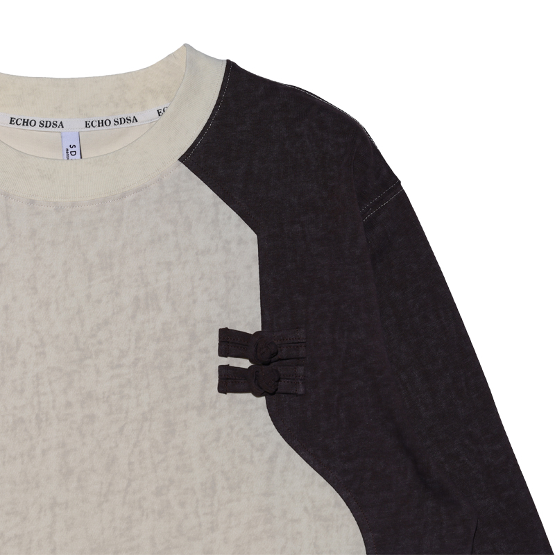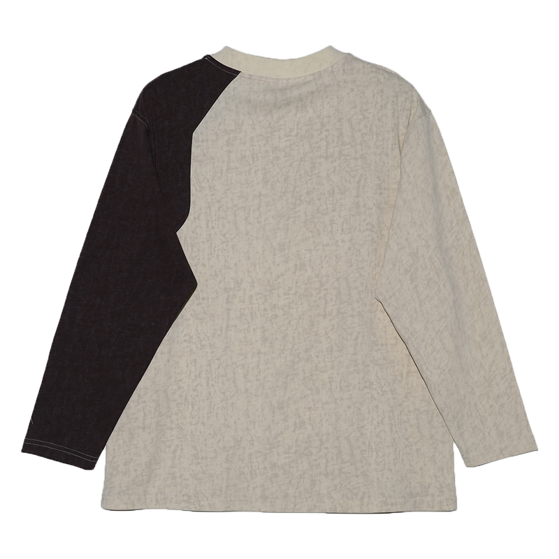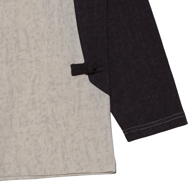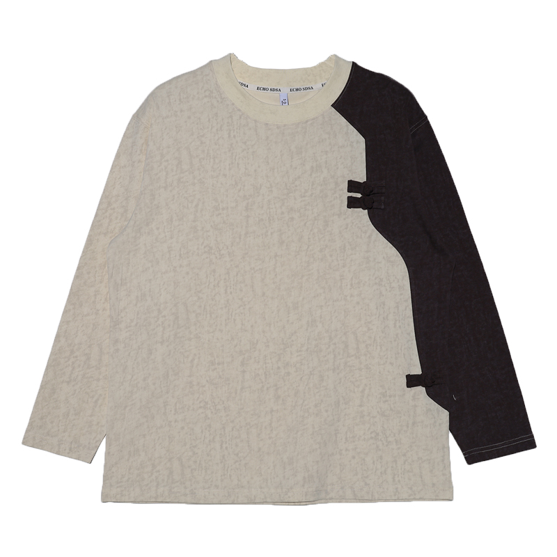 T510拼接色套头T恤男士长袖宽松中式文艺圆领斜襟男女同款