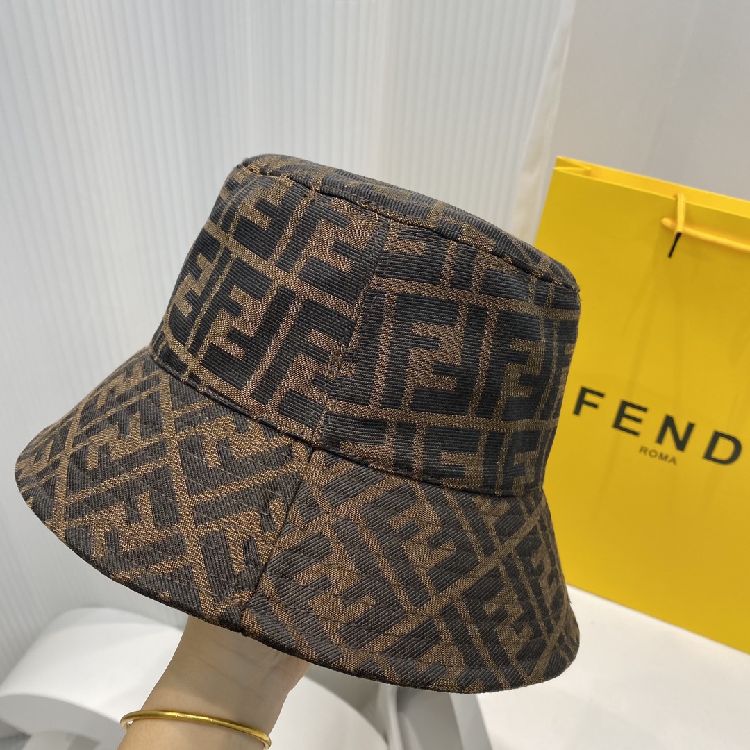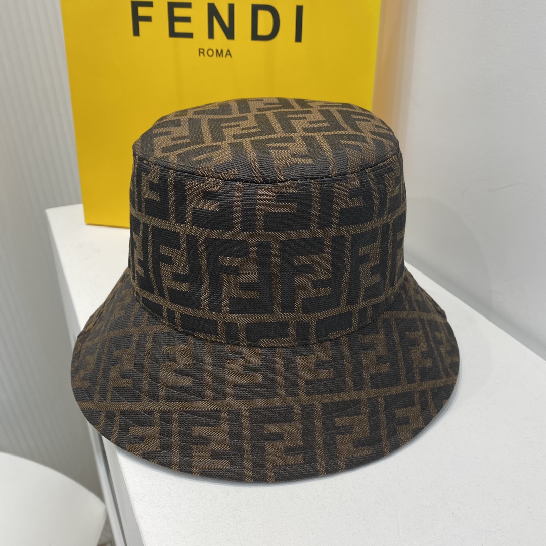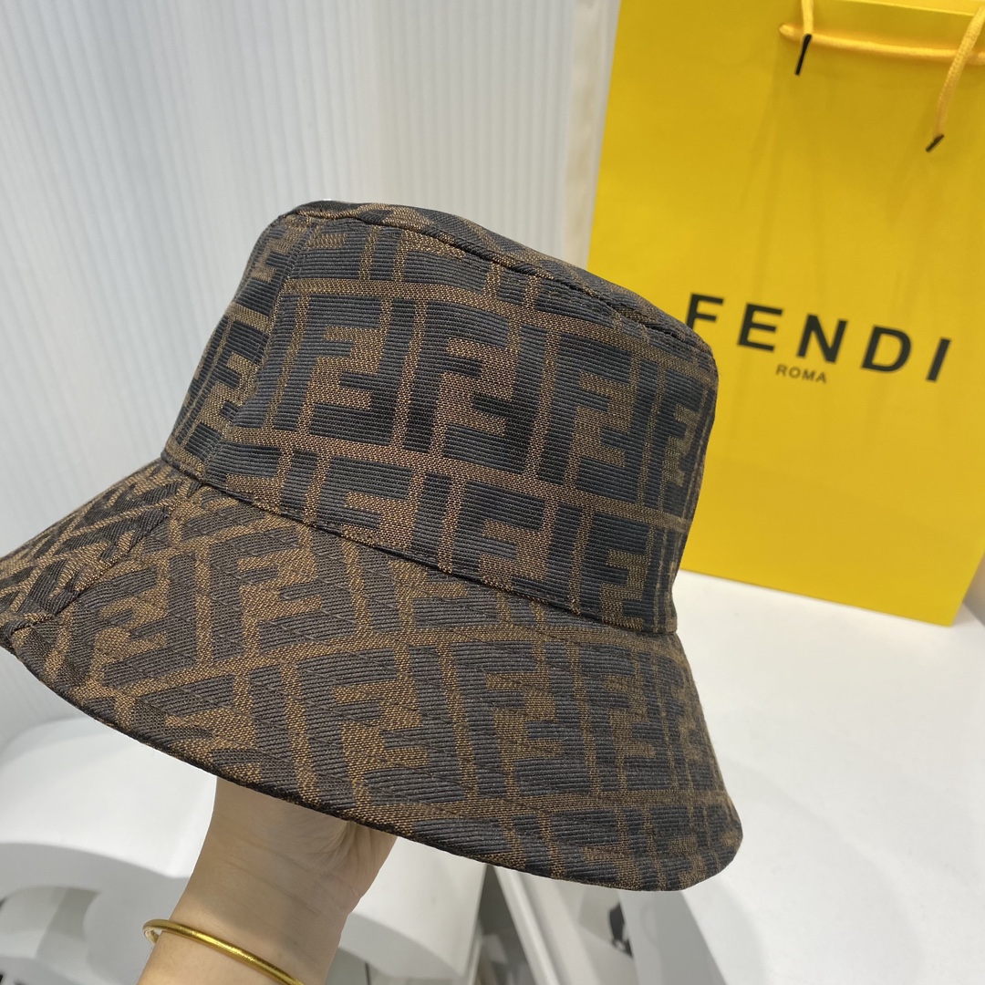 FENDI芬迪春夏新款缎面面料双F老花渔夫帽