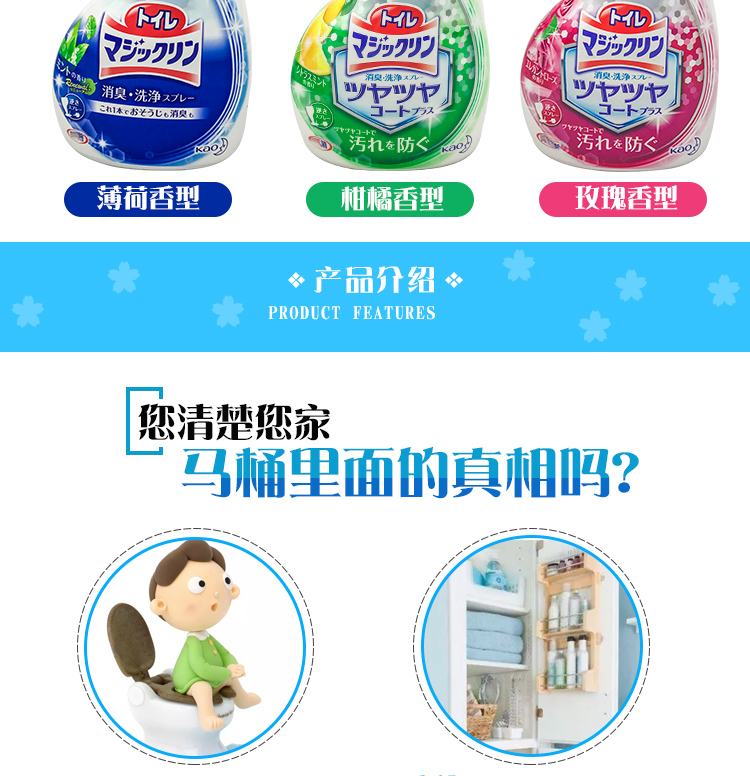 【保税仓】花王洁厕喷雾薄荷香型、柑橘香型、玫瑰香型