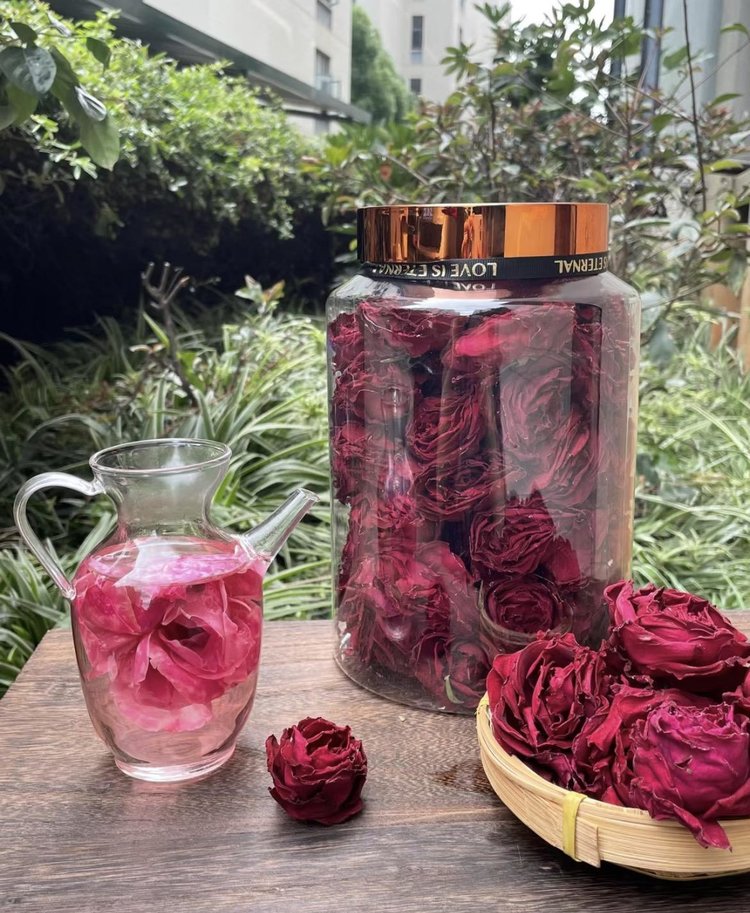 墨红玫瑰花茶有利尿润肠的功效,帮助身体排出毒素,适合饮食不健康,常吃外卖的姐妹