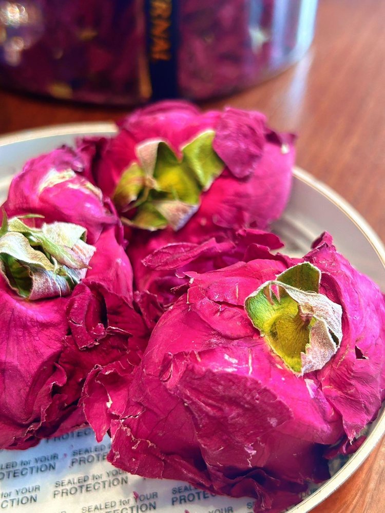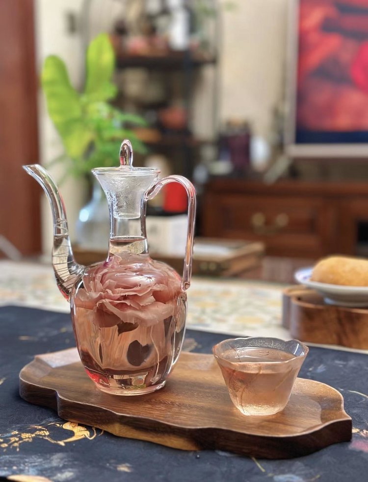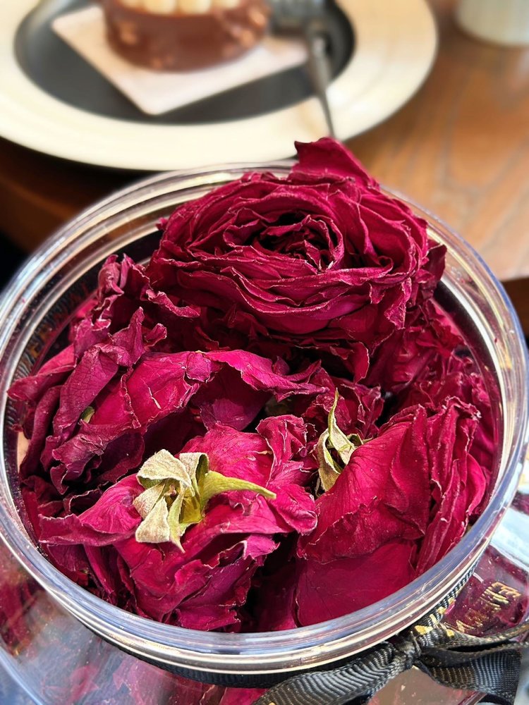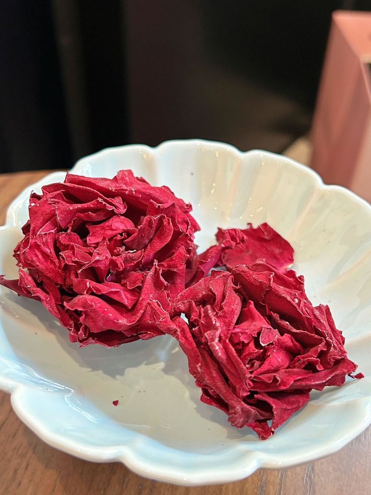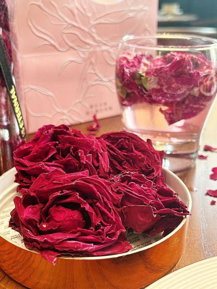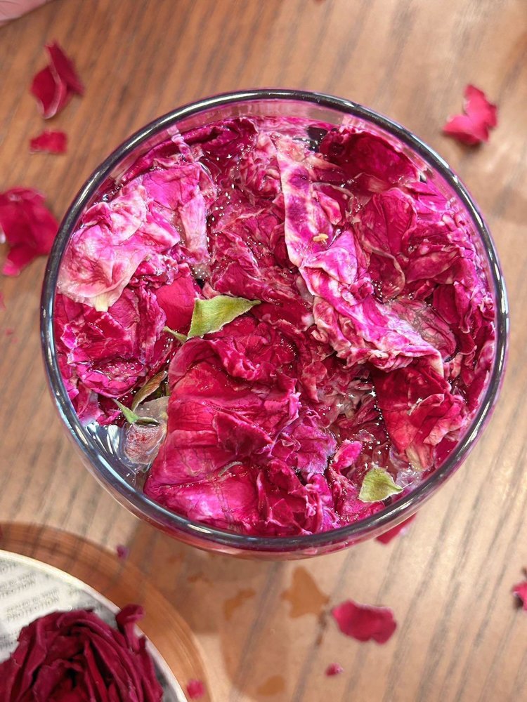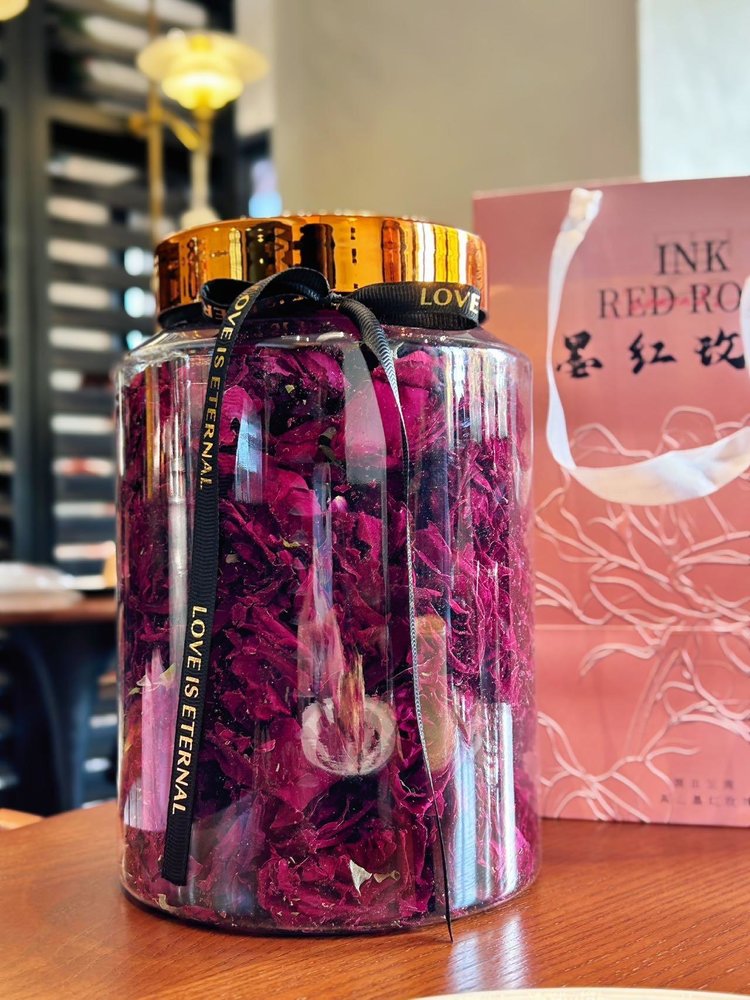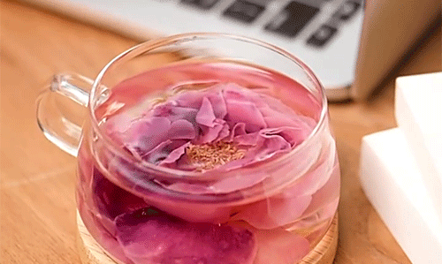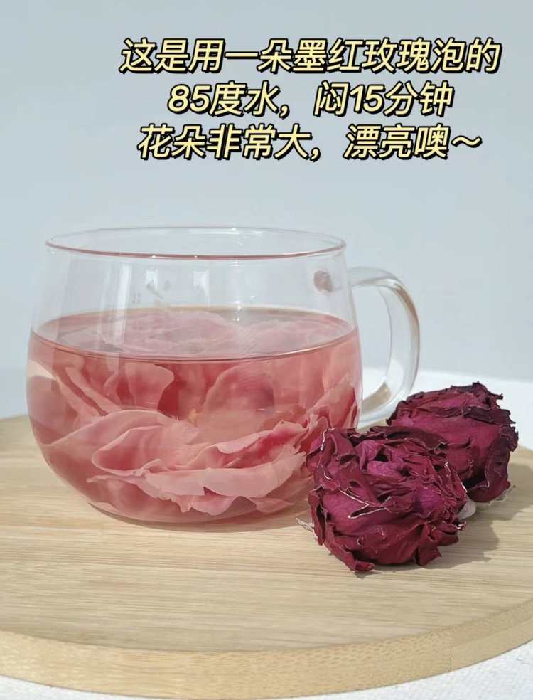 二泡:继续注水,每泡浸泡大约2-3分钟左右,即可饮用。墨红玫瑰花会在水中缓慢绽放,香气馥郁,滋味清甜。