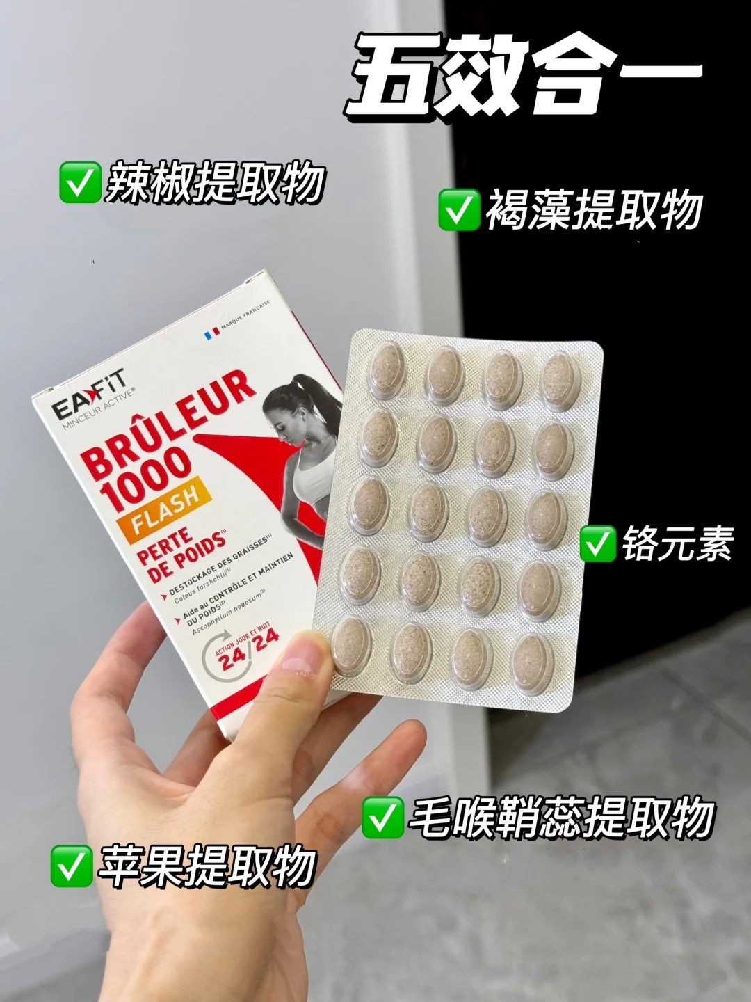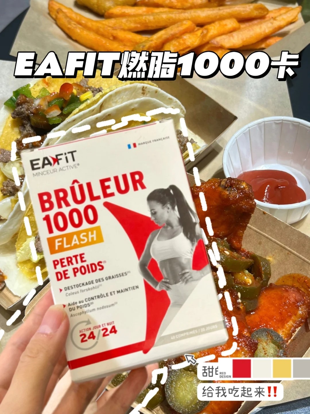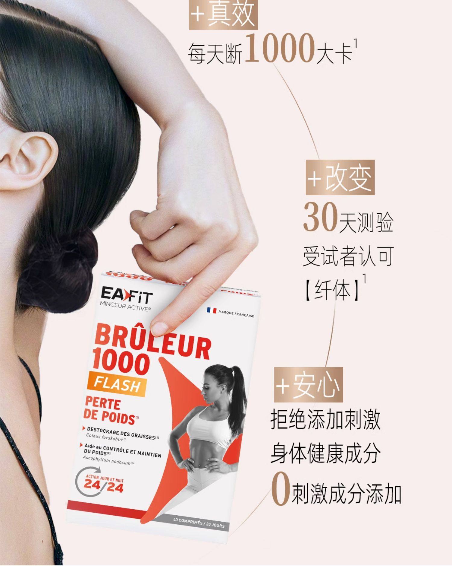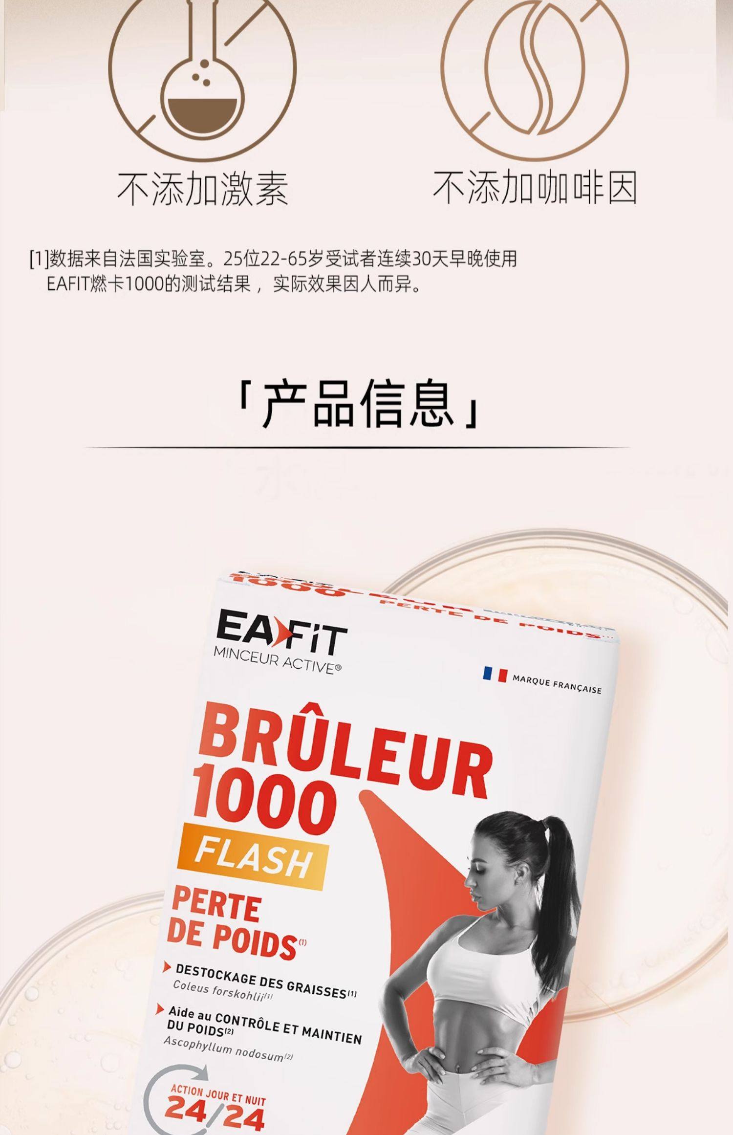 法国进口EAFIT静燃片1000燃卡代谢丸24h燃烧懒人辣椒美体丸