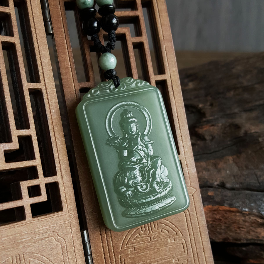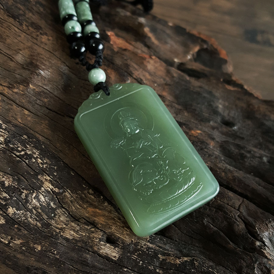 名称 | 天然精品无杂裂青海料观音造型和田玉吊坠项链 |