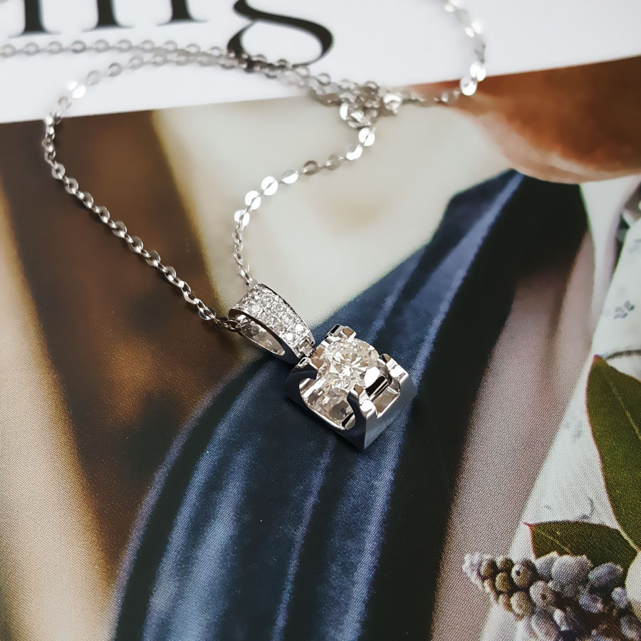 款式 | AU750白金时尚经典牛头款0.32克拉钻石吊坠项链 |