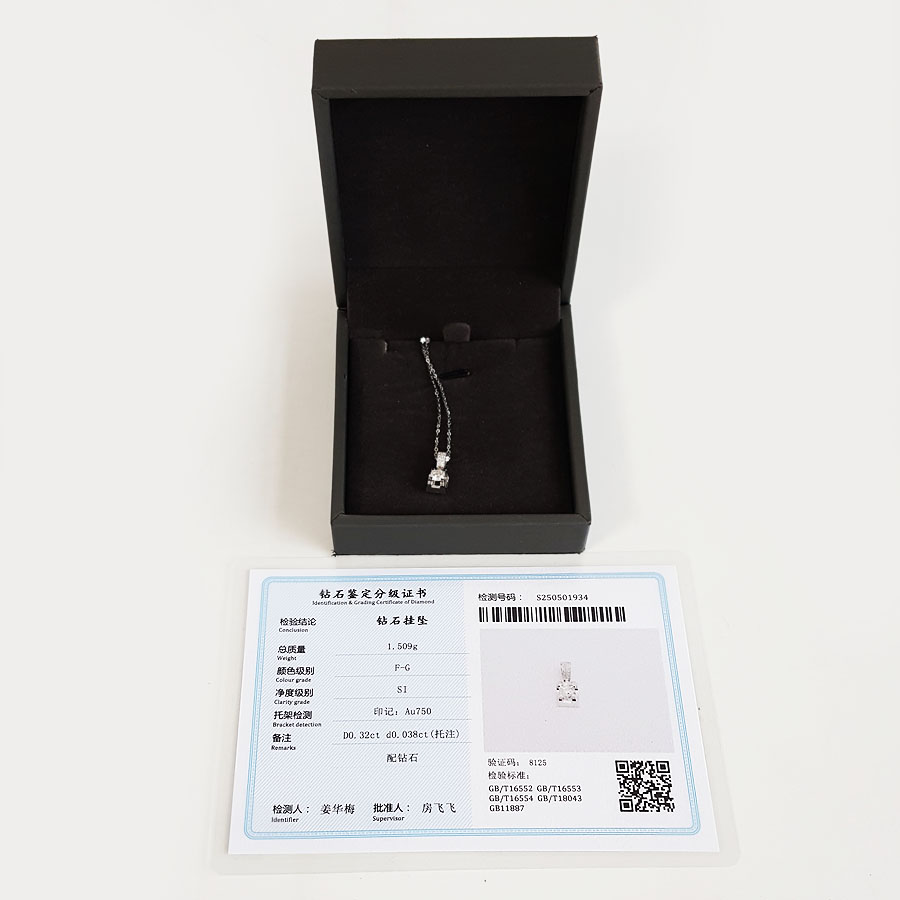 【天然正品】AU750白金时尚经典牛头款0.32克拉钻石吊坠项链F-G-SI13.5*6.1*4.7MM(皆取最大值)女士现售价:3680!100625DZ03