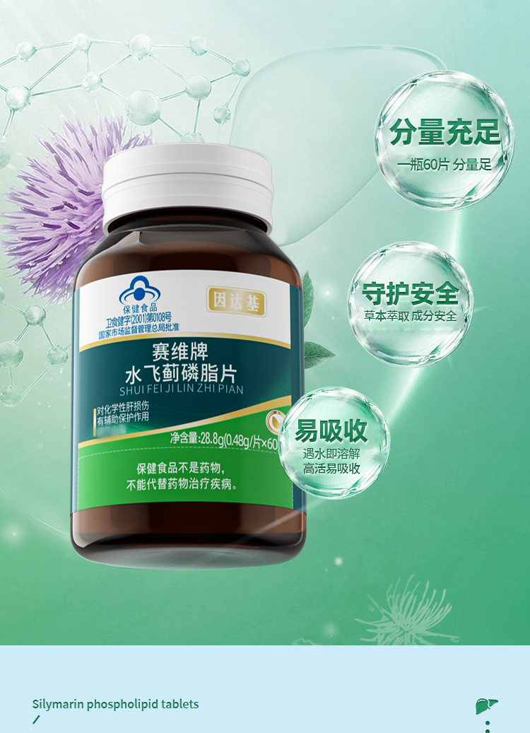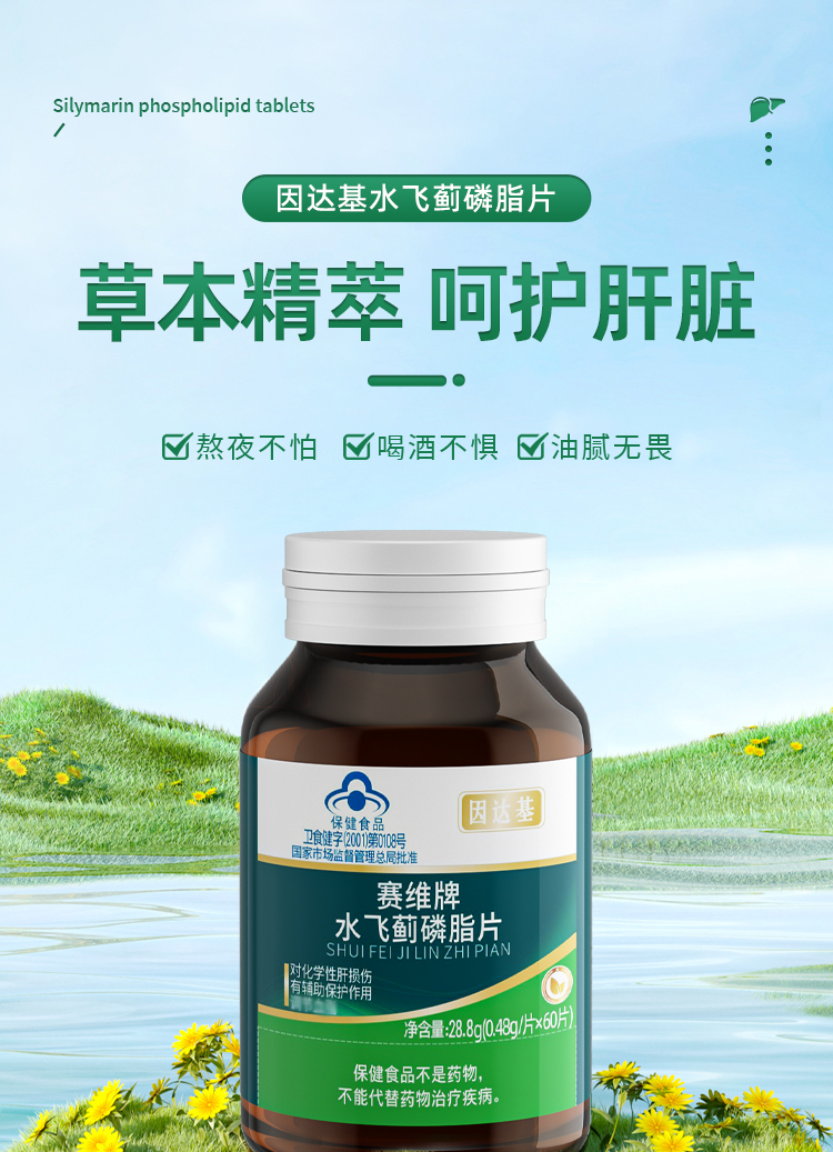 因达基护干肝片负担熬夜肝水飞蓟磷脂片缓解肝脏解酒油腻奶蓟草