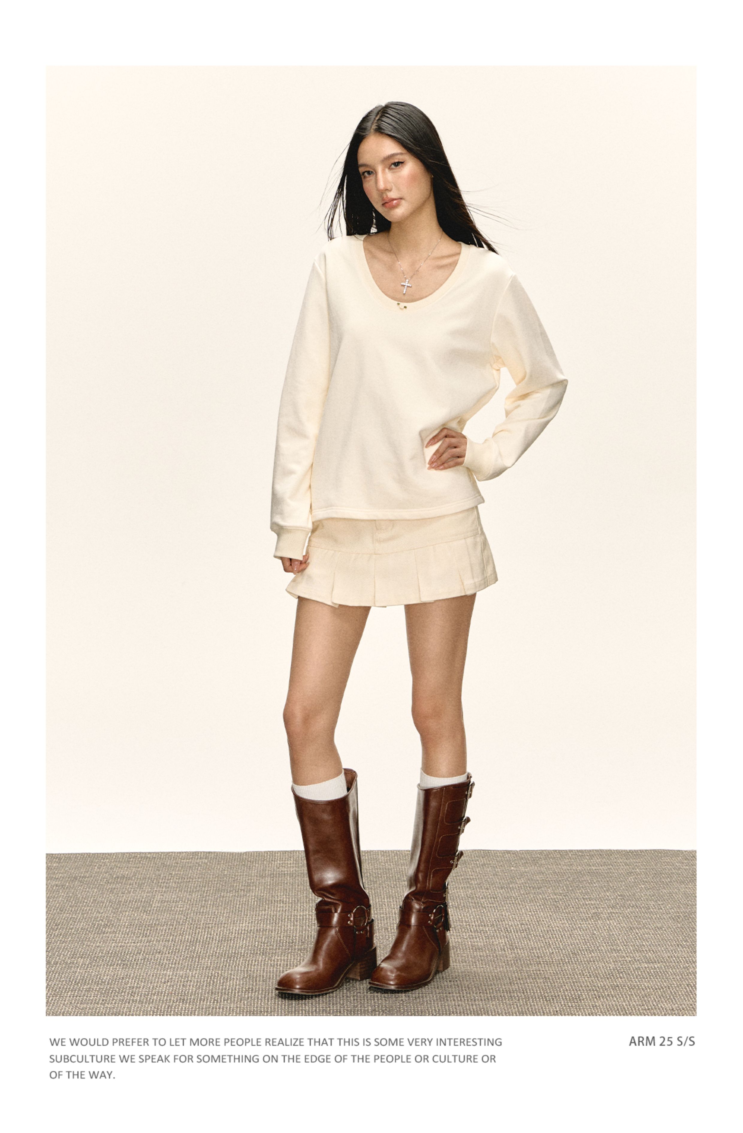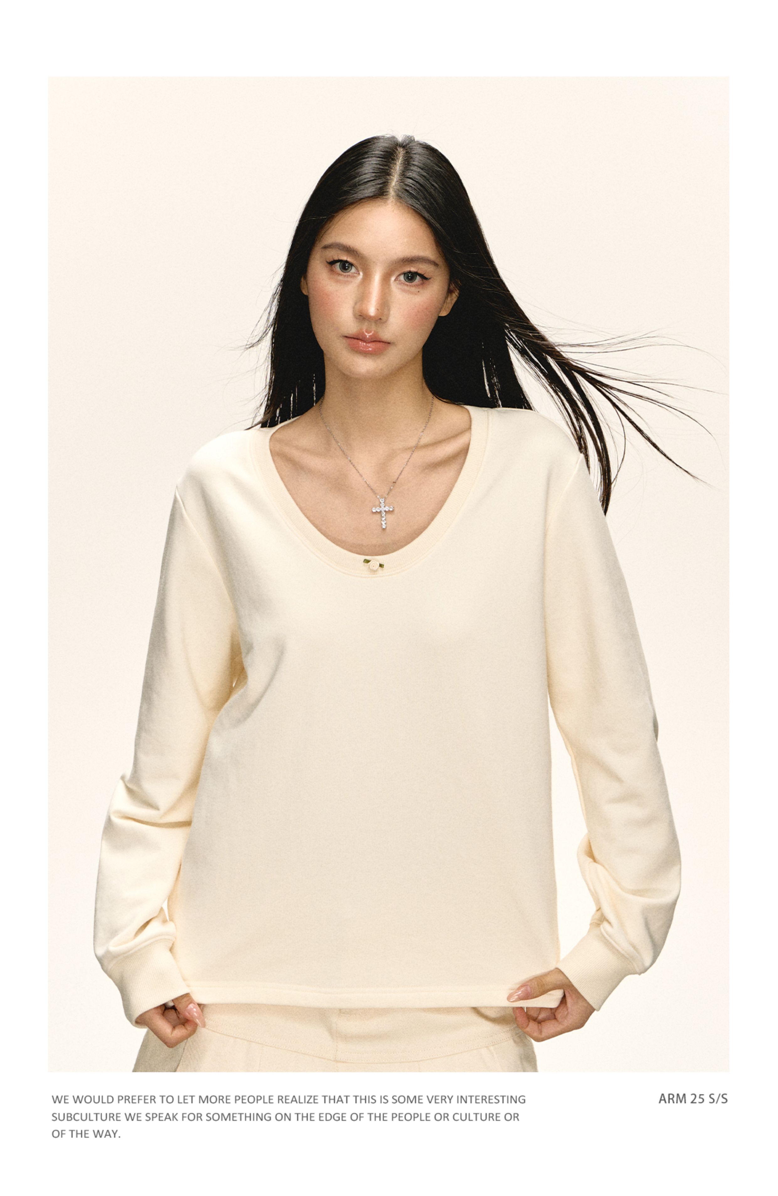 Ariseism美式复古高级感一字肩长袖针织衫女春季新款内搭打底上衣