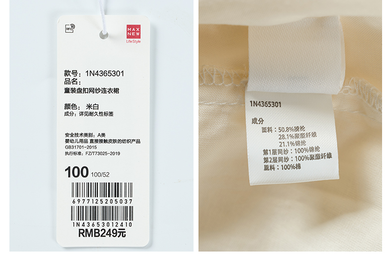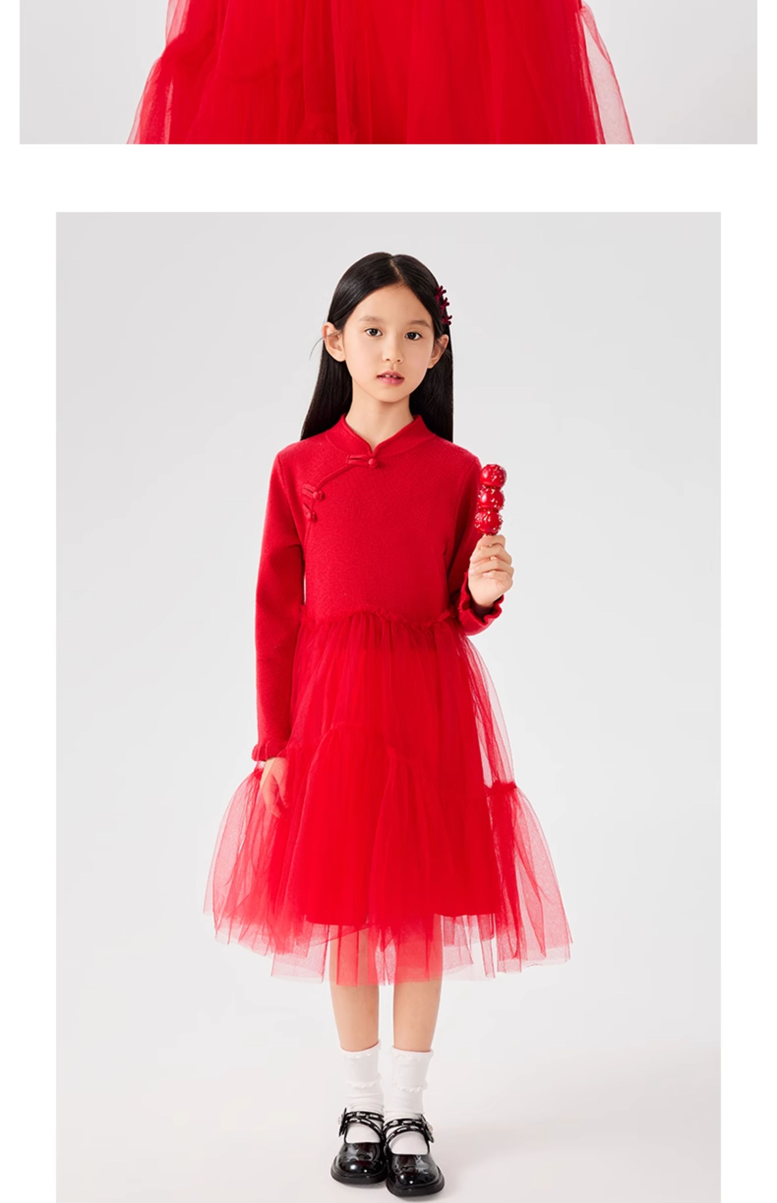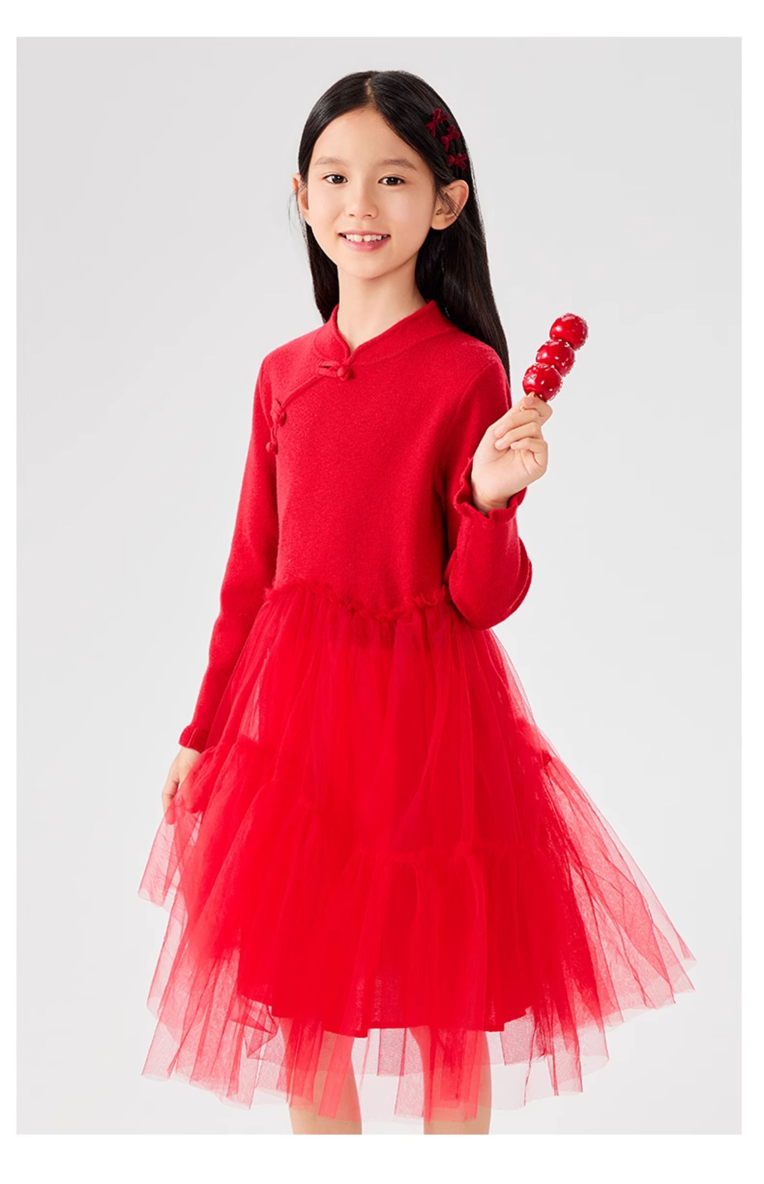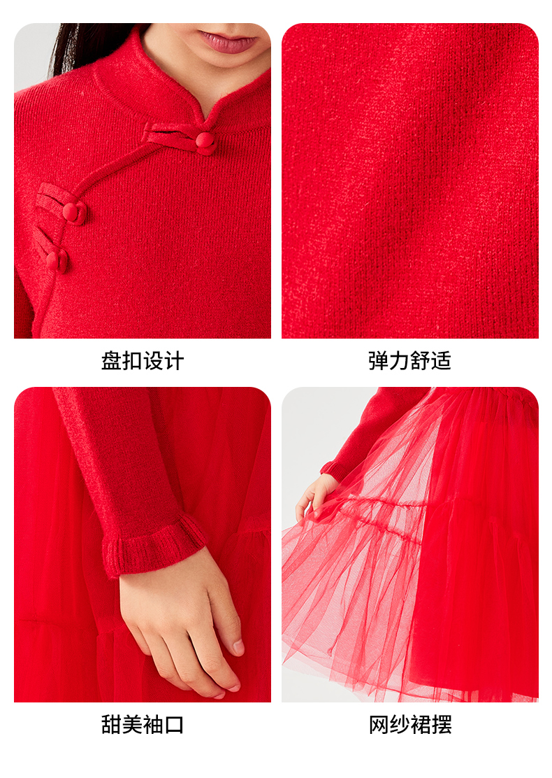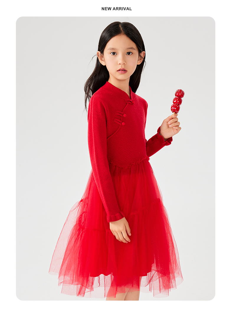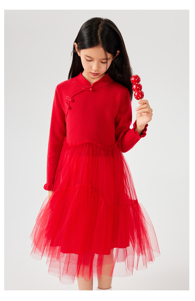 【裙装】童装盘扣网纱连衣裙1N4365301
