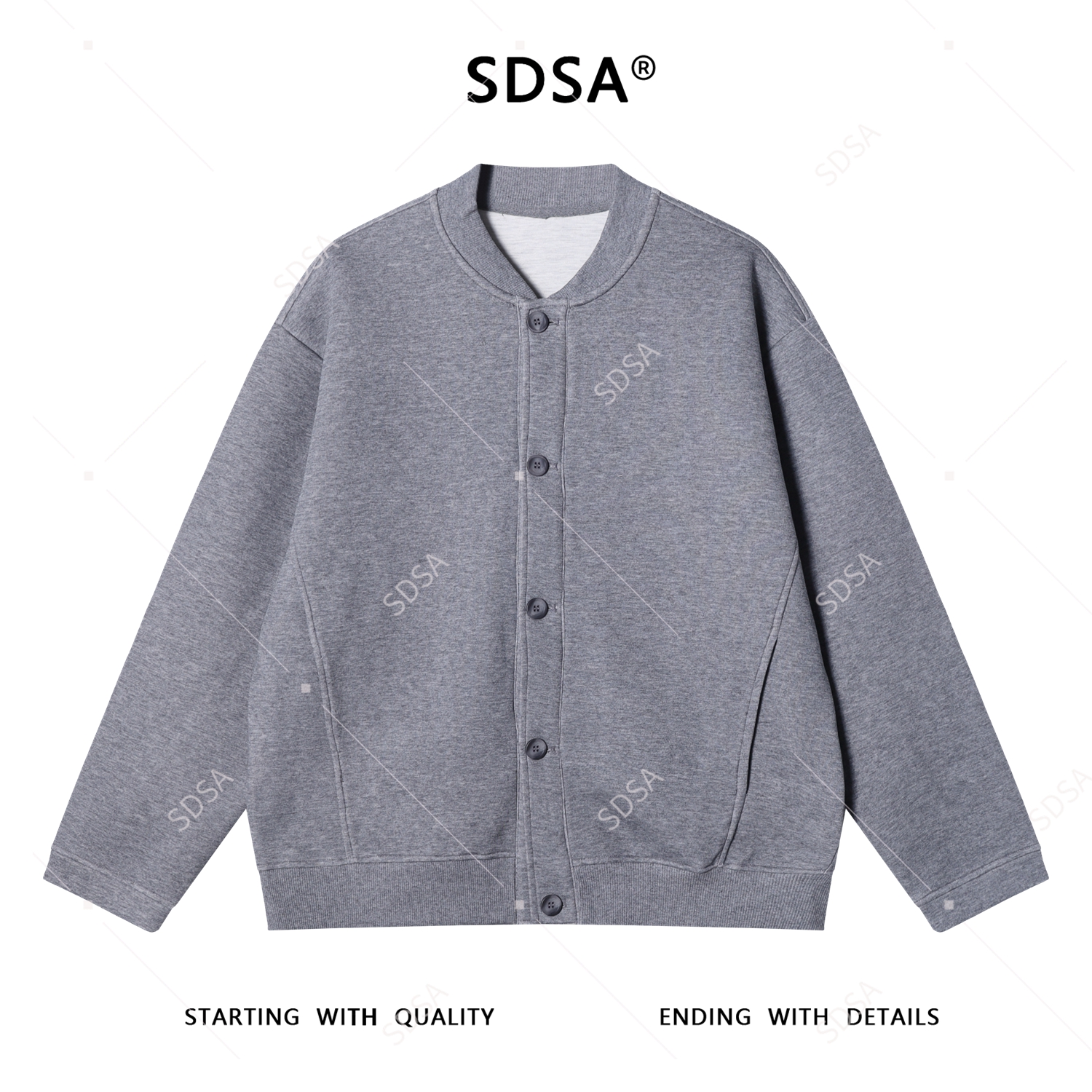 SDSA男士秋冬新款痞帅男装极简风纯色棒球领纽扣开衫卫衣百搭时尚