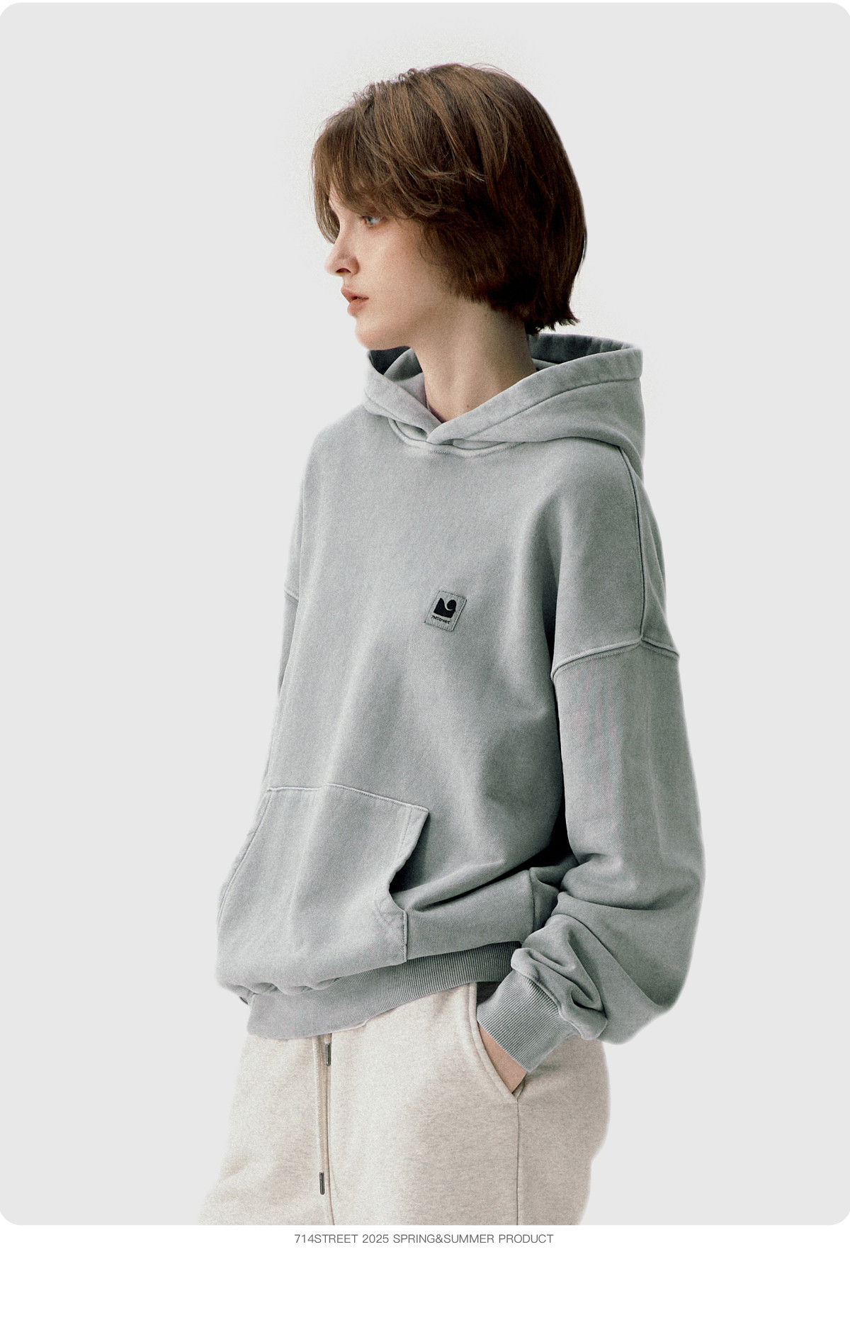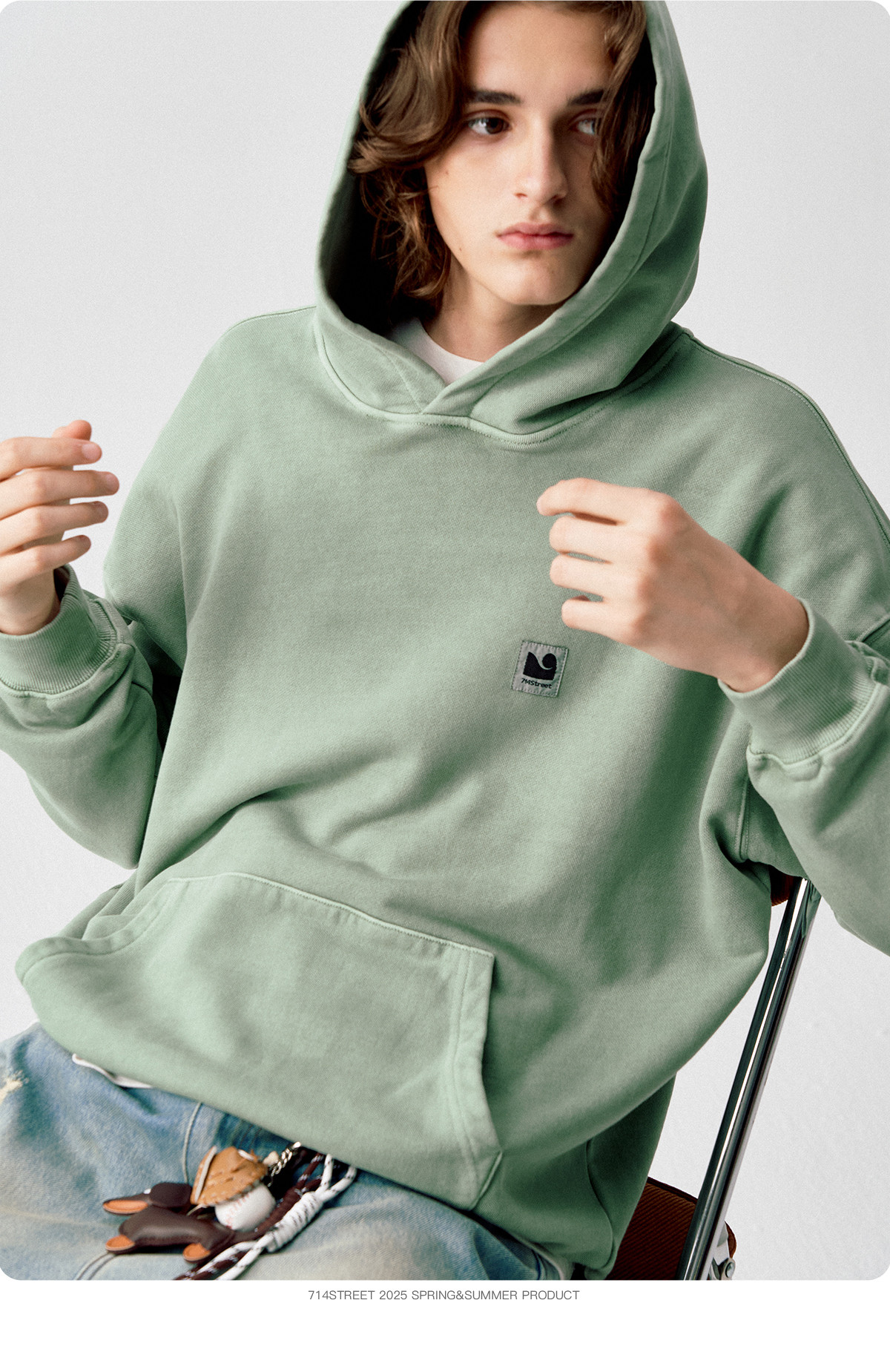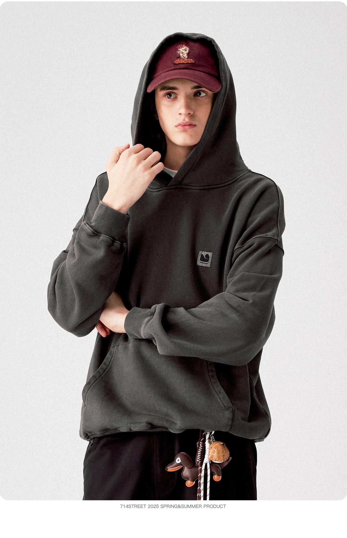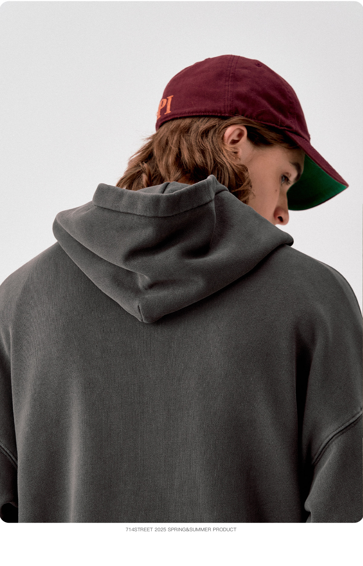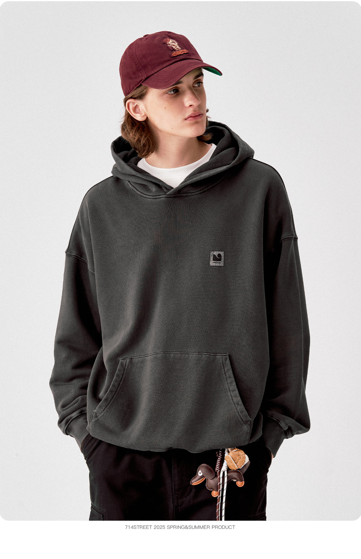 714street复古蜡染水洗连帽卫衣男女2025春季新款宽松毛圈布帽衫