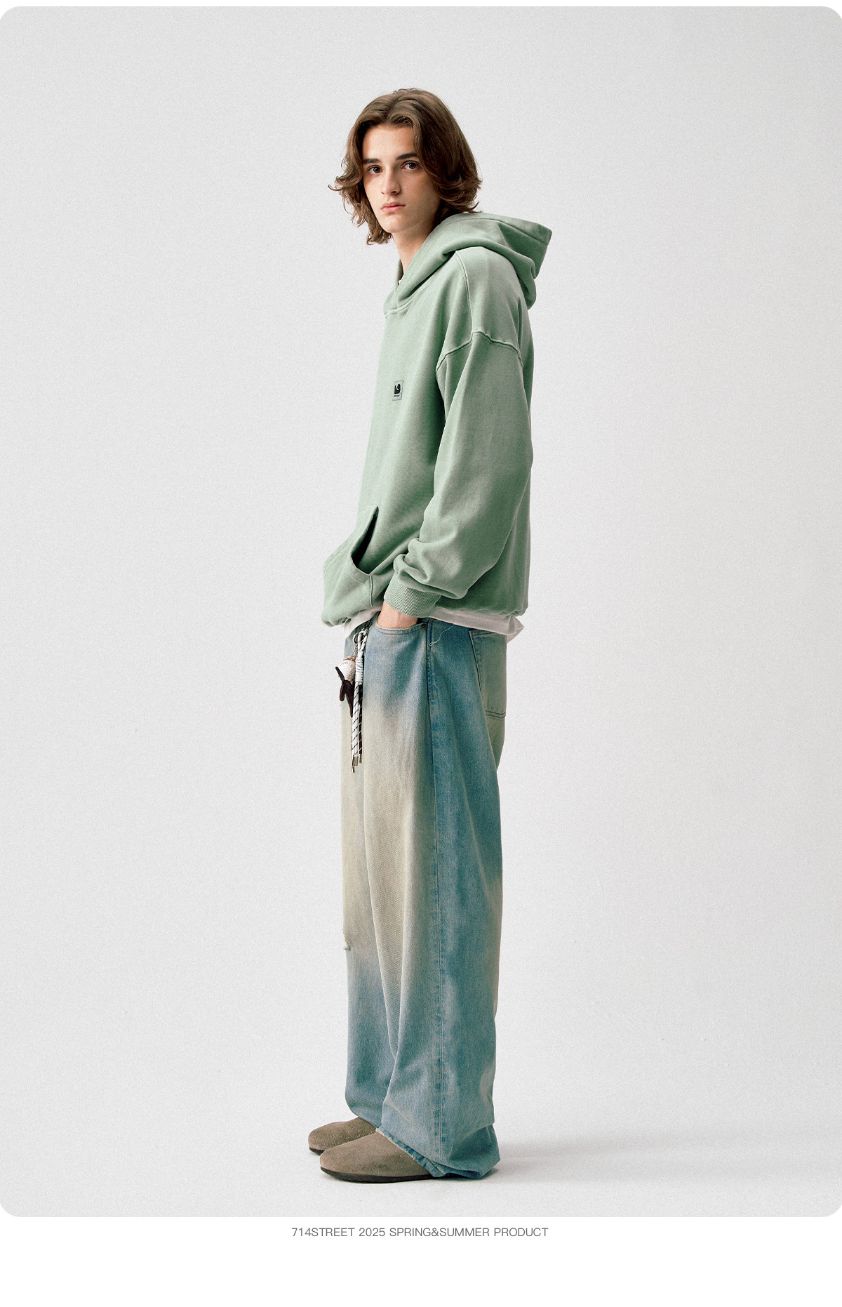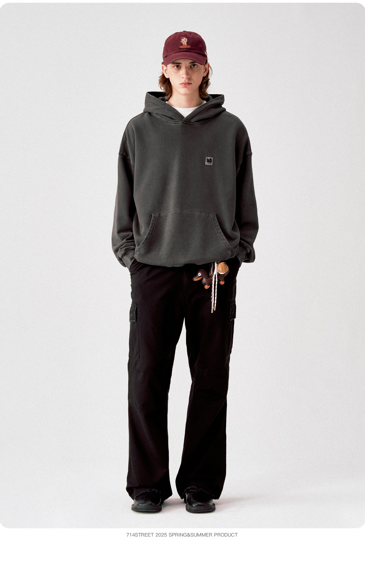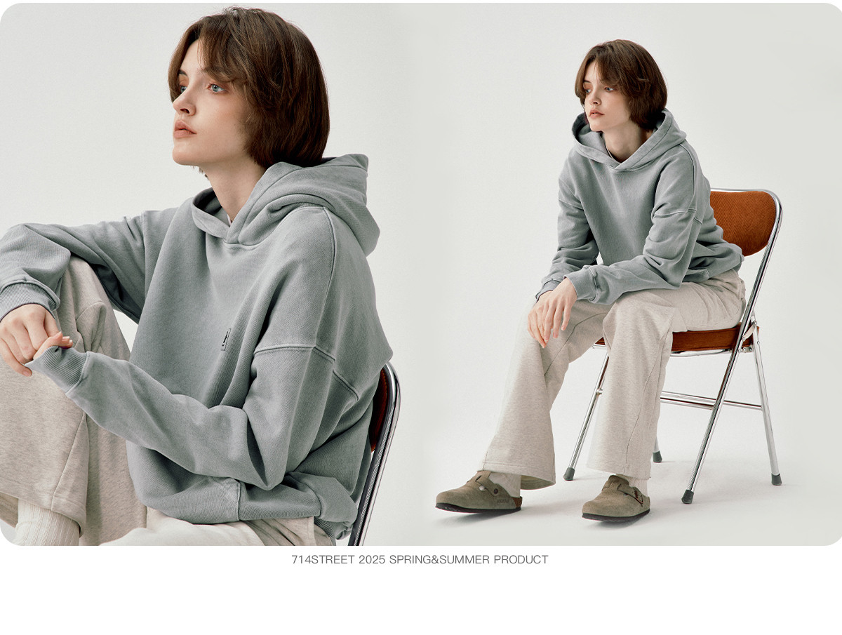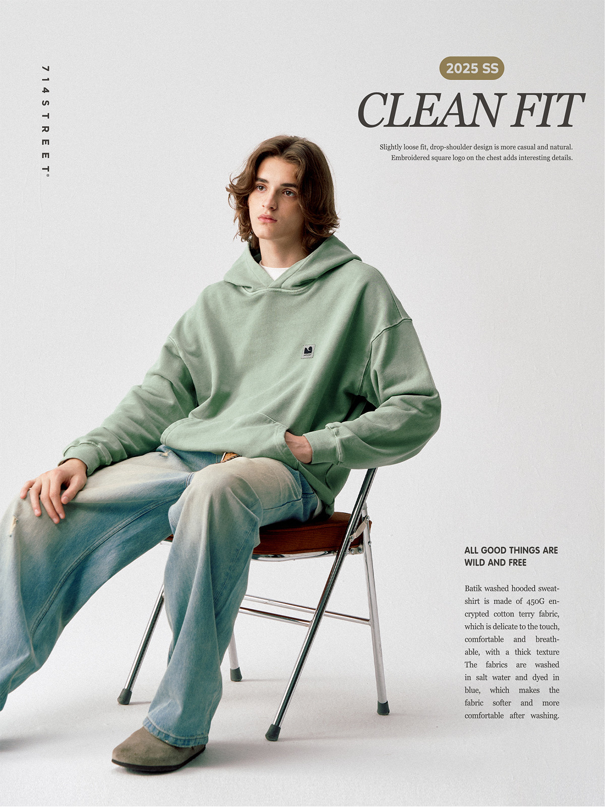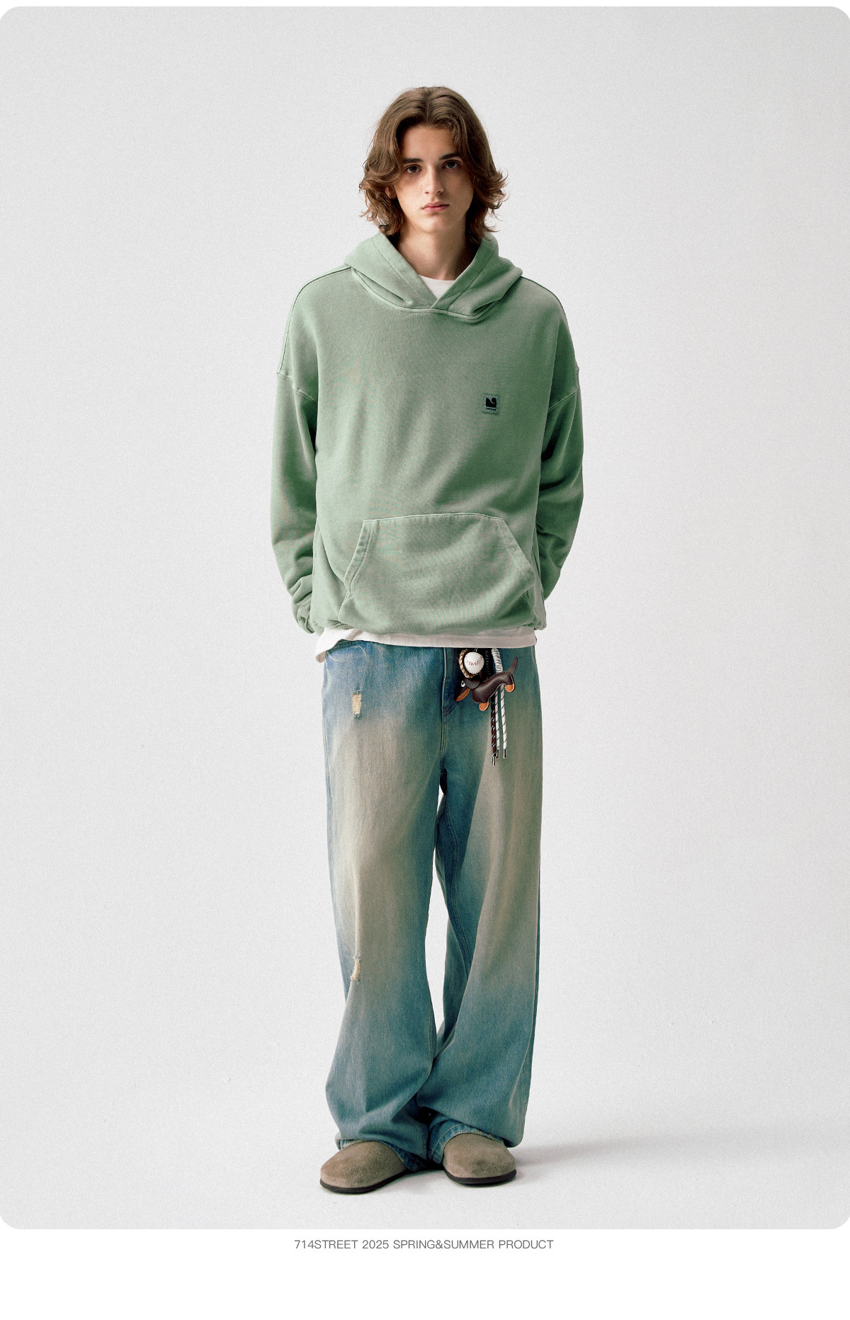 714street复古蜡染水洗连帽卫衣男女2025春季新款宽松毛圈布帽衫