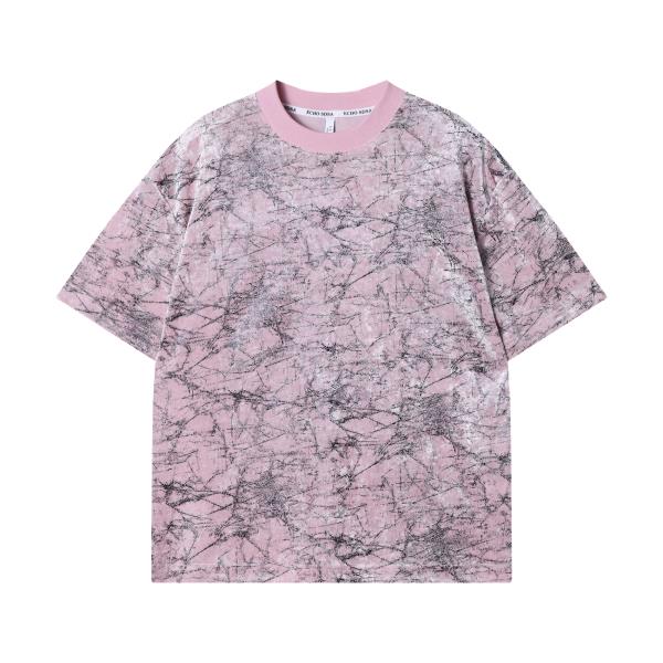 T2412夏季新款时尚个性韩版凌乱线条圆领短袖T恤宽松百搭潮流情侣上衣