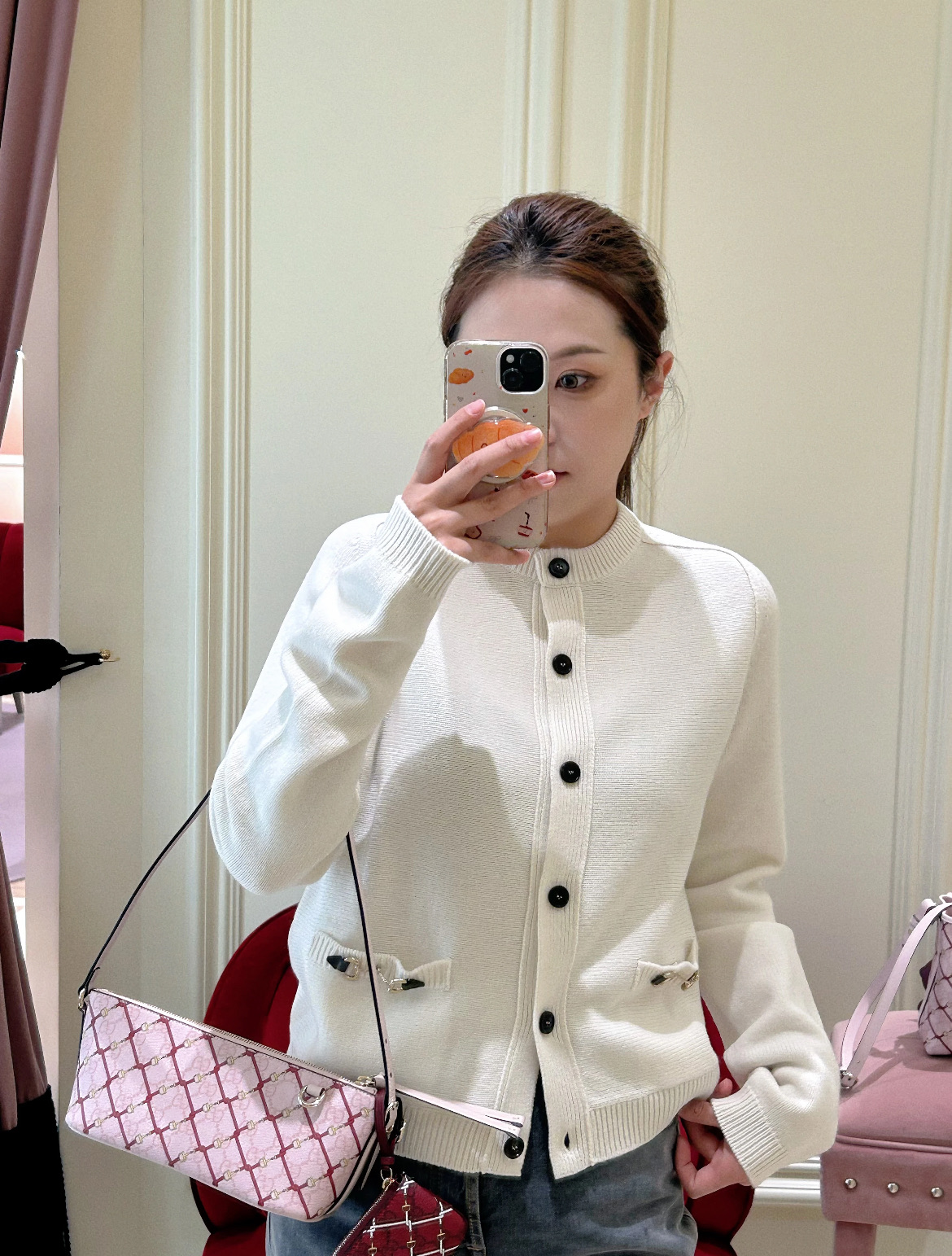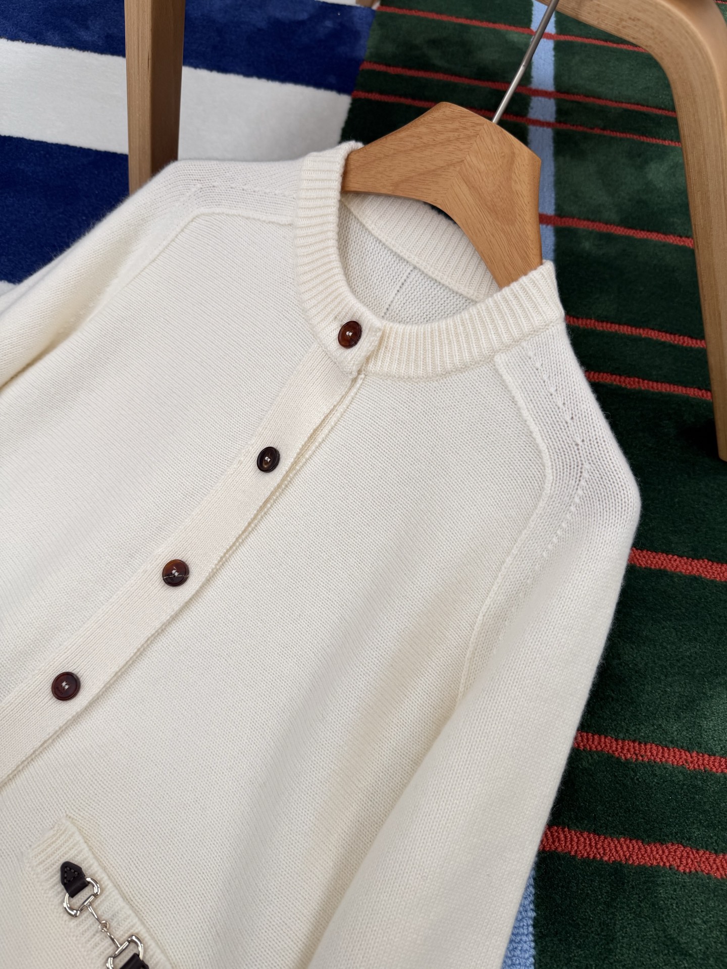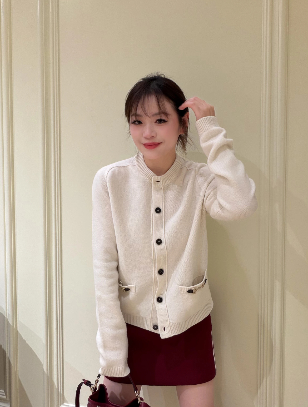 新款针织开衫,一见倾心的优雅之作,将极简美学与低调“老钱风”巧妙相融,精选羊毛混纺面料,柔软亲肤,温暖舒适,细节处点缀皮革与经典马衔扣,精致度满分,版型优雅利落,上身即刻提升气质,高级感自然流露,不仅实穿度极高,时髦气场也同步拉满,注定成为你衣橱里的心动之选,别犹豫,即刻拥有〰️码数SML