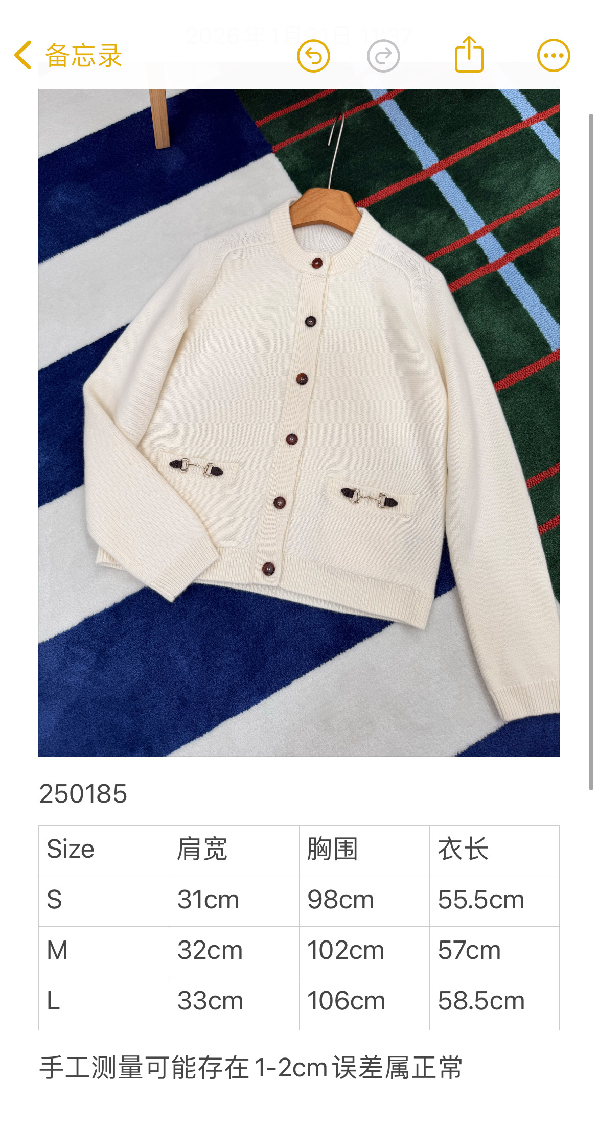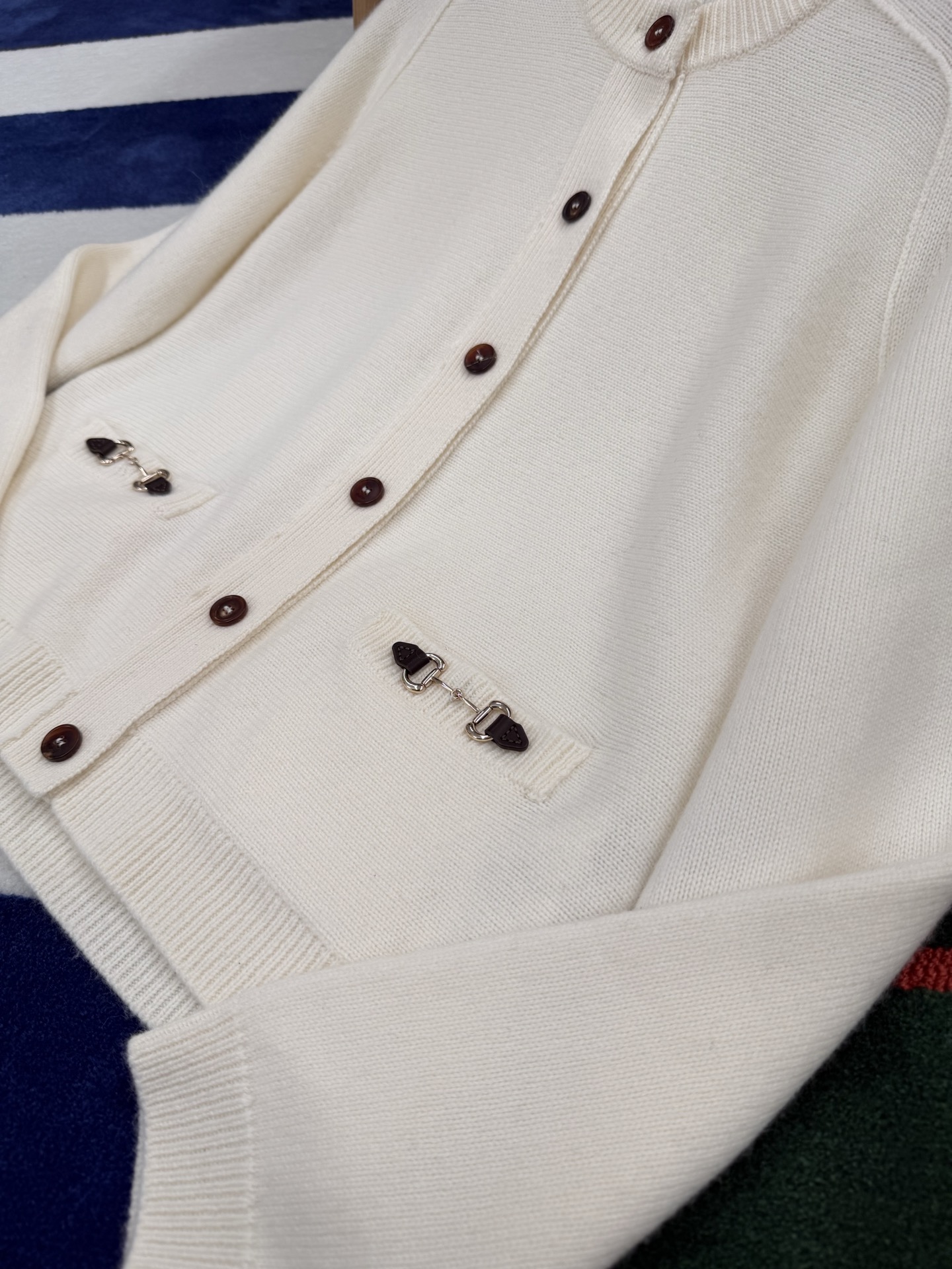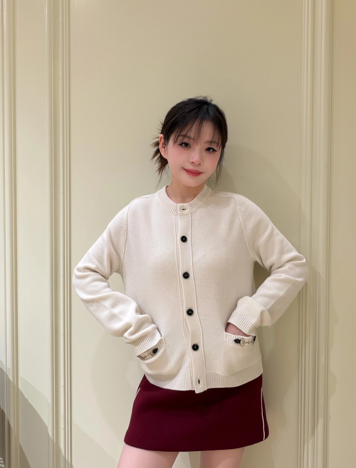 新款针织开衫,一见倾心的优雅之作,将极简美学与低调“老钱风”巧妙相融,精选羊毛混纺面料,柔软亲肤,温暖舒适,细节处点缀皮革与经典马衔扣,精致度满分,版型优雅利落,上身即刻提升气质,高级感自然流露,不仅实穿度极高,时髦气场也同步拉满,注定成为你衣橱里的心动之选,别犹豫,即刻拥有〰️码数SML
