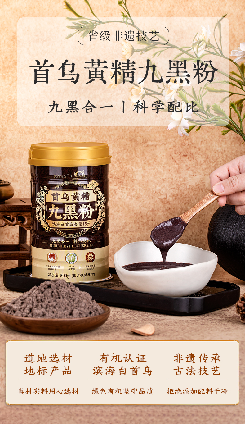 李时珍出品 营养食光首乌黄精九黑粉 有机认证 非遗技艺 地标产品 九黑合一