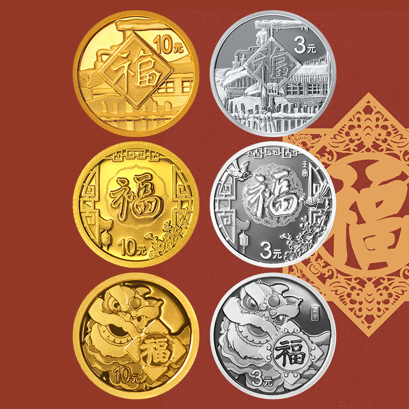 历年贺岁福字金银币 中国金币发行 福字金币+福字银币