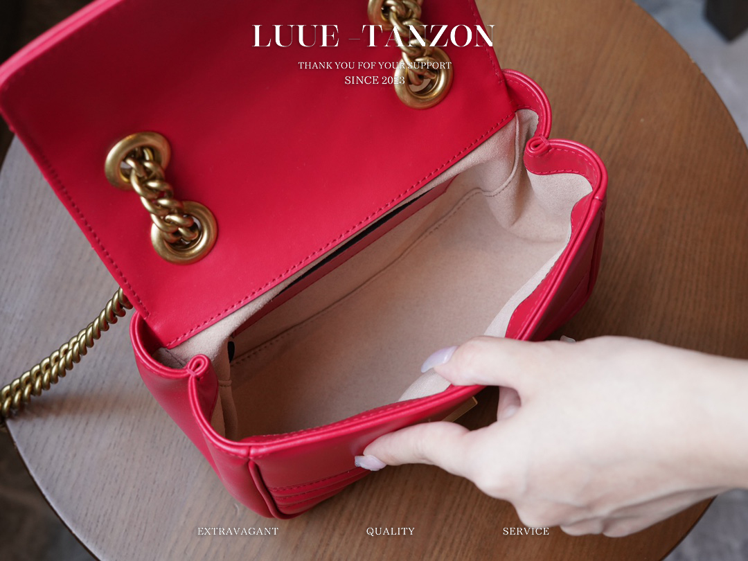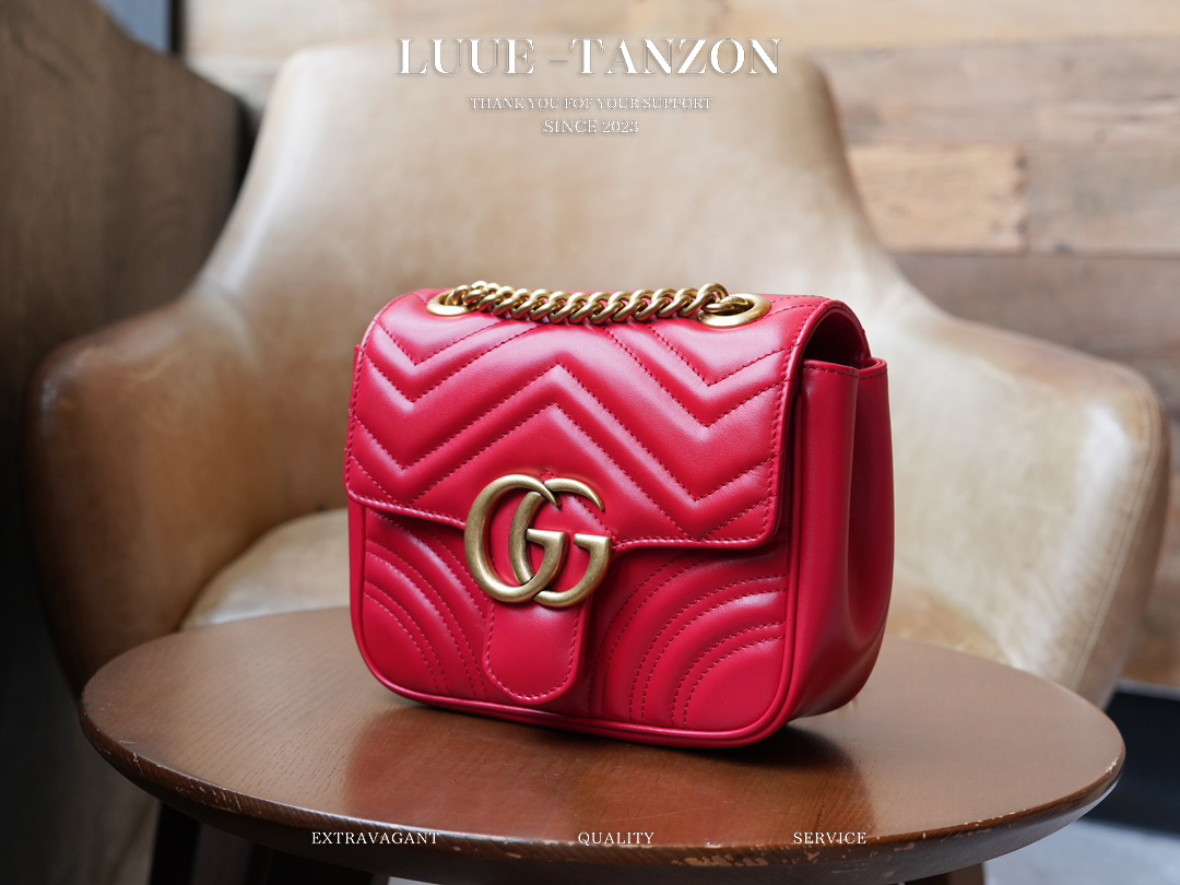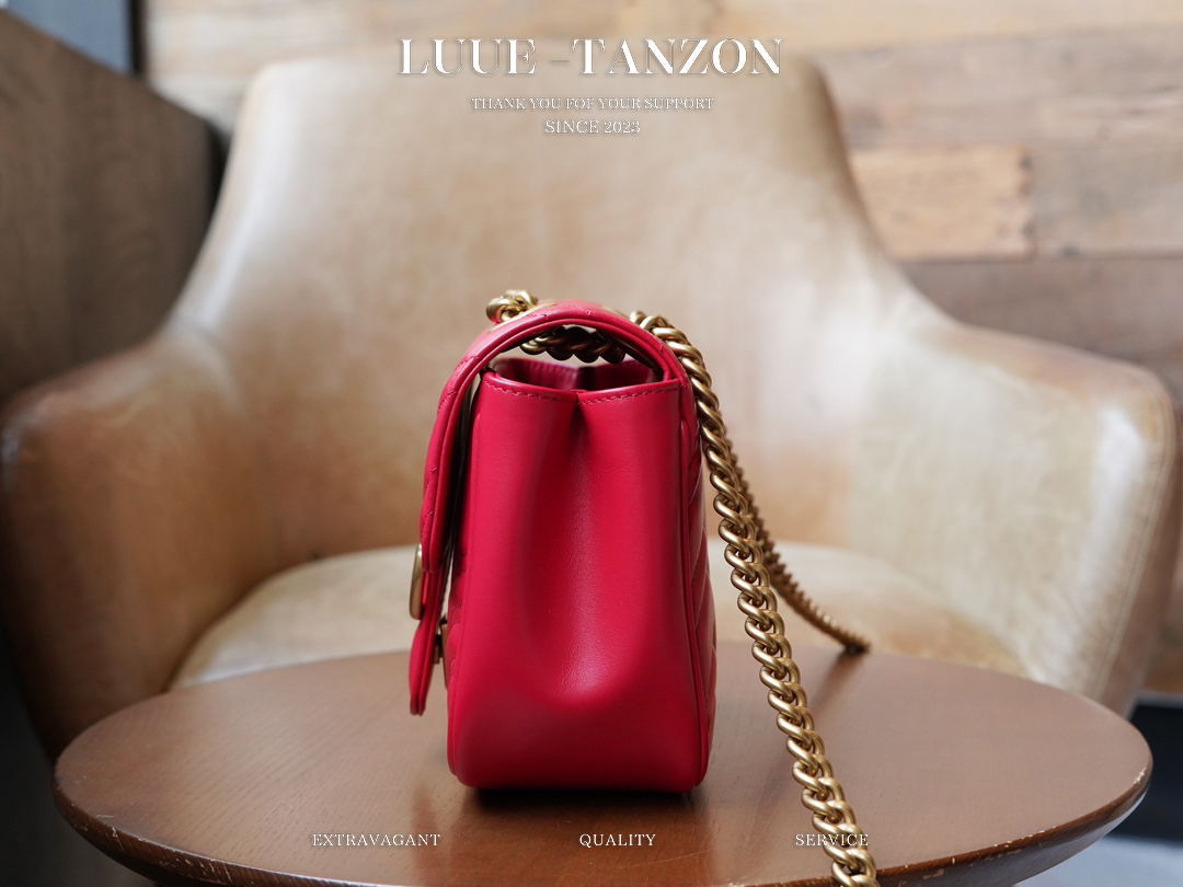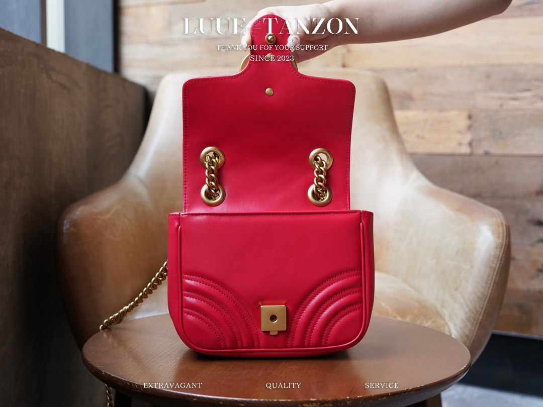 凭借极具辨识度的绗缝面料和双G配件,GG Marmont系列手袋已成为品牌象征。该经典系列每一季都会推出全新廓形,与当前的美学理念相呼应。这款托特包以红色皮革匠心打造,巧妙融入古金色调细节。