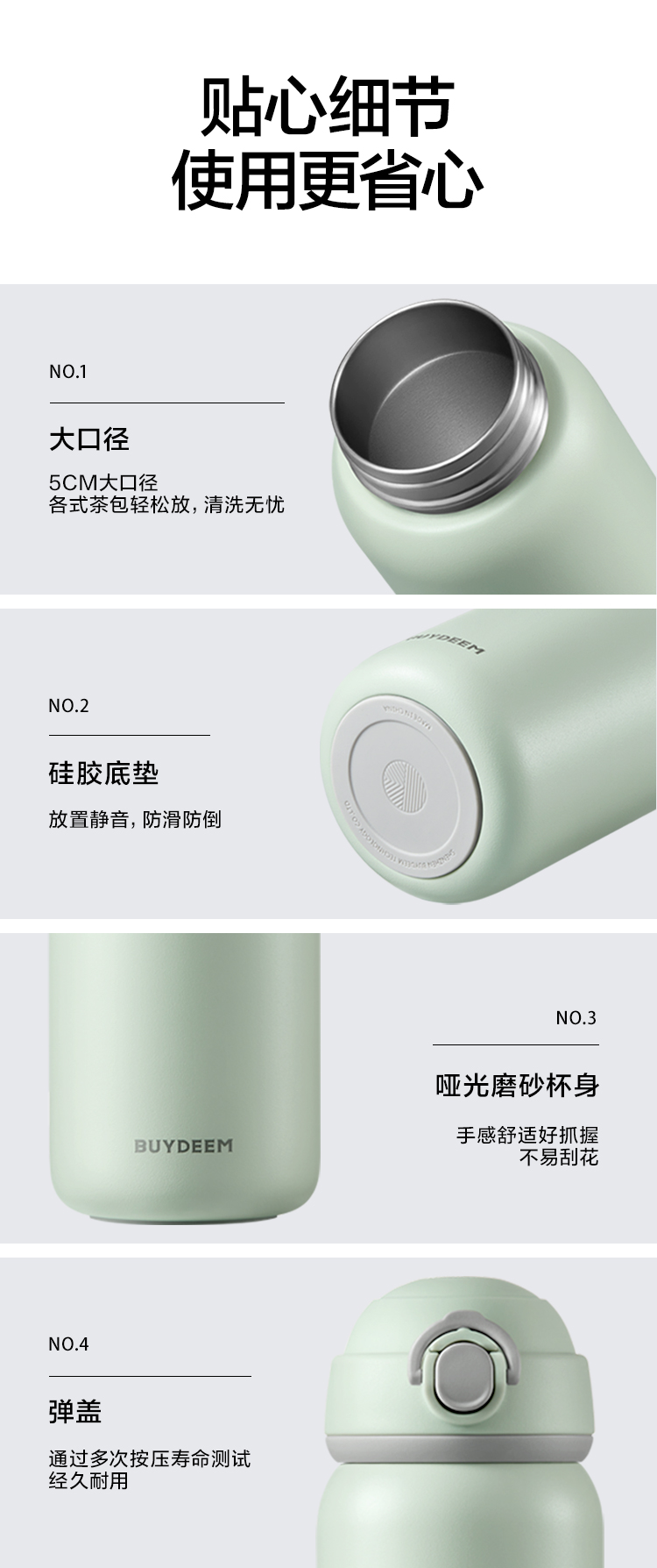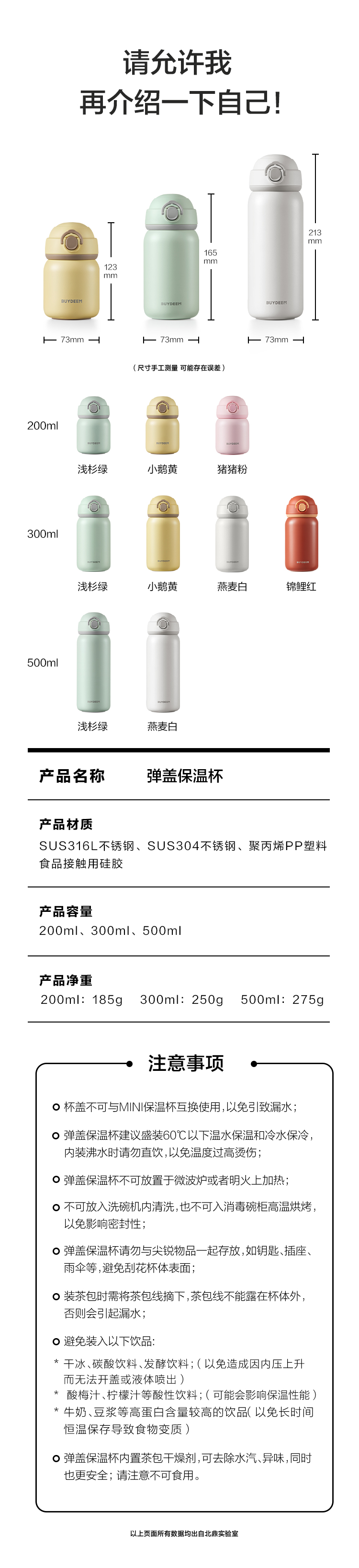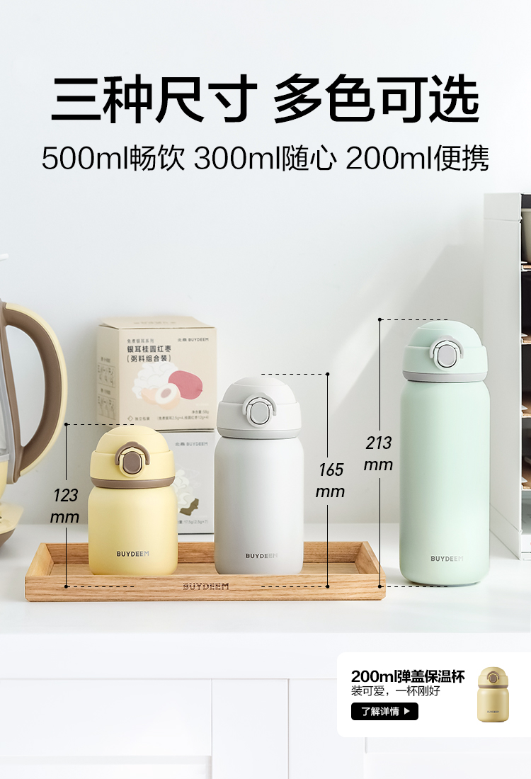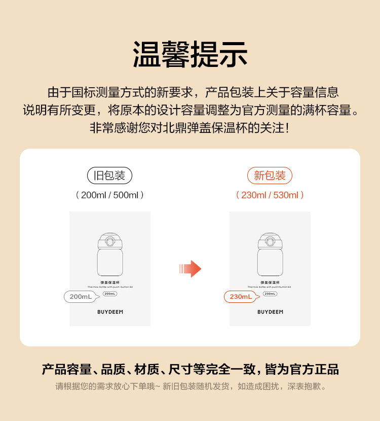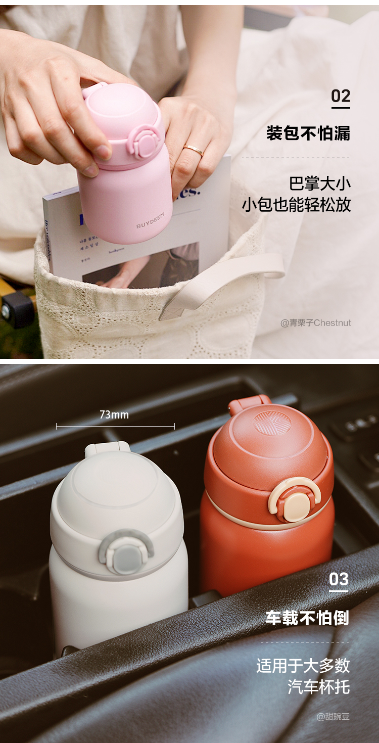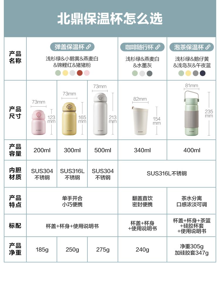 北鼎弹盖保温保冷杯 可爱水杯316L不锈钢便携杯子男女士情侣杯礼品
