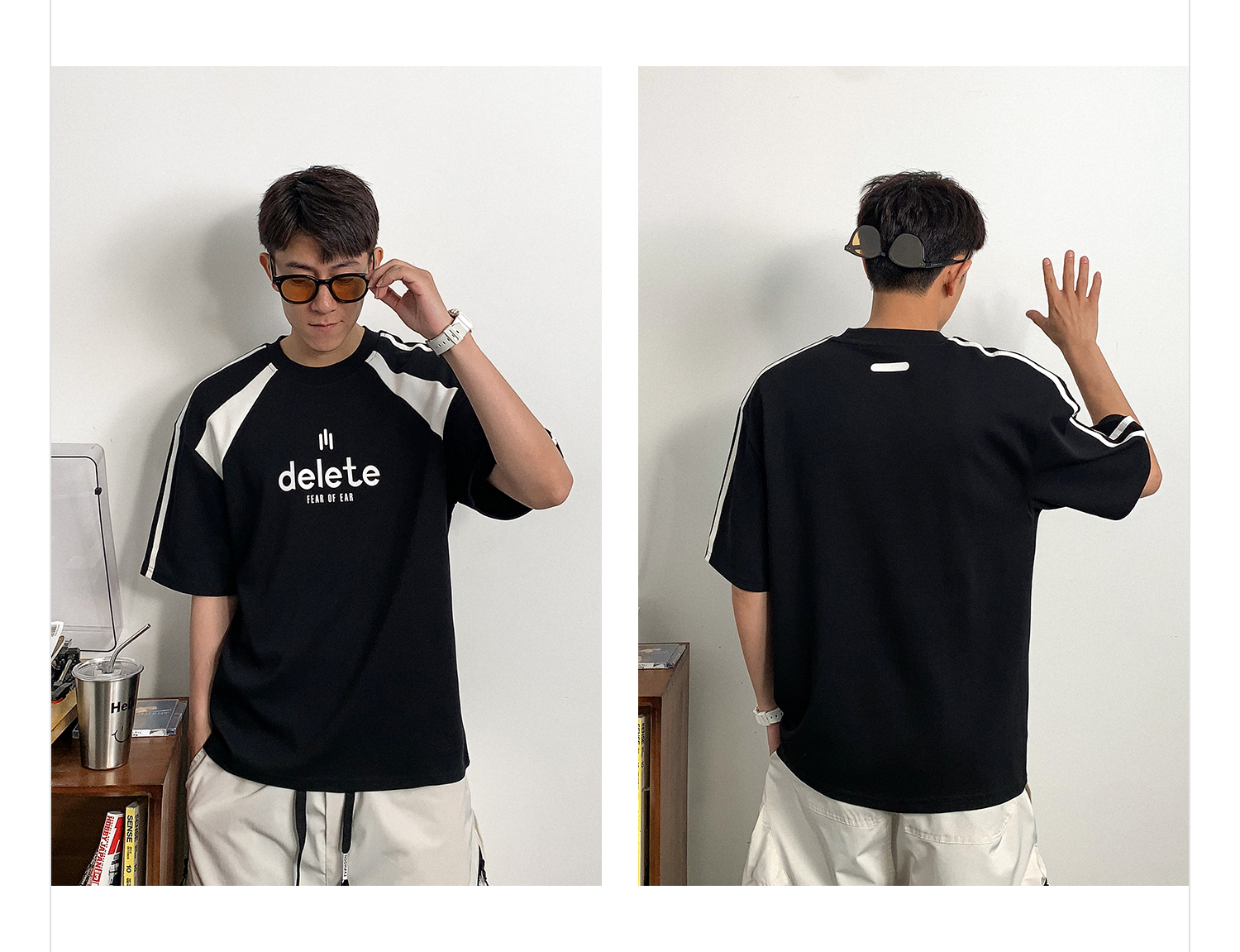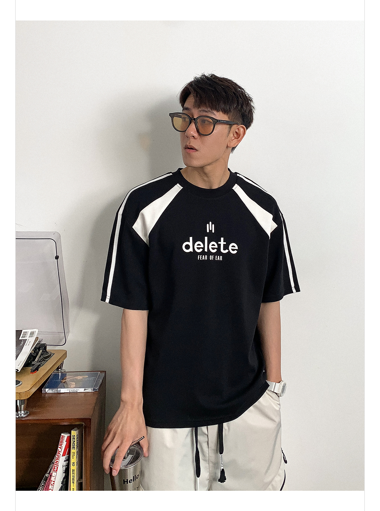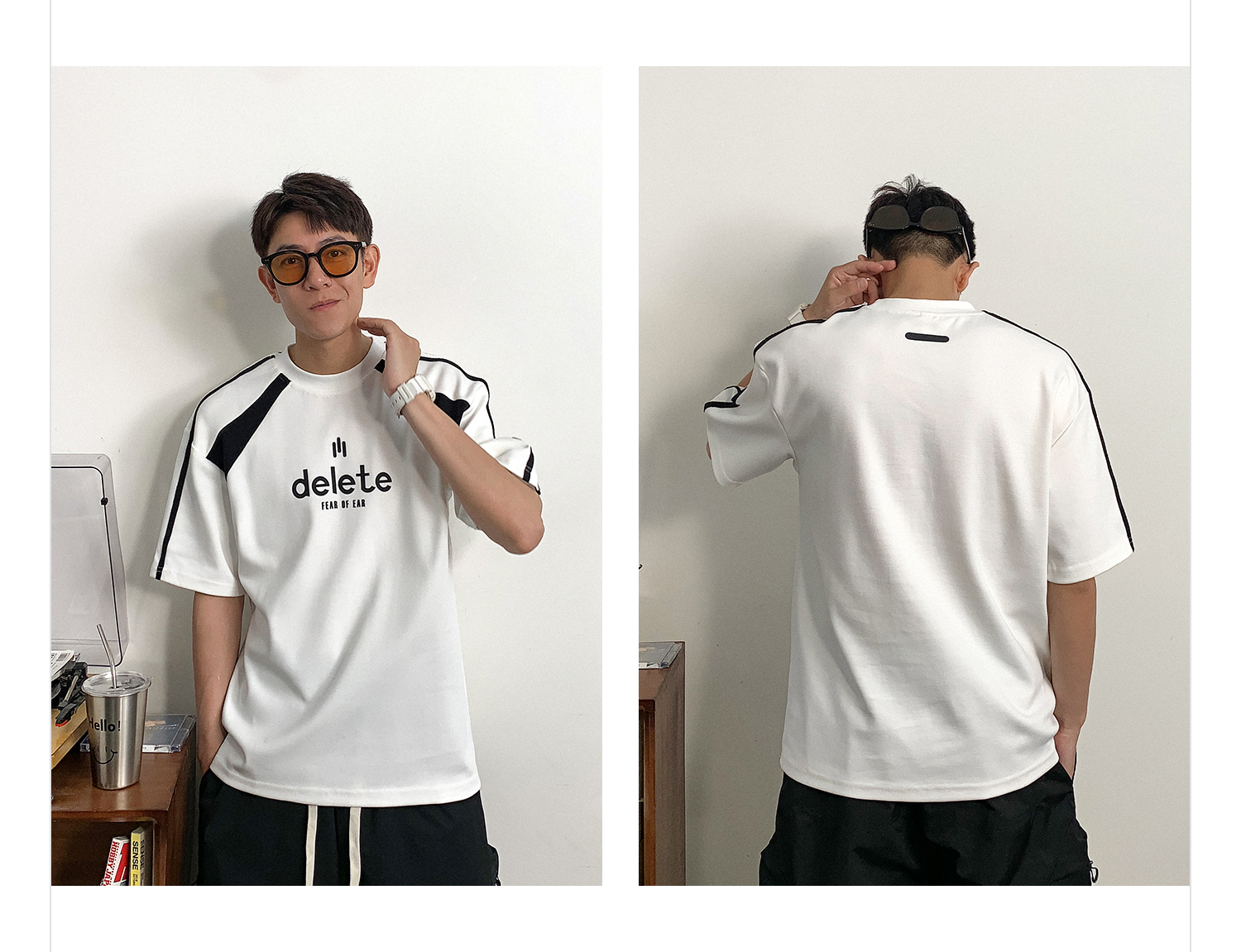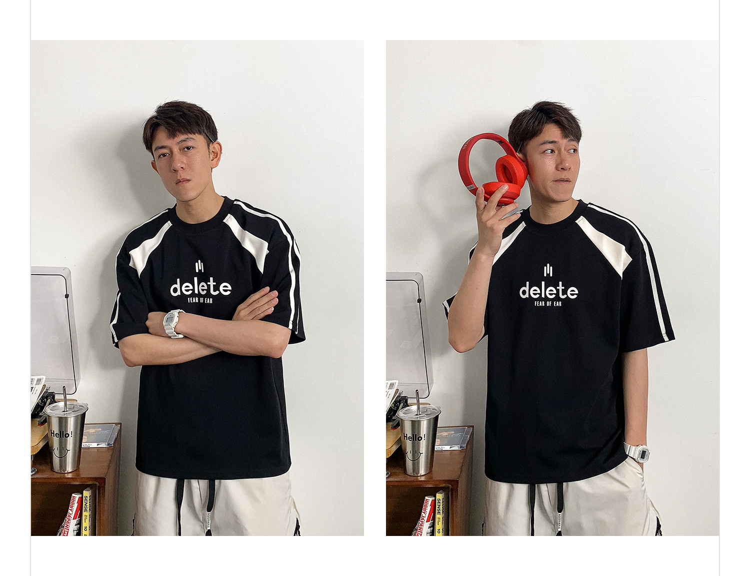 徐太浪美式时尚拼色短袖T恤男夏季透气宽松大码男装圆领中袖上衣