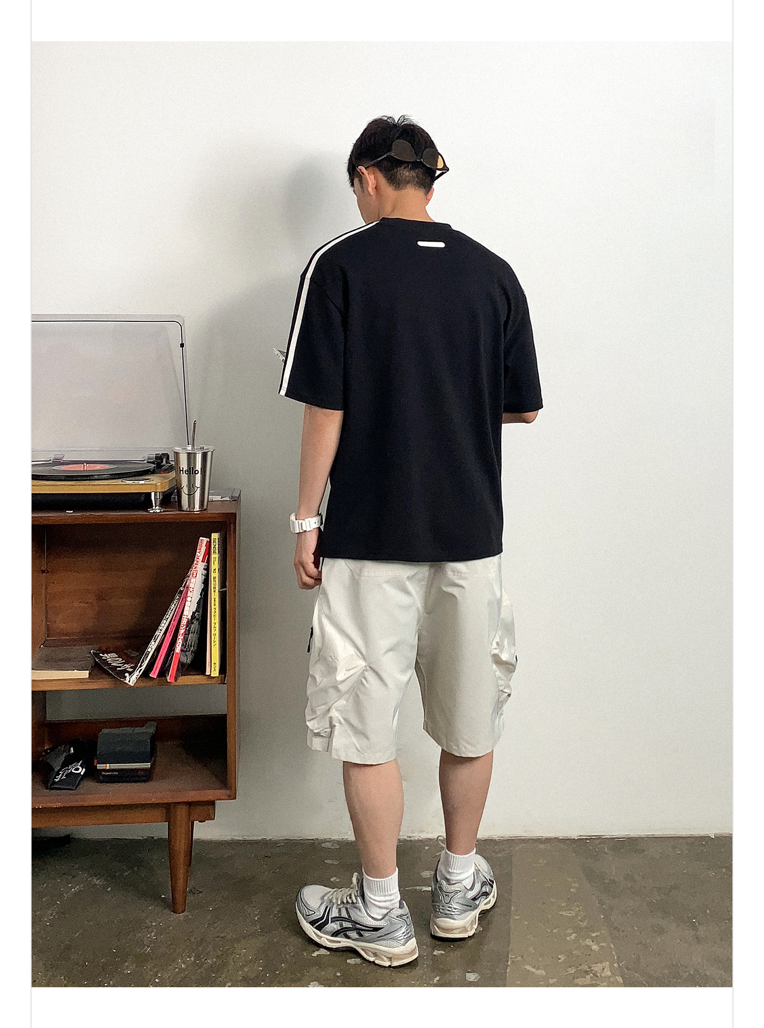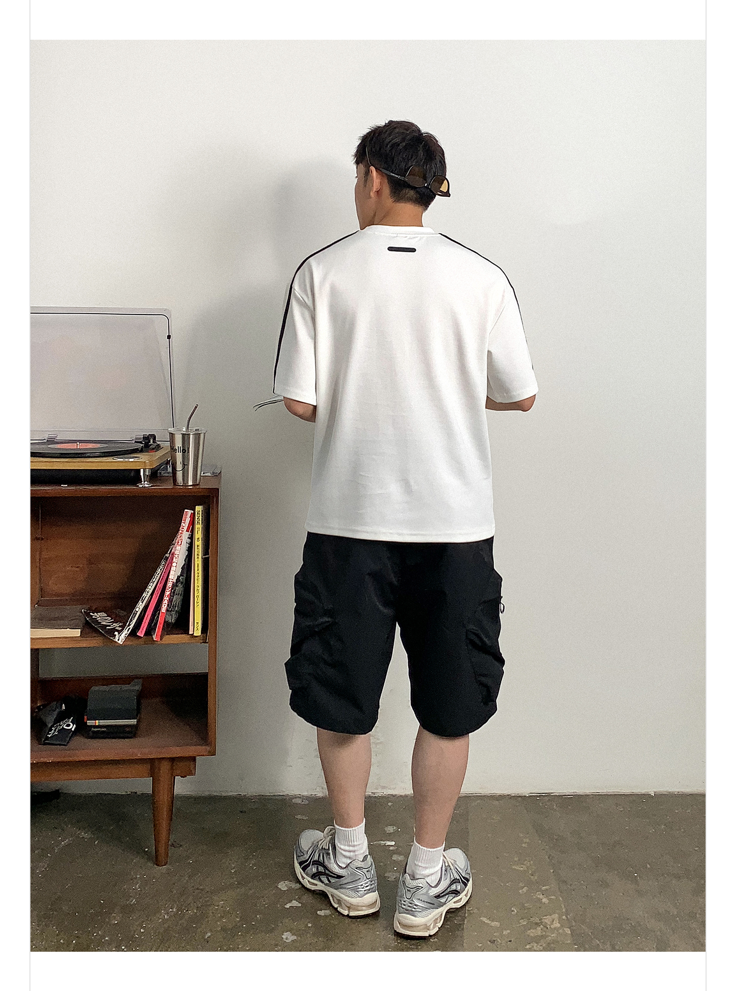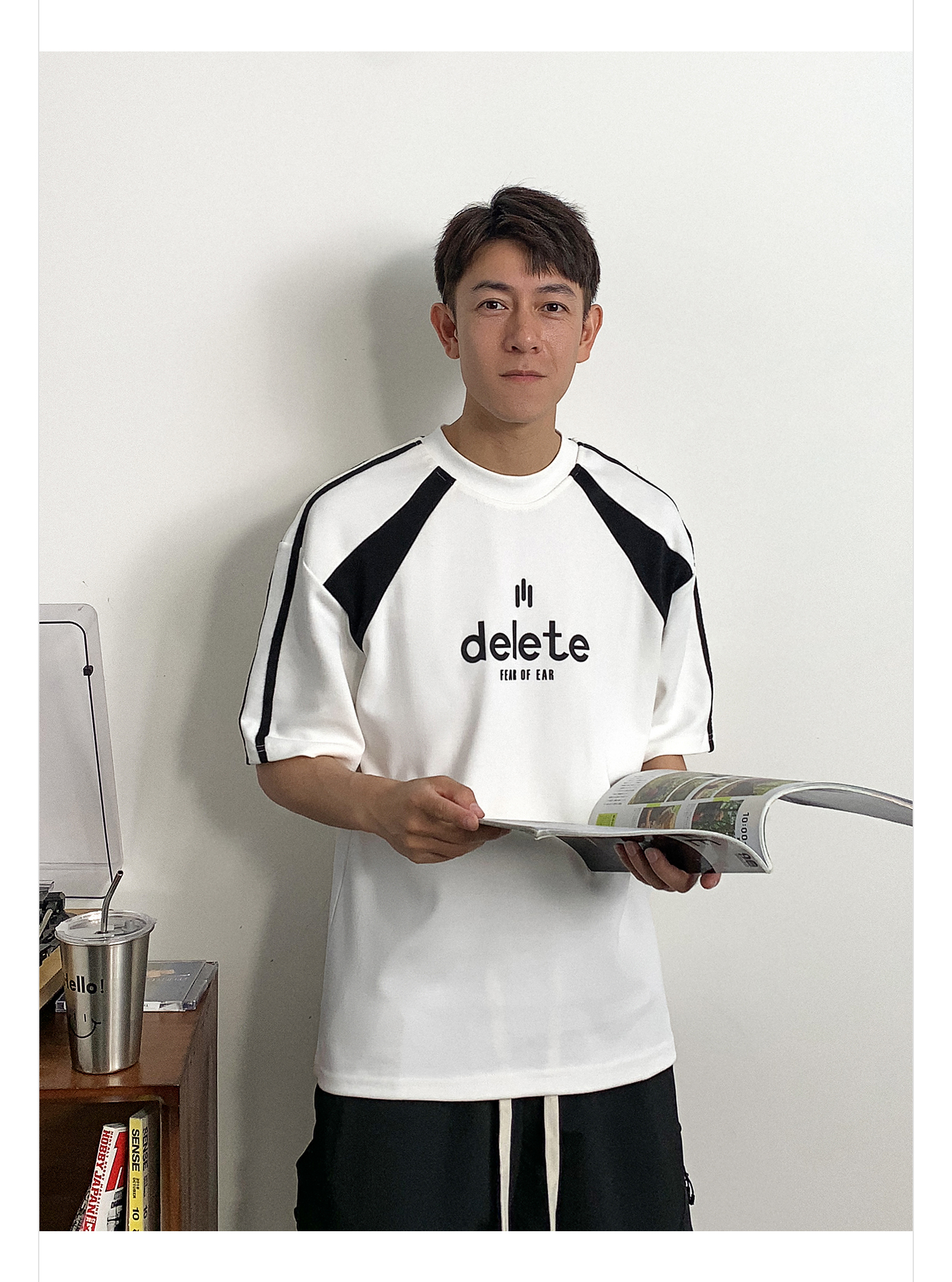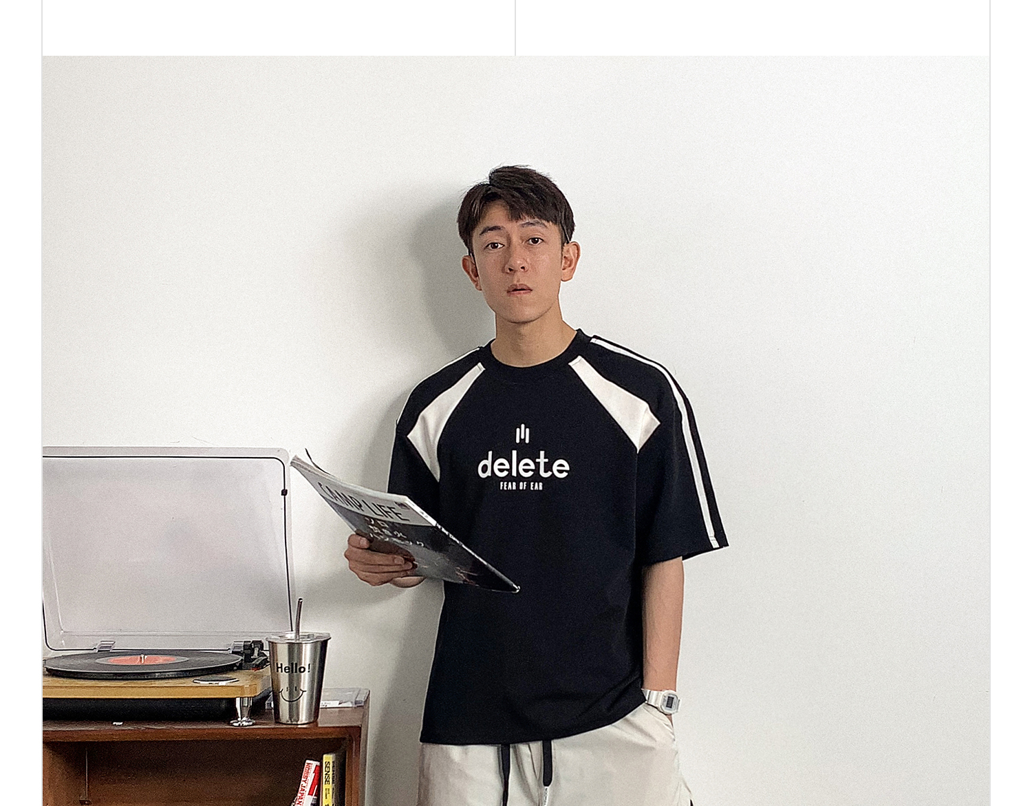徐太浪美式时尚拼色短袖T恤男夏季透气宽松大码男装圆领中袖上衣