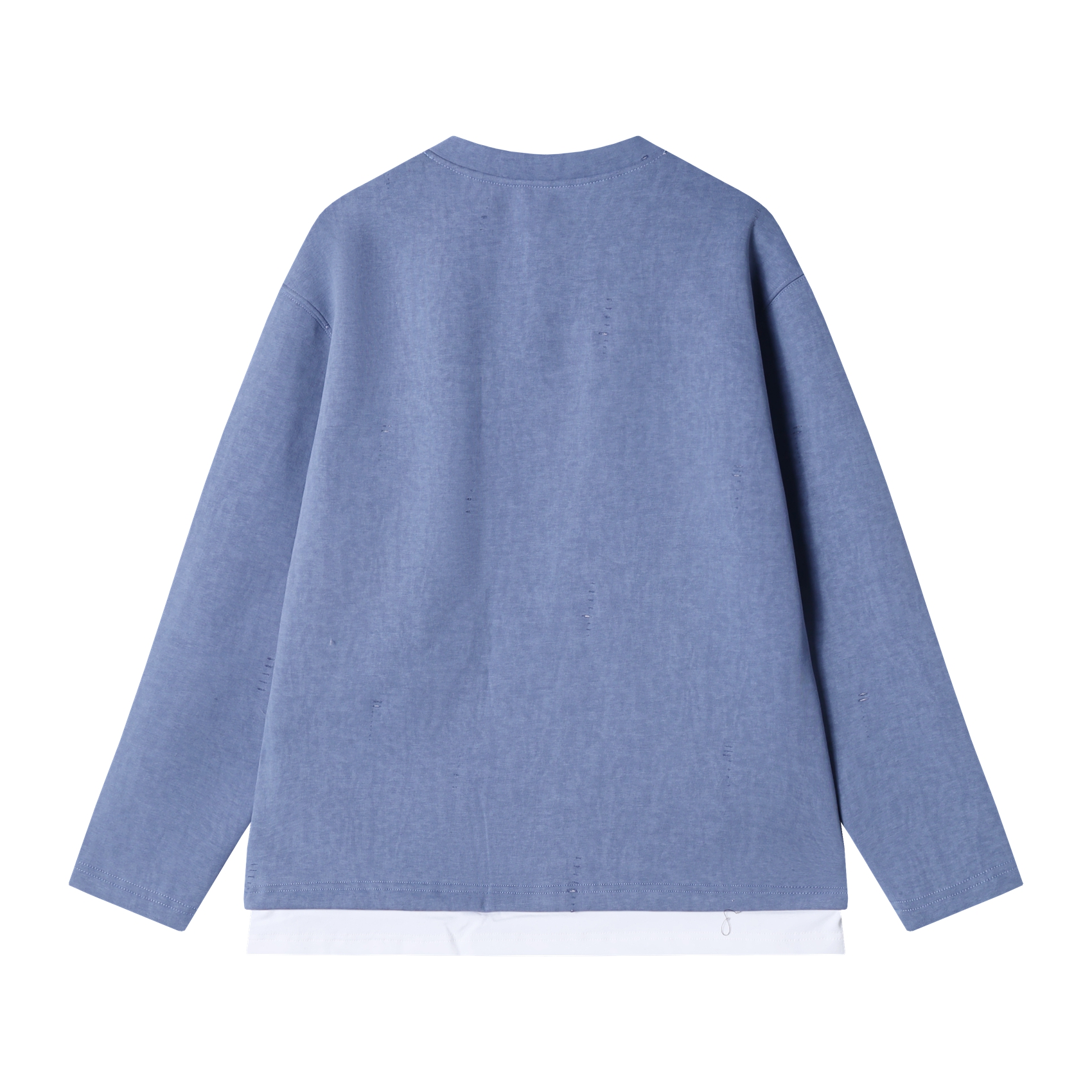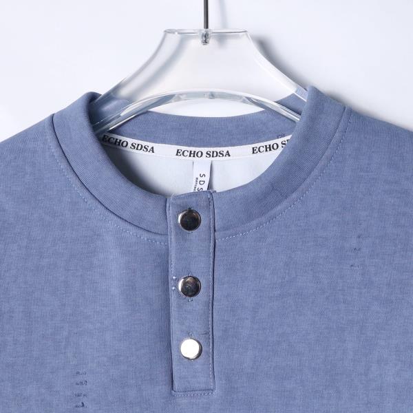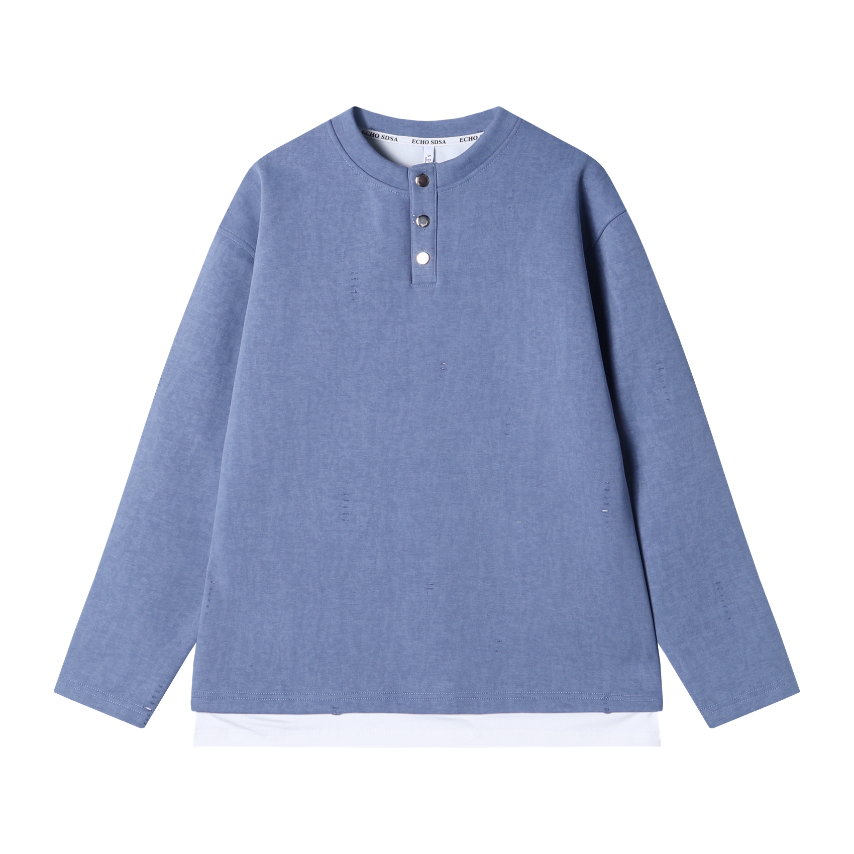 T2040秋冬新款男士搬开领纯色假两件割破设计纽扣长袖日系百搭卫衣