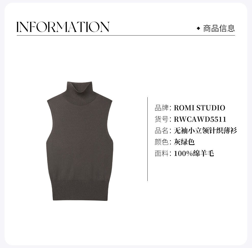 ROMI STUDIO“知性优雅”可机洗绵羊毛高领无袖毛衫 RWCSST1678