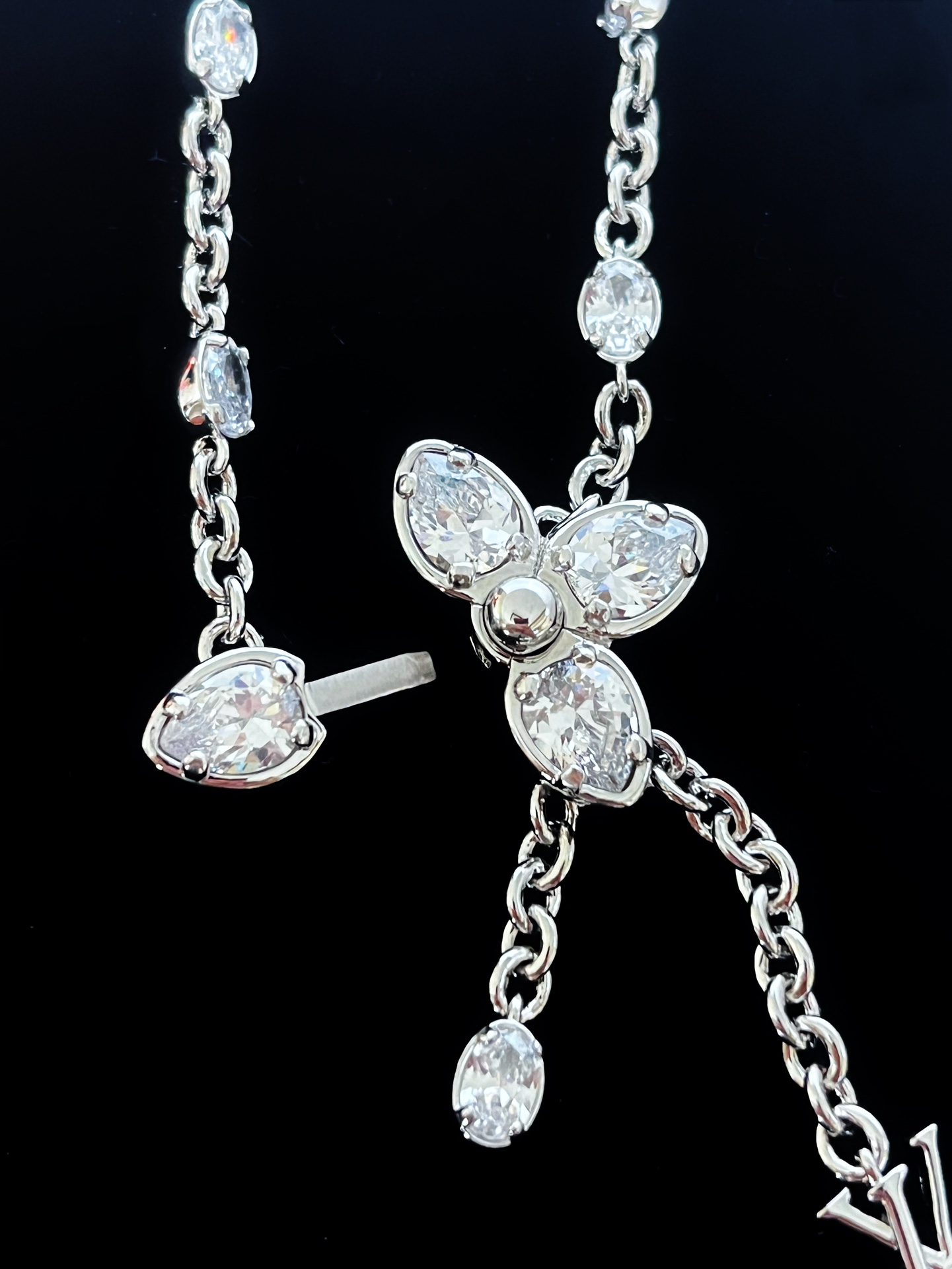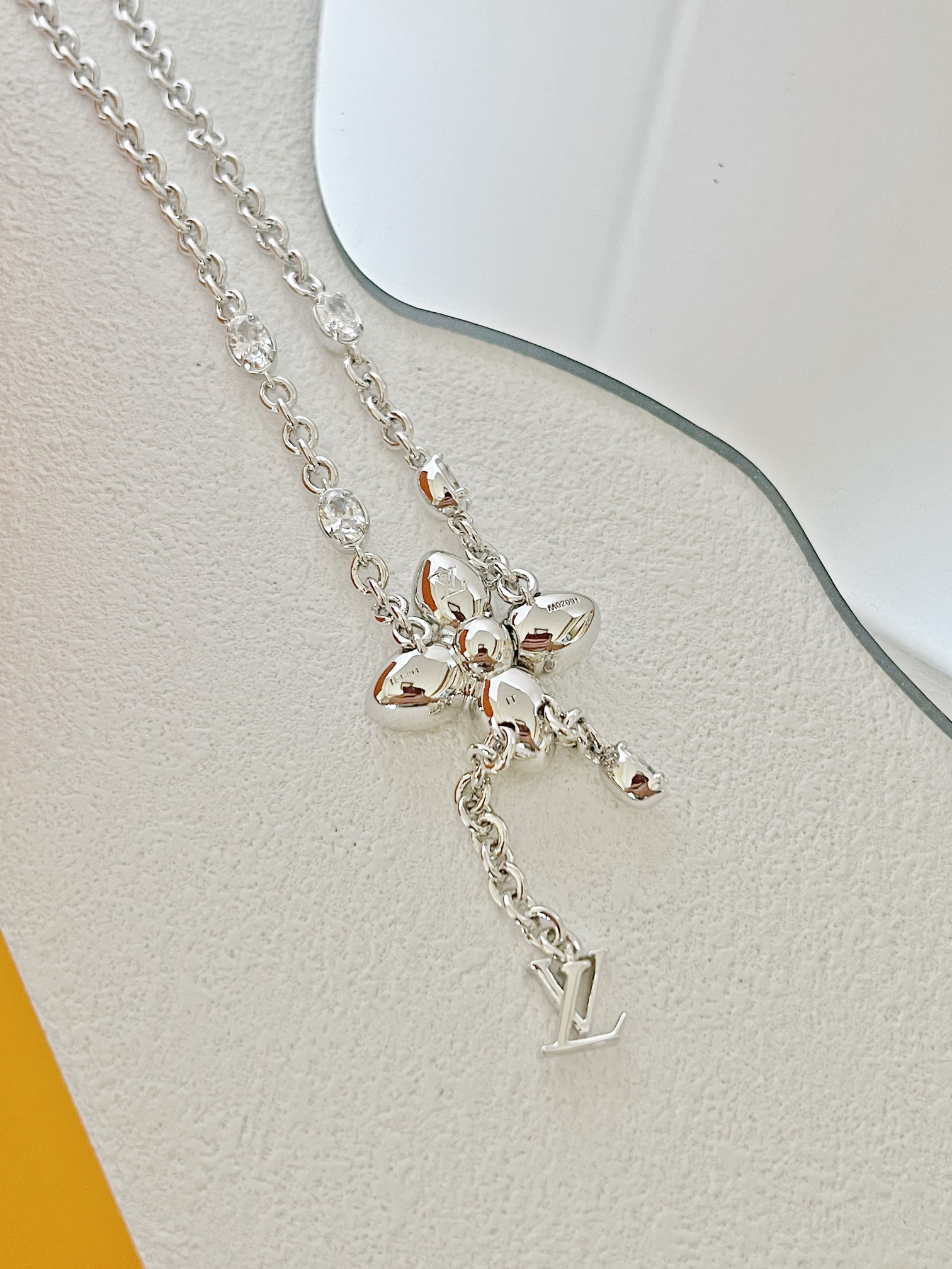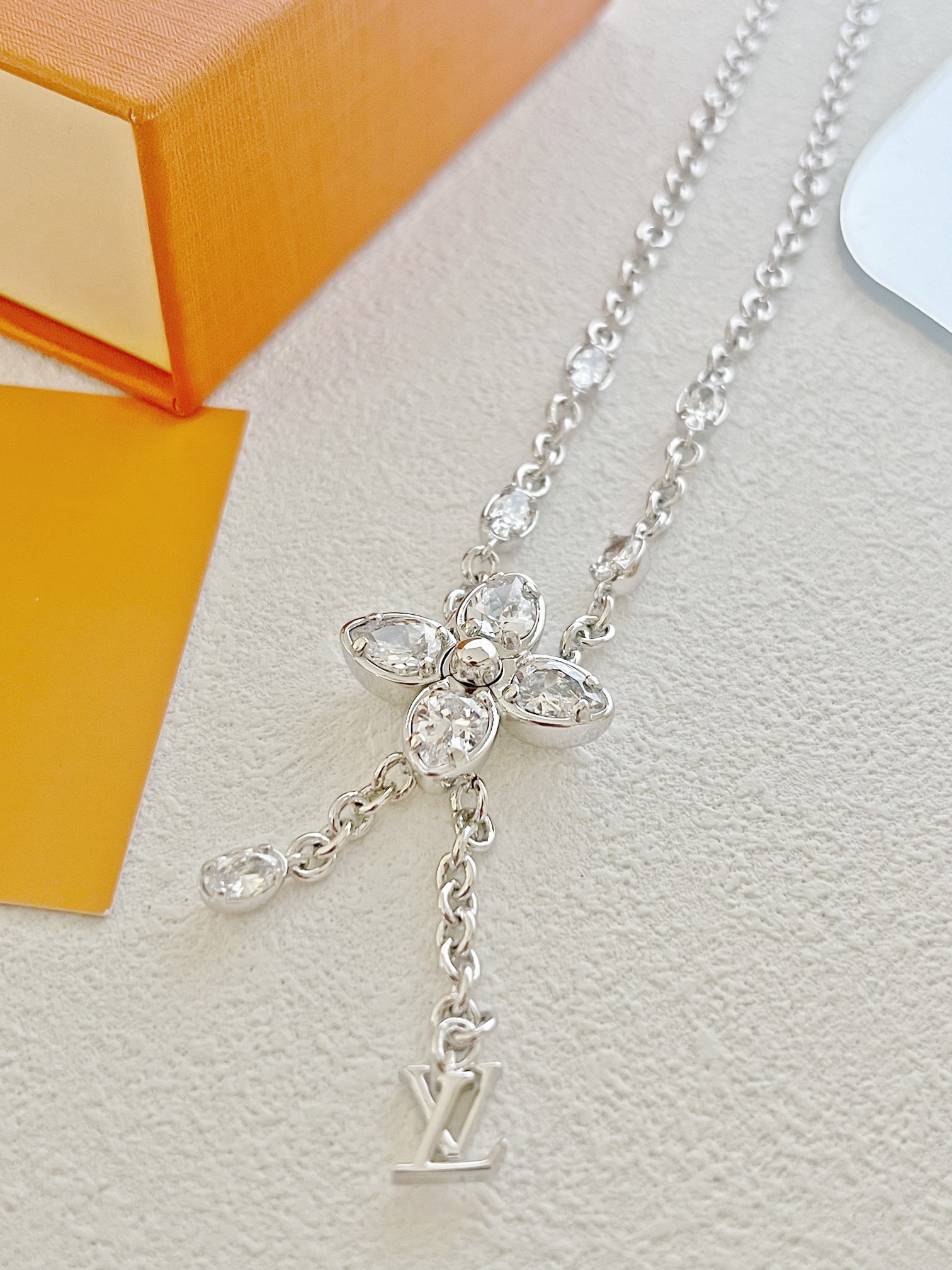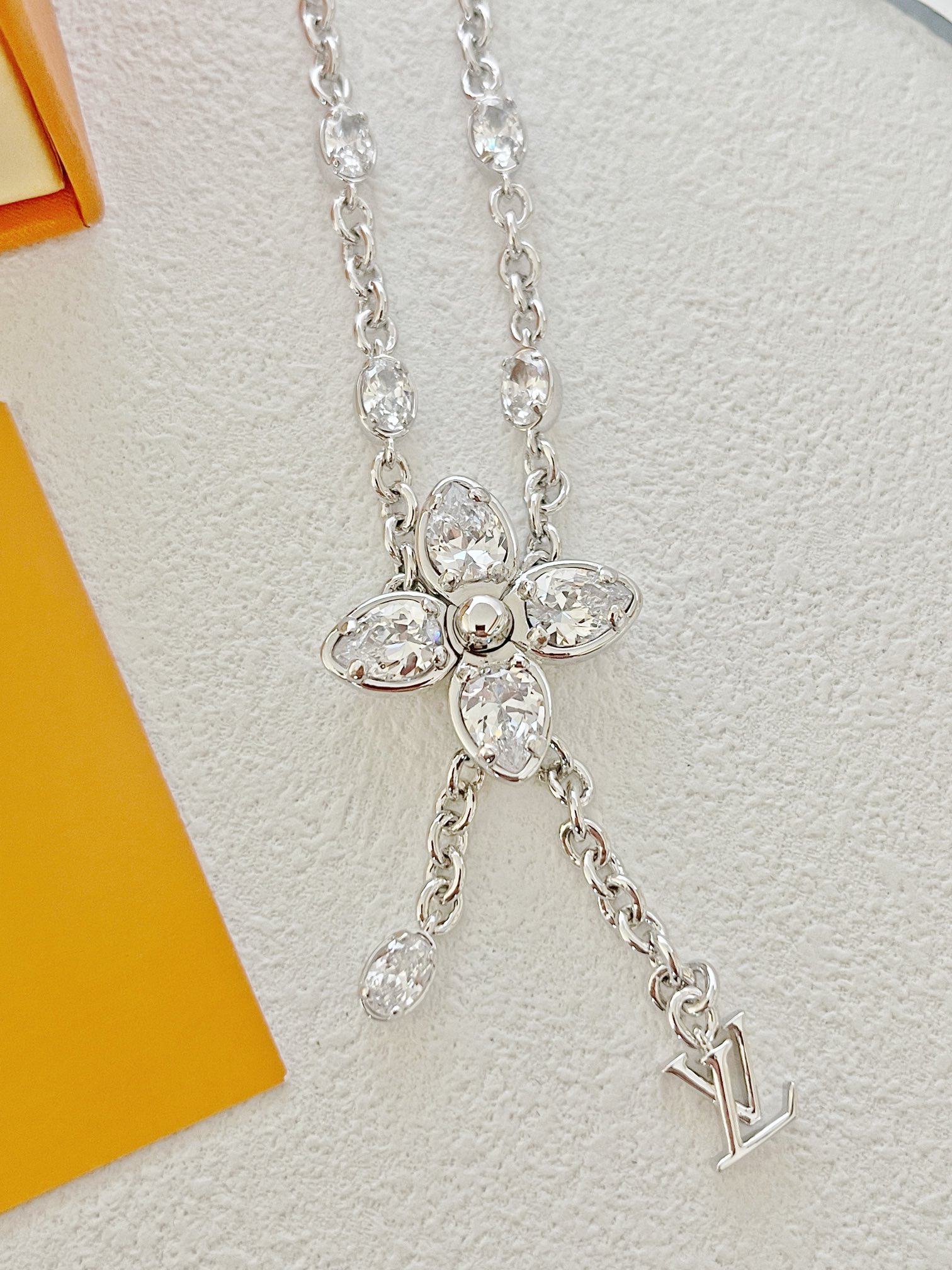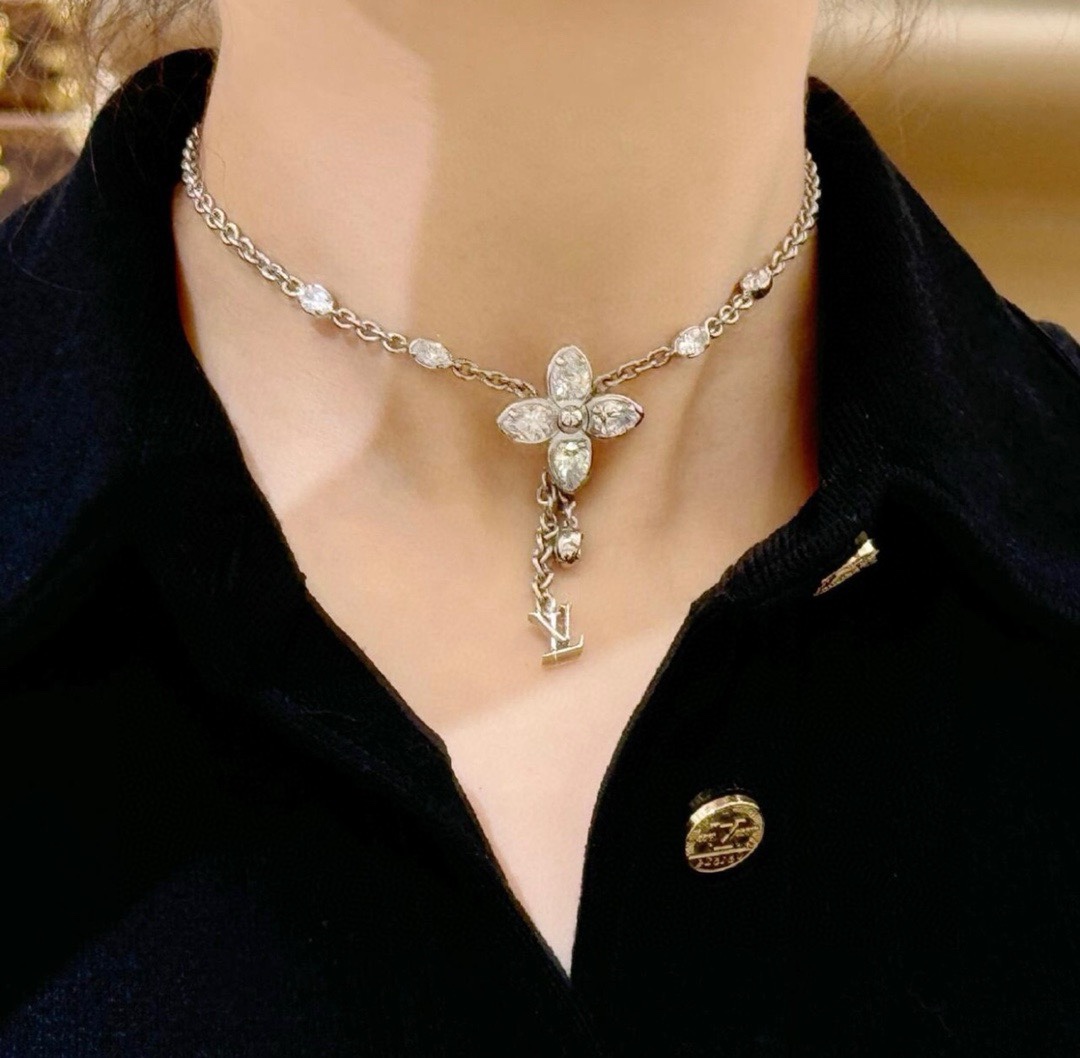 经典水晶小花朵,标志极具辨识度!特别定制开关扣!非常重工!椭圆水钻➕字母的吊坠,超甜超气质!上身温柔又气质,贵气值直接拉满。