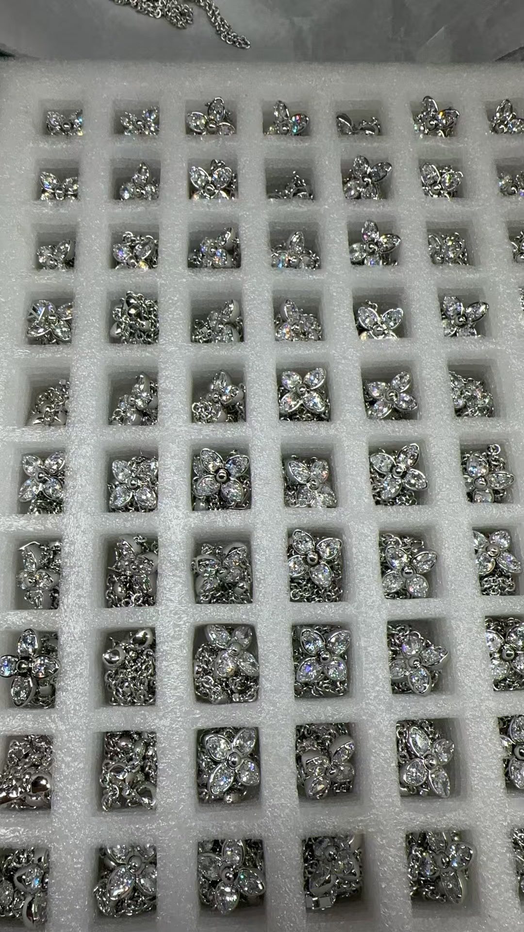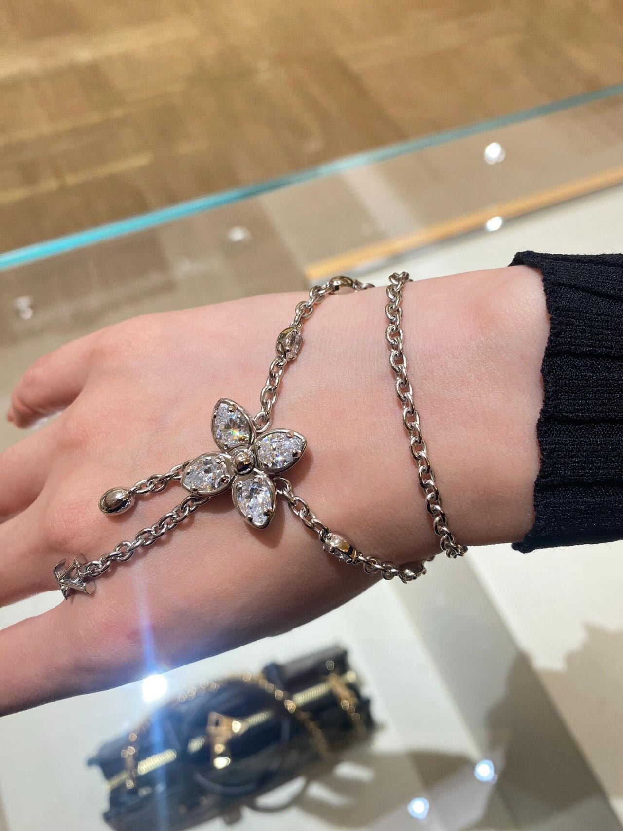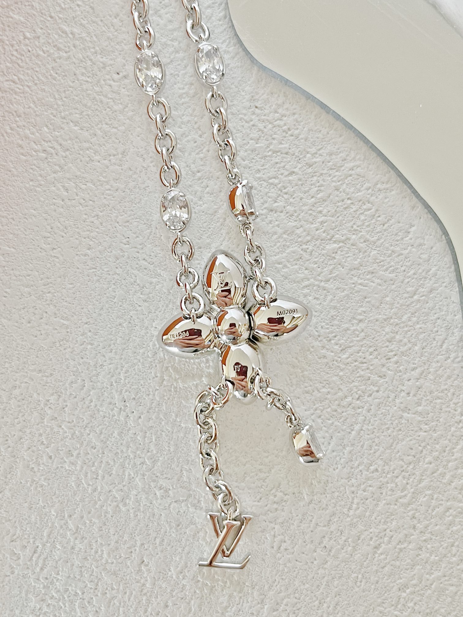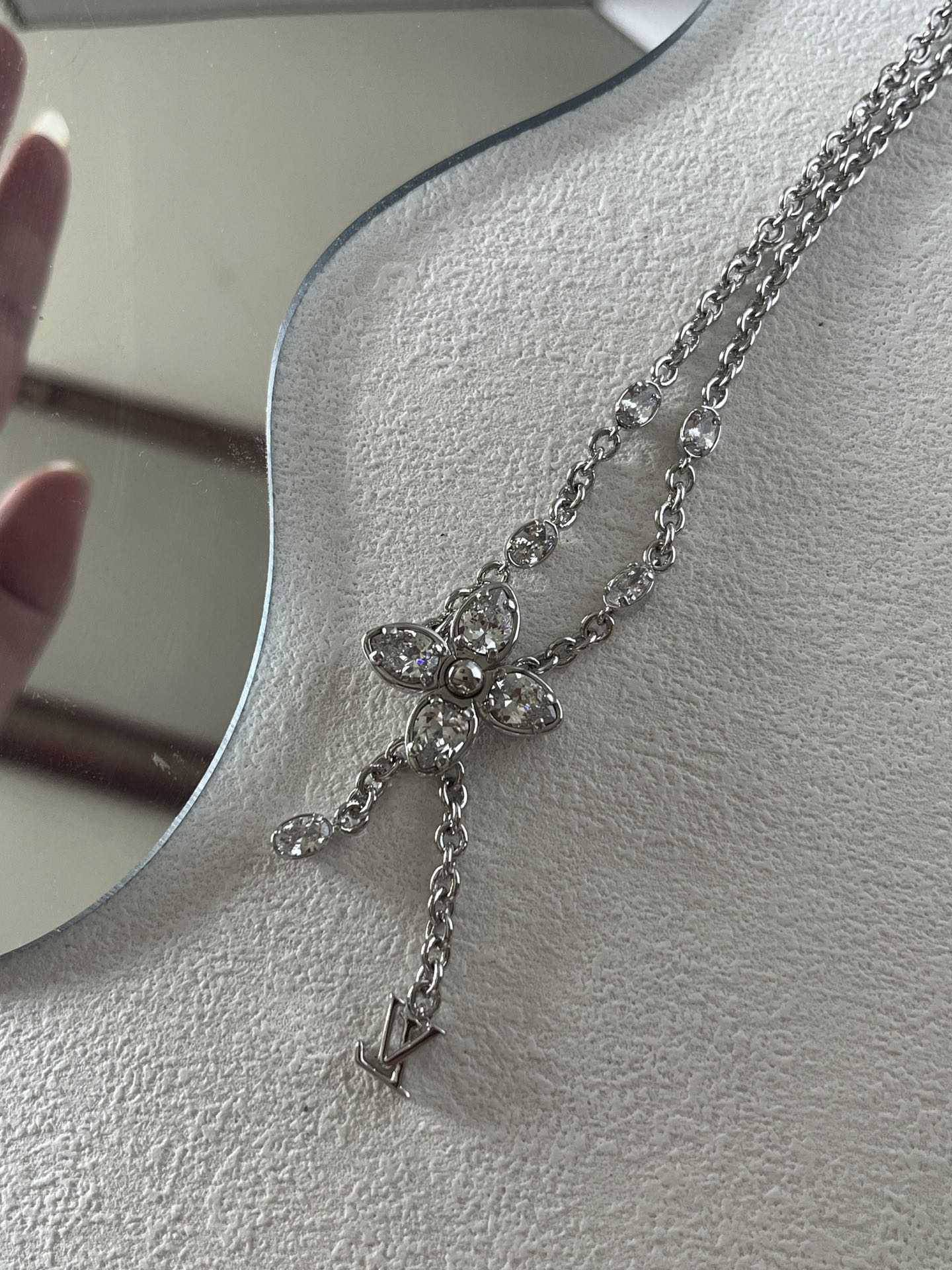 经典水晶小花朵,标志极具辨识度!特别定制开关扣!非常重工!椭圆水钻➕字母的吊坠,超甜超气质!上身温柔又气质,贵气值直接拉满。