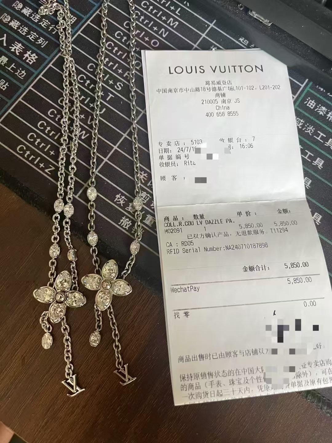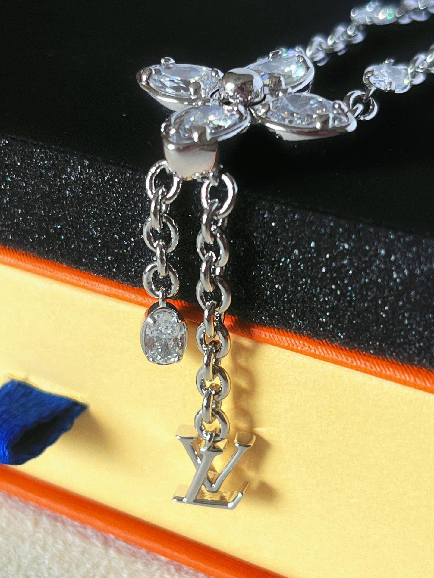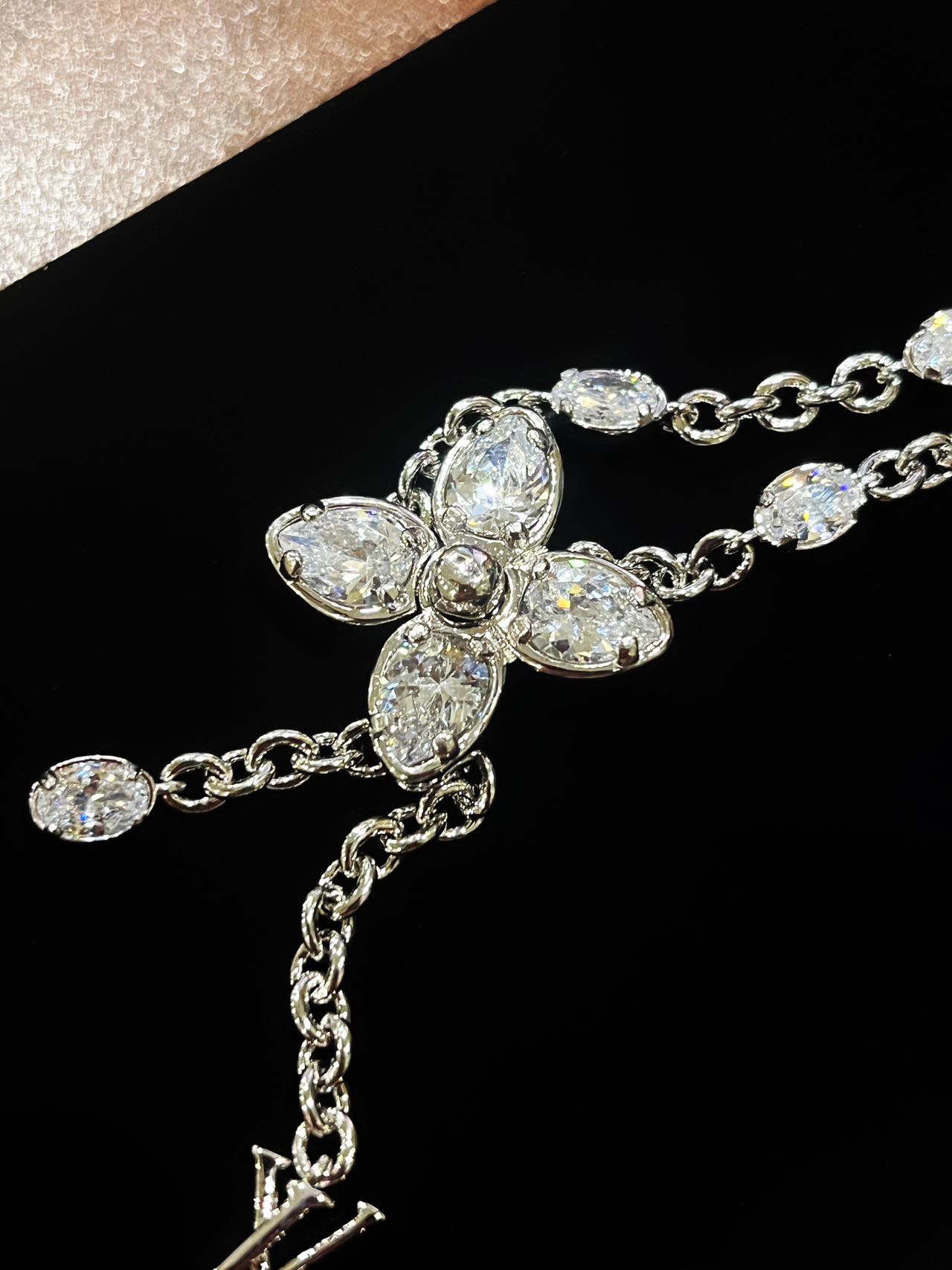 这款项链的石头都是采用了5A锆石。“5A”是对其光泽度、净度、切工、色彩及稳定性的全方位高标准评价。这条项链上的每一颗锆石,都经过精心挑选与精细打磨,确保每一面都能光彩夺目