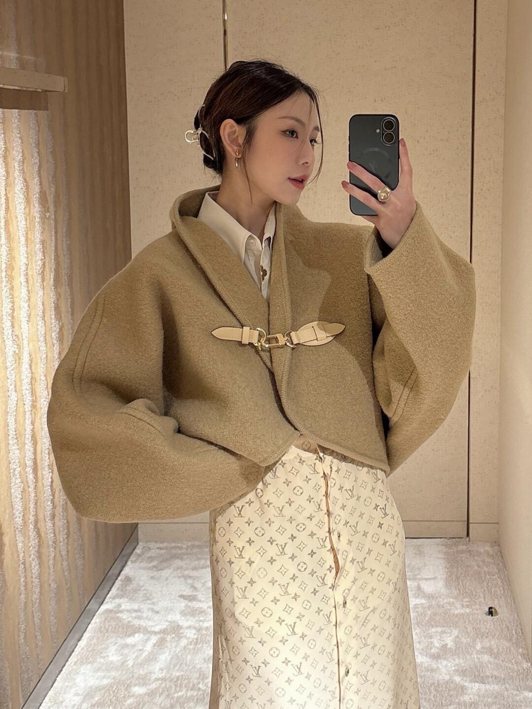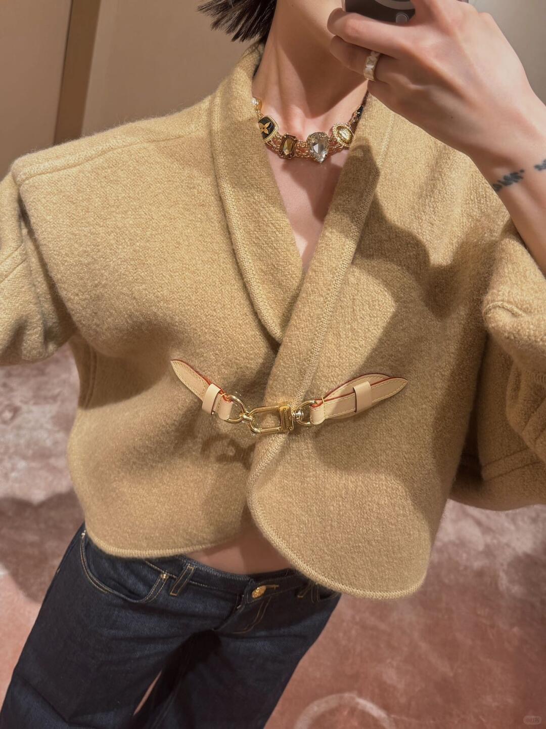 Louis Vuitto* 24FW秋冬新品 金属皮扣羊毛斗篷大衣外套丨⚠独家yb开发!高版出品!版型是恰到好处的阔版,又不会过于宽松,同时对身材的包容性很强!不挑胖瘦,太有设计感了,时髦的斗篷版型剪裁 小个子穿搭 时髦洋气 高挑小姐姐穿搭 飒爽高级 一款适用于任何场合穿搭的外套 闭眼入🧐