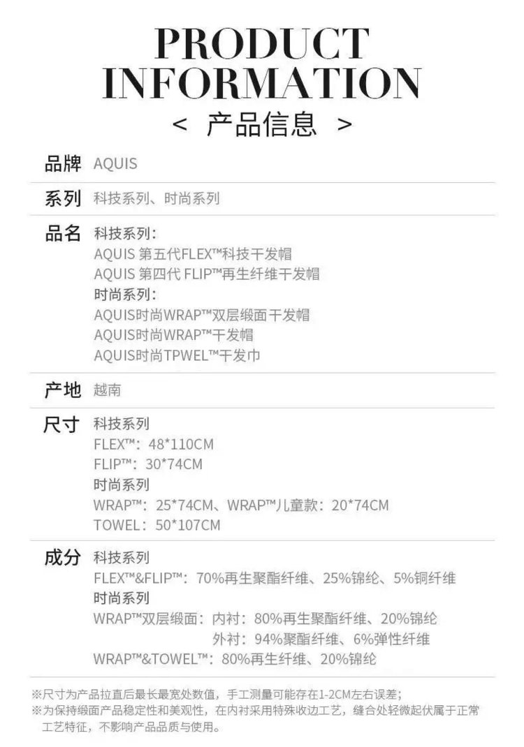 Aquis第五代全新Flex干发帽/巾一体
