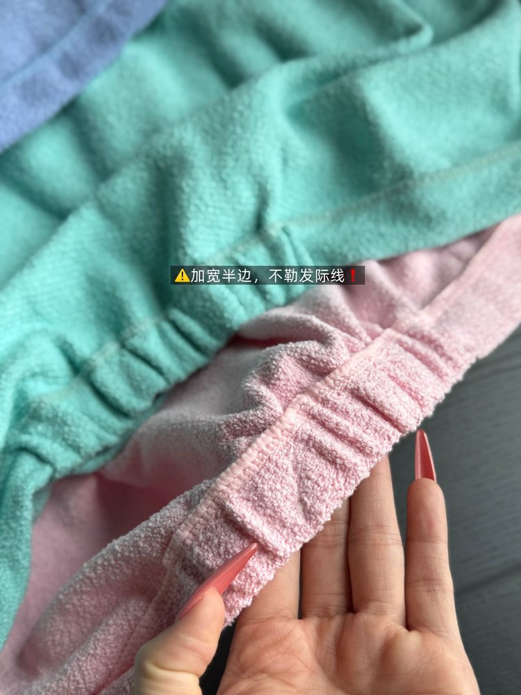 第五代材质加入抗起球工艺经测试反复机洗50次后纤维仍保持95%的吸水效率且不会出现掉毛、勾丝现象!!使用寿命是普通干发帽的3倍以上