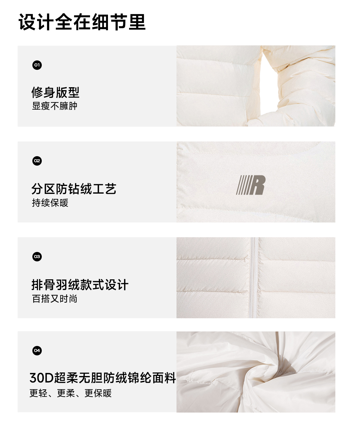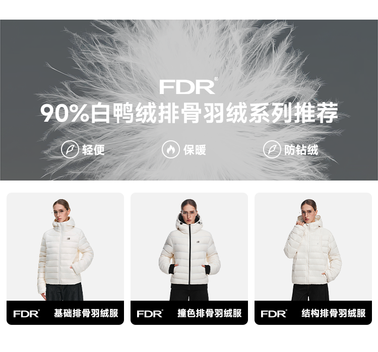 FDR官方 内胆外套男90白鸭绒毛领情侣轻薄连帽排骨羽绒服女款冬季