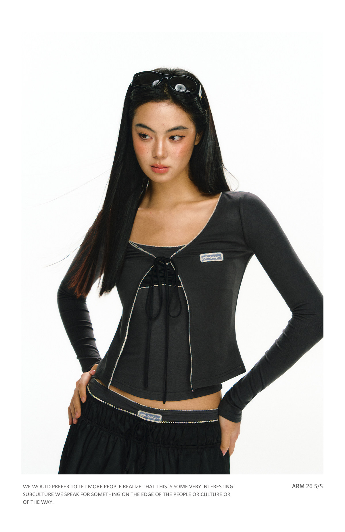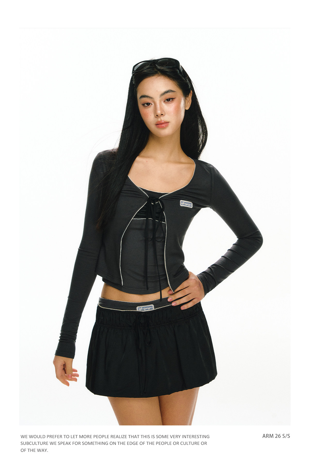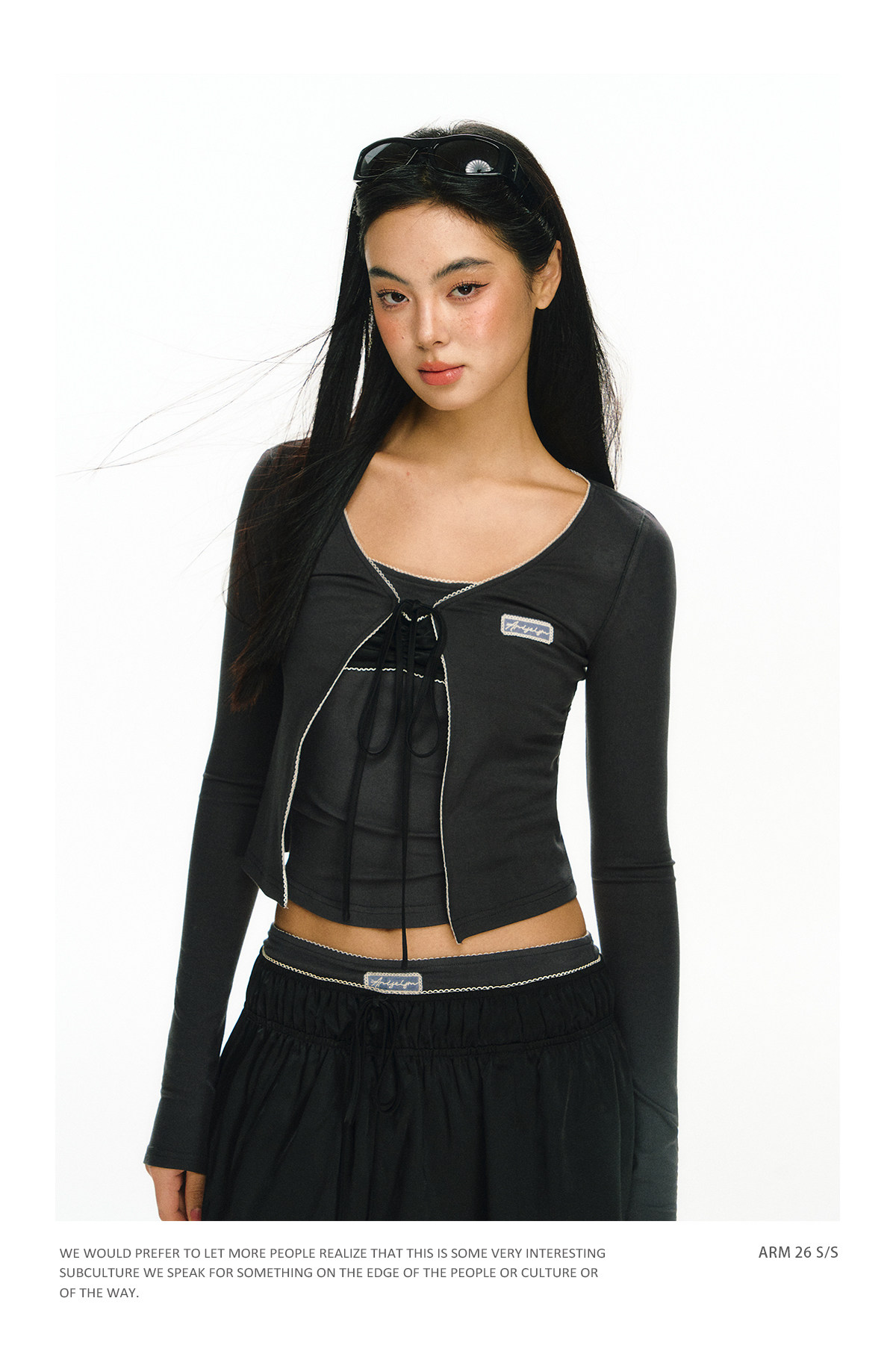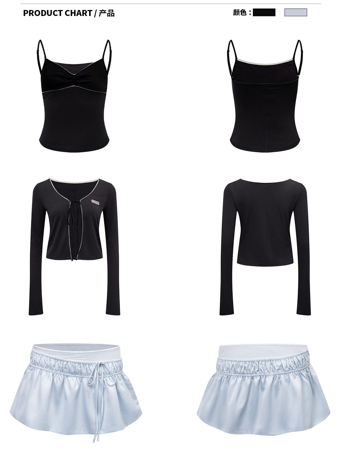 Ariseism 美式复古长袖上衣吊带半裙三件套套装女春新款