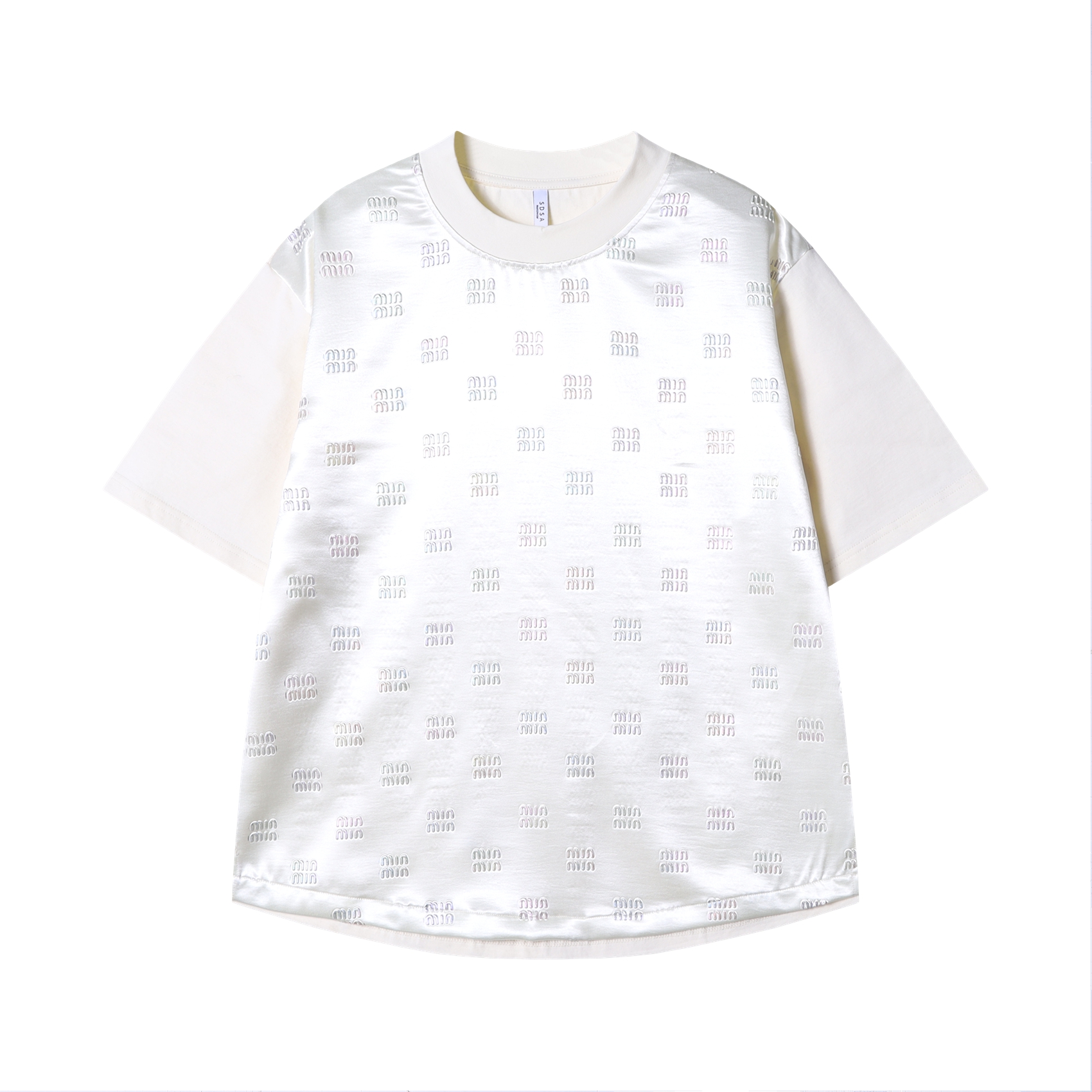 T2213早春新款时尚个性韩版拼接亮面印花字母圆领短袖T恤休闲百搭上衣