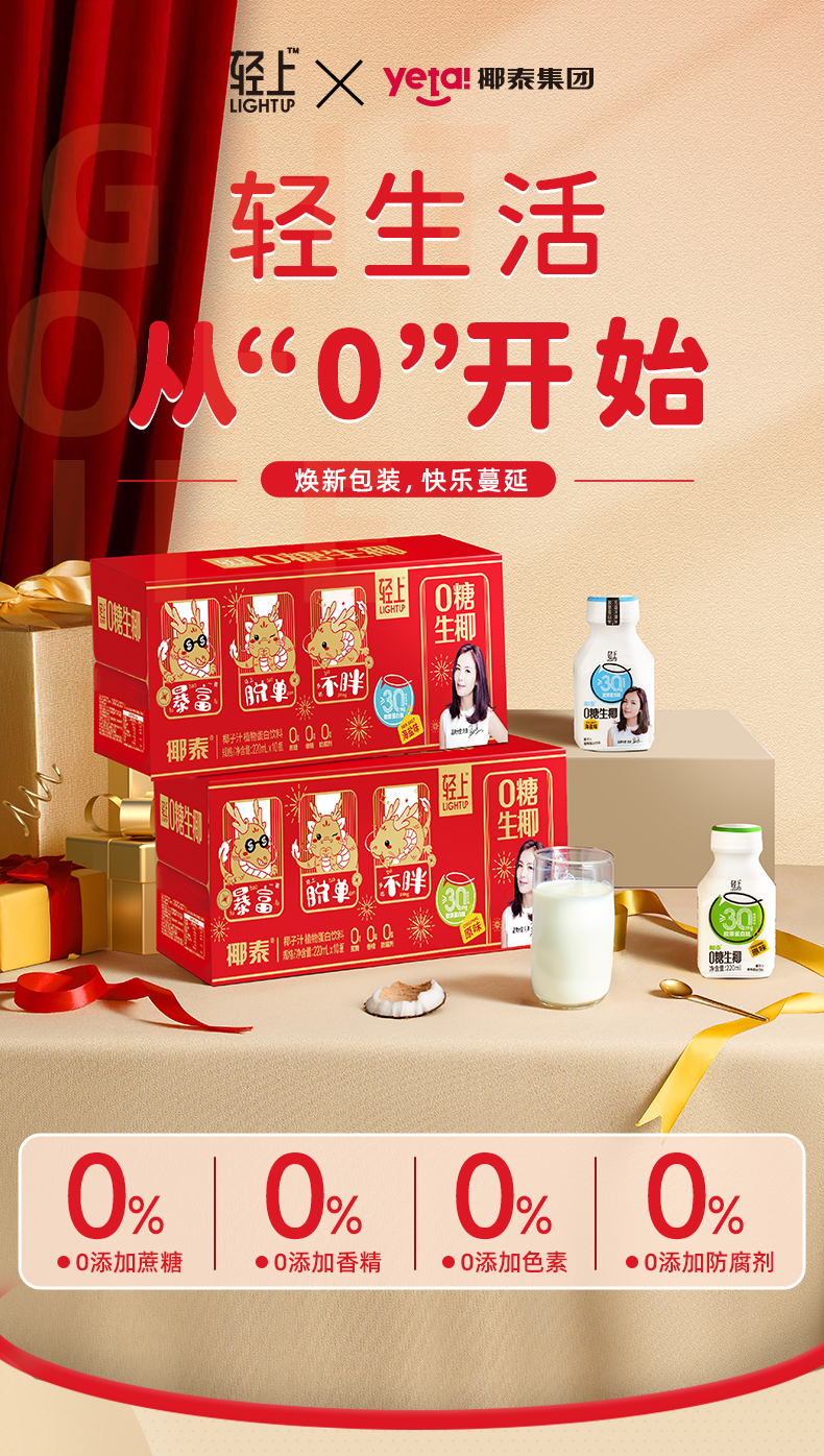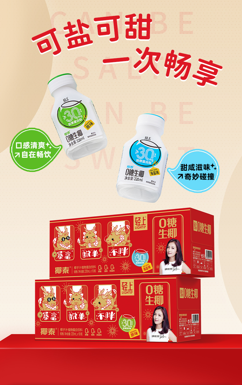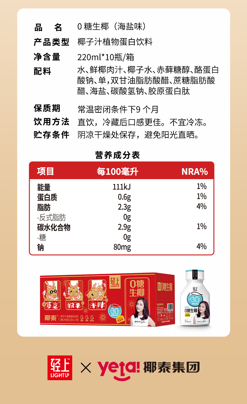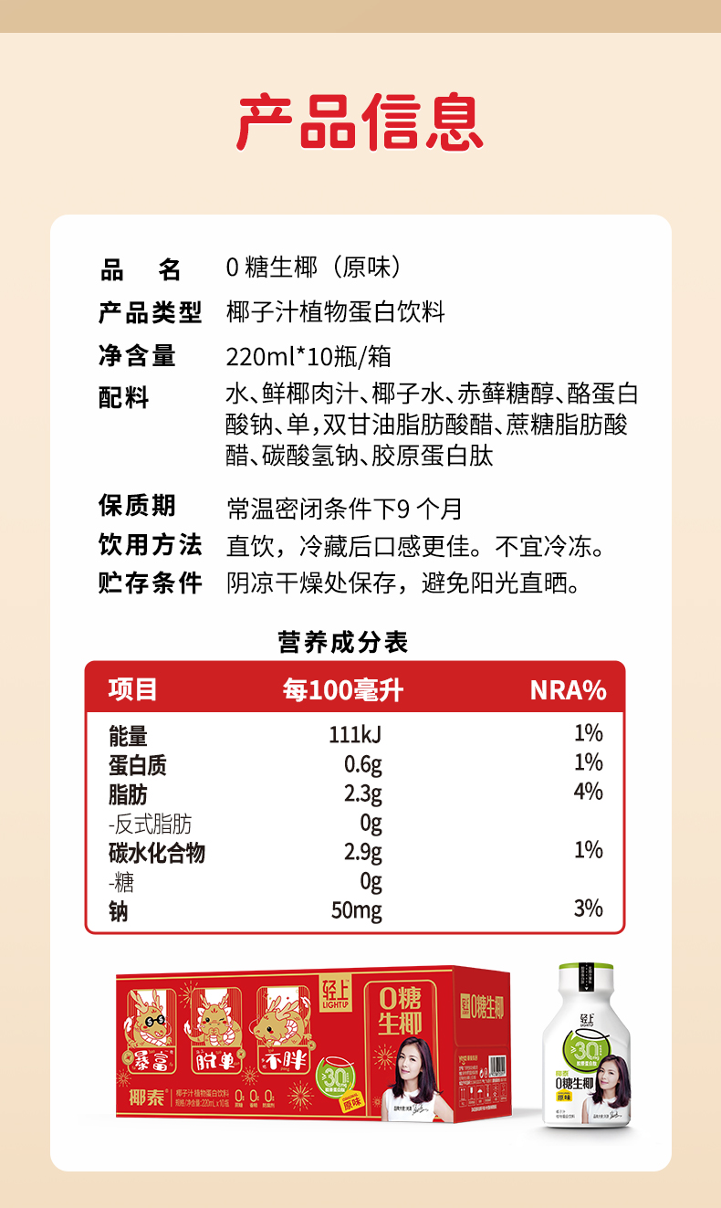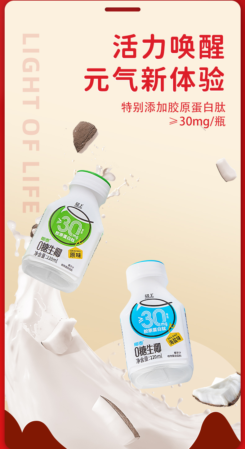 轻上0糖生椰椰汁椰奶生椰植物蛋白饮料220ml