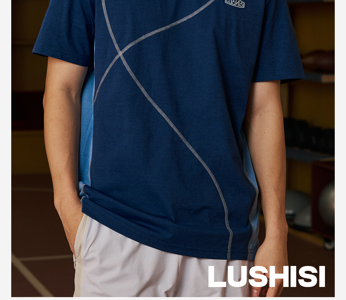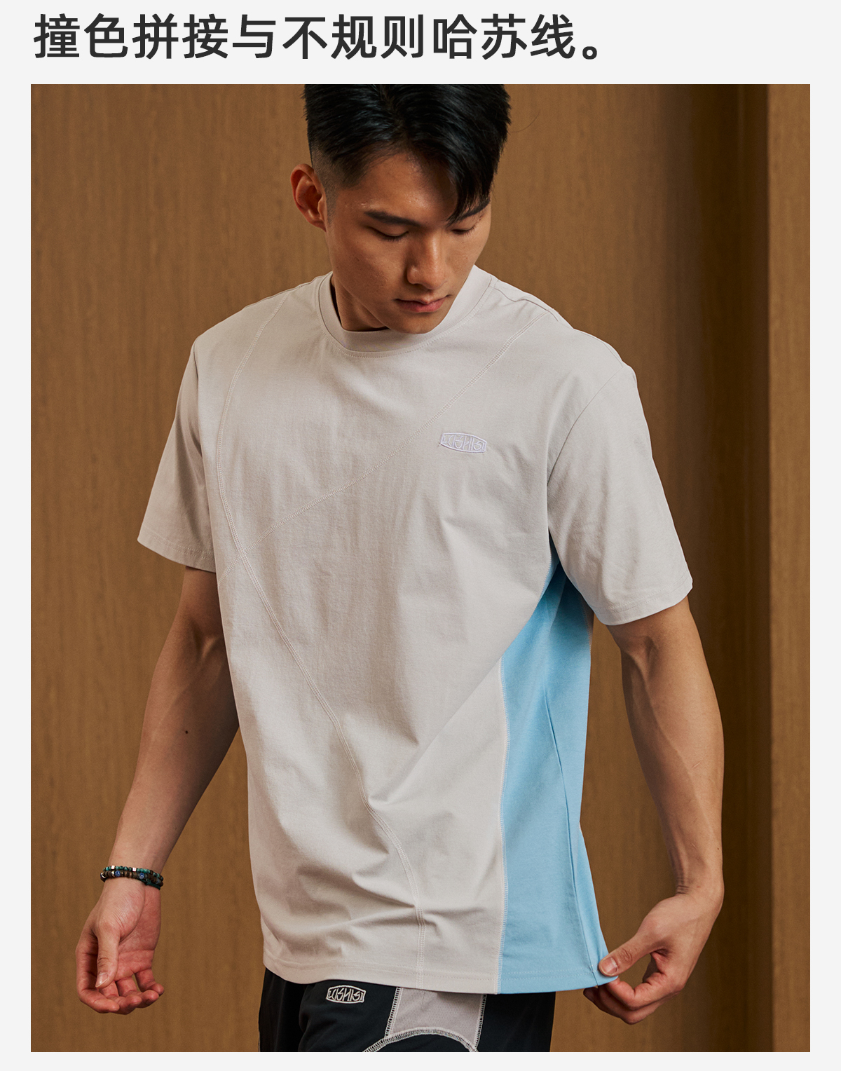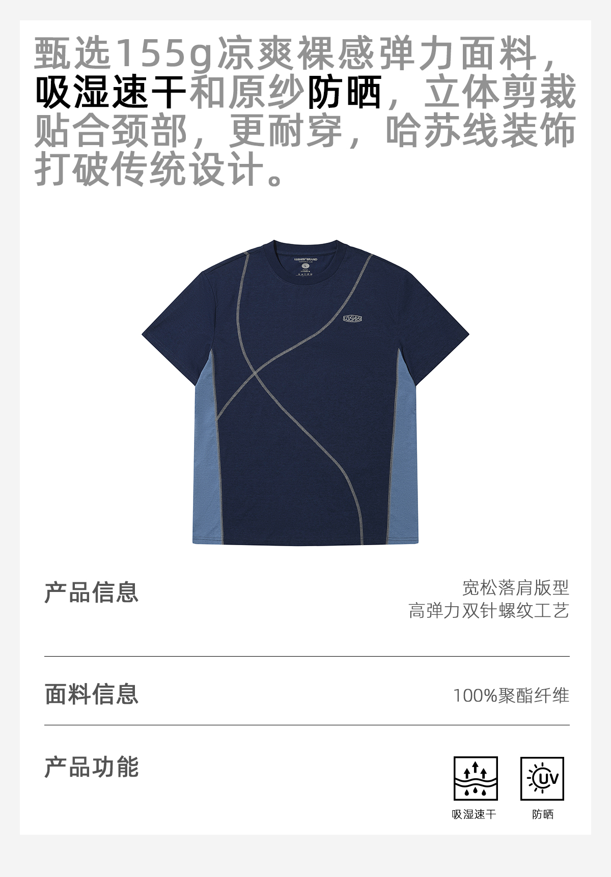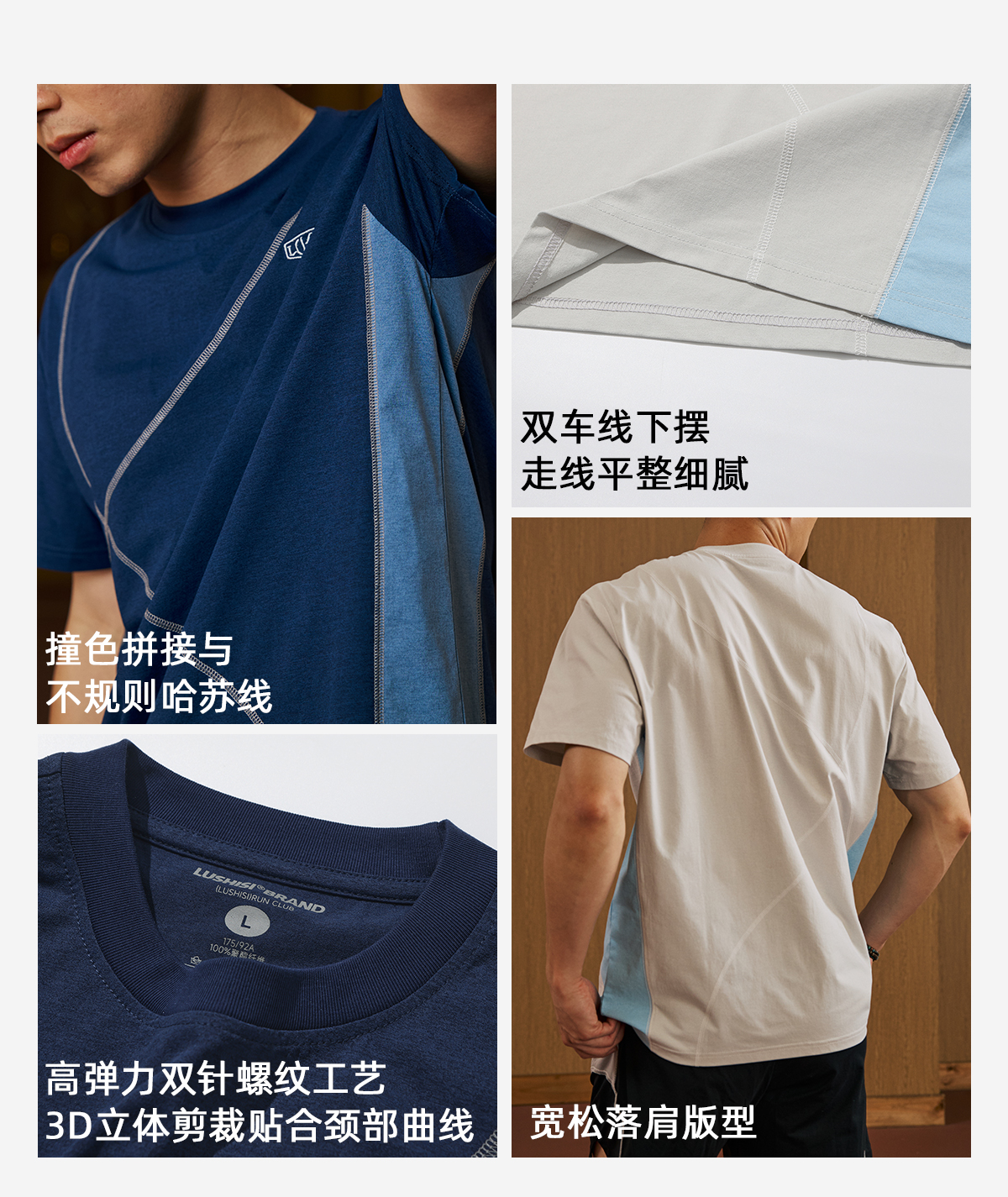 录士LUSHISI乱线主题拼接哈苏线运动训练潮流速干短袖tee恤
