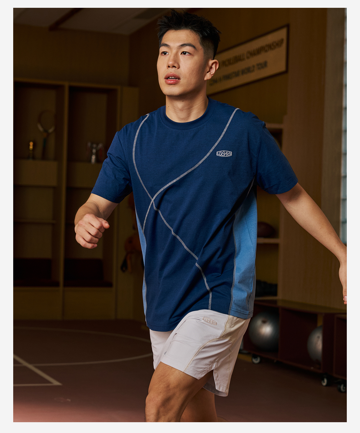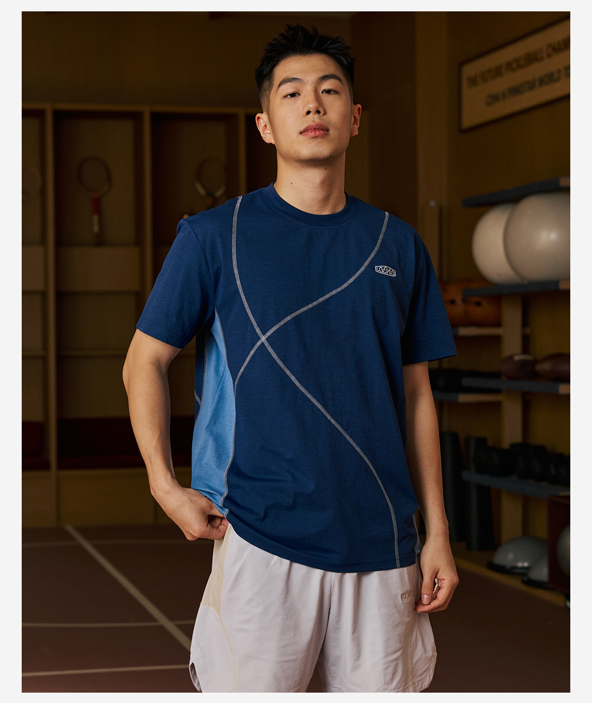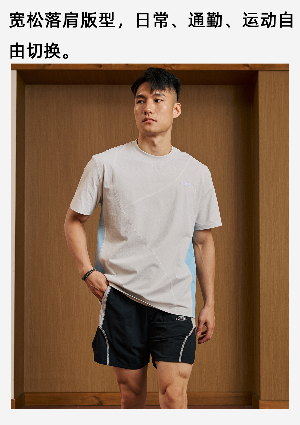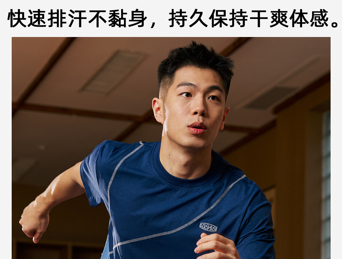 录士LUSHISI乱线主题拼接哈苏线运动训练潮流速干短袖tee恤