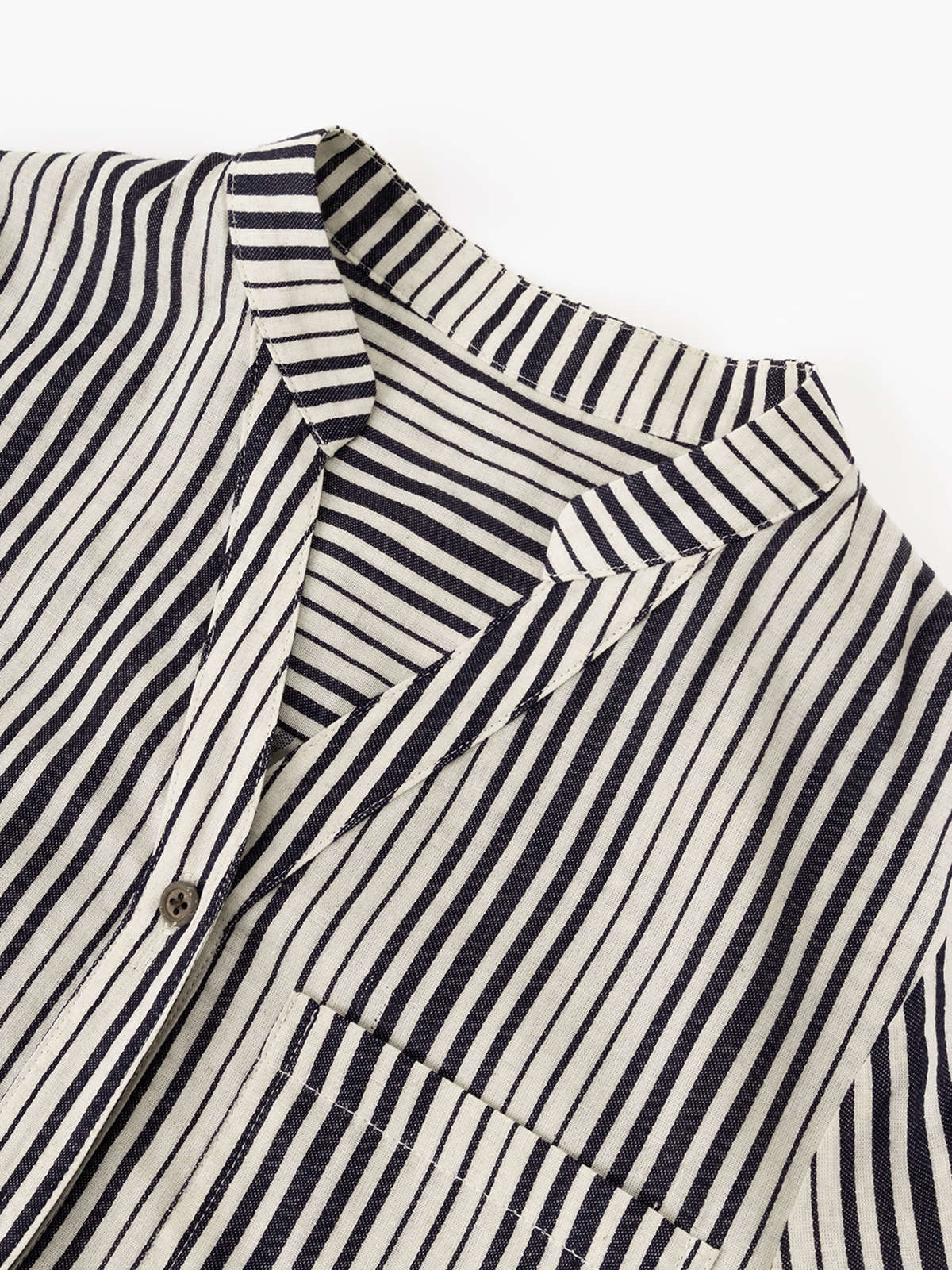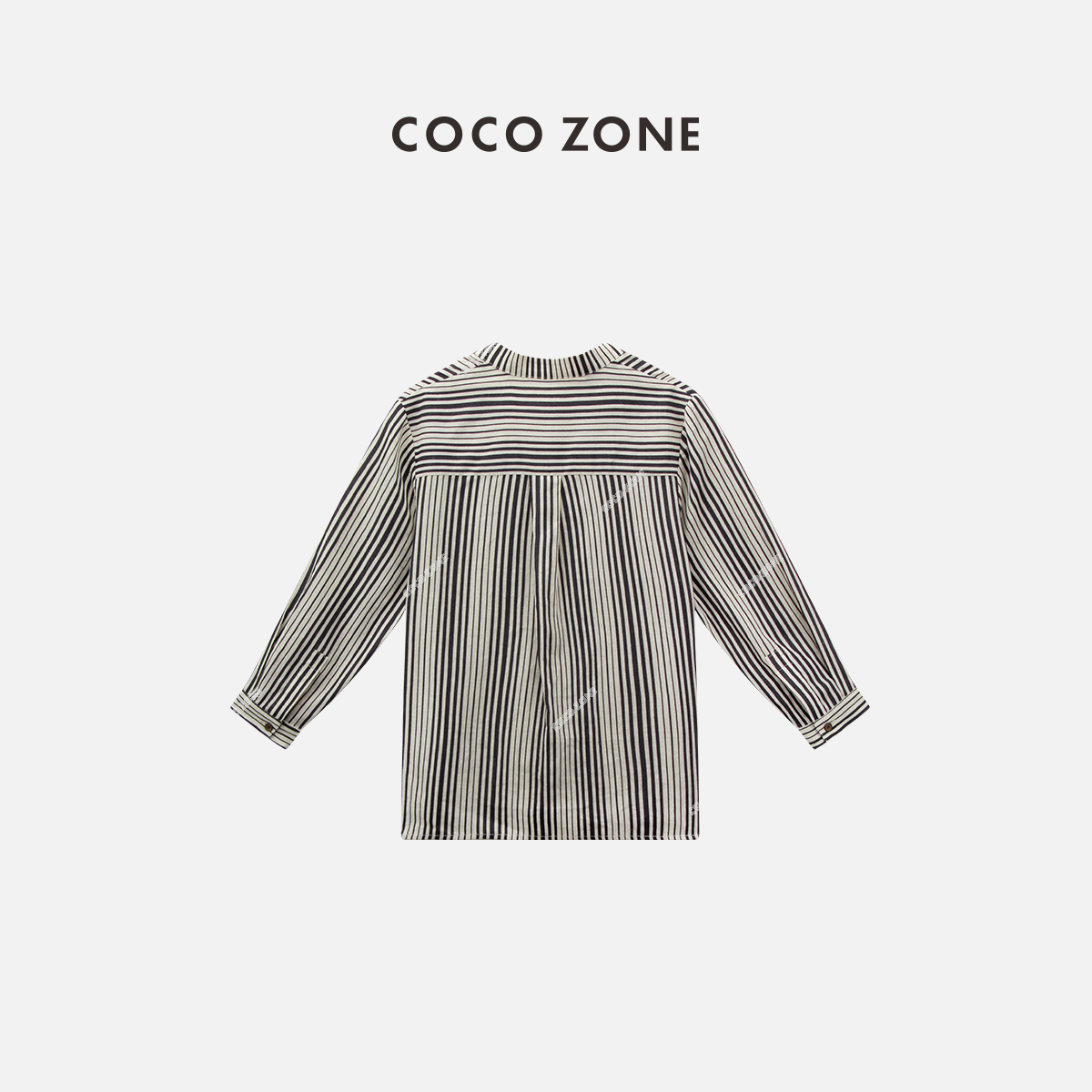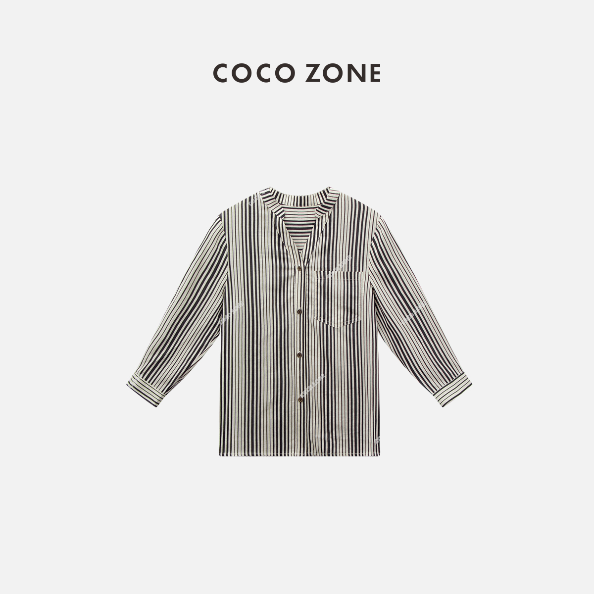 COCO ZONE 薄款V领条纹衬衫女百搭单排扣长袖上衣CC1B1230