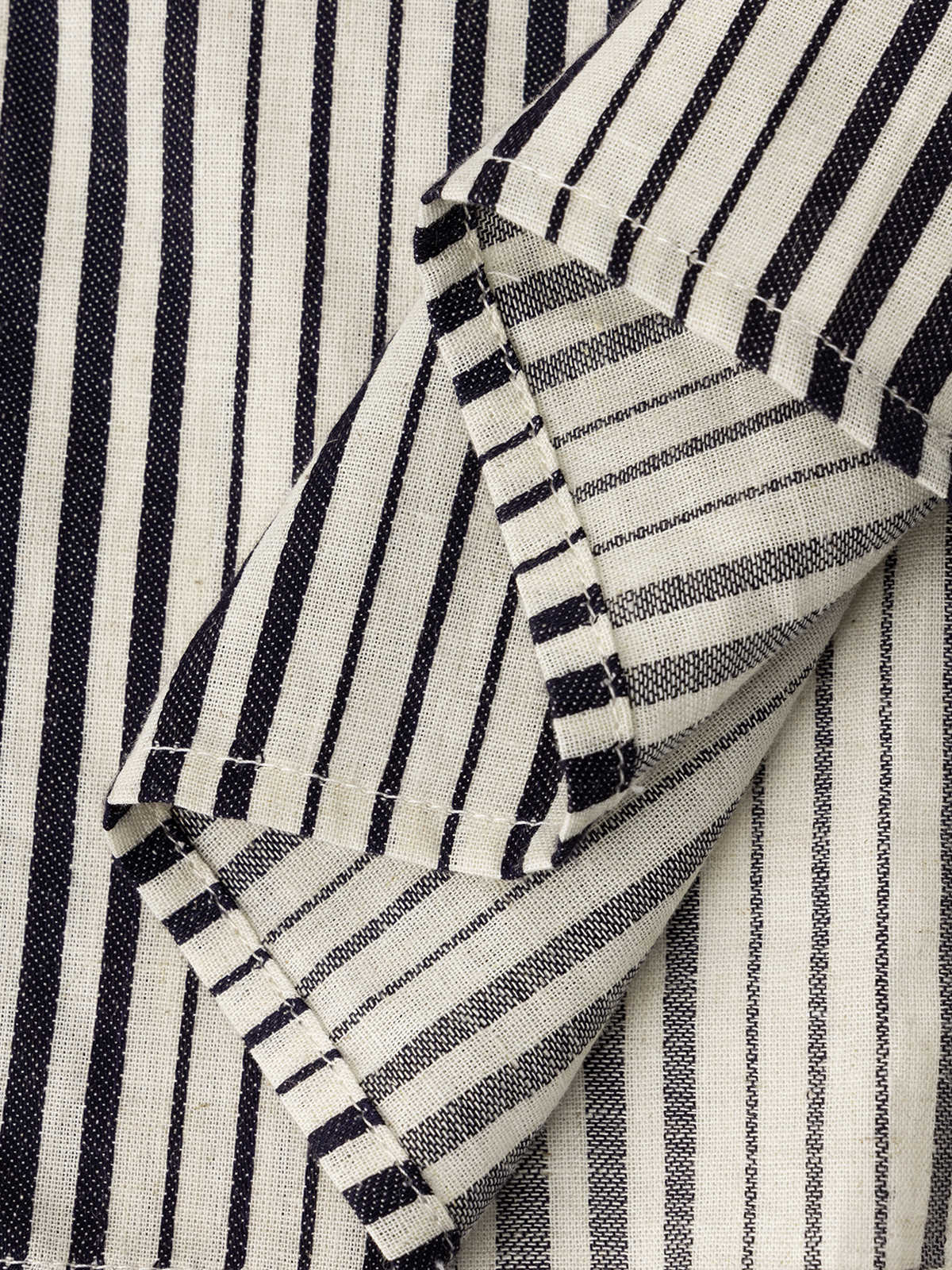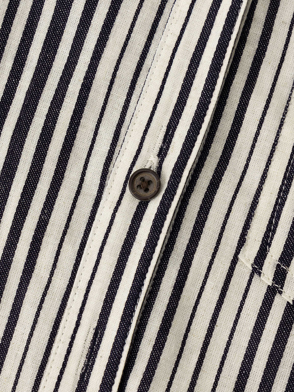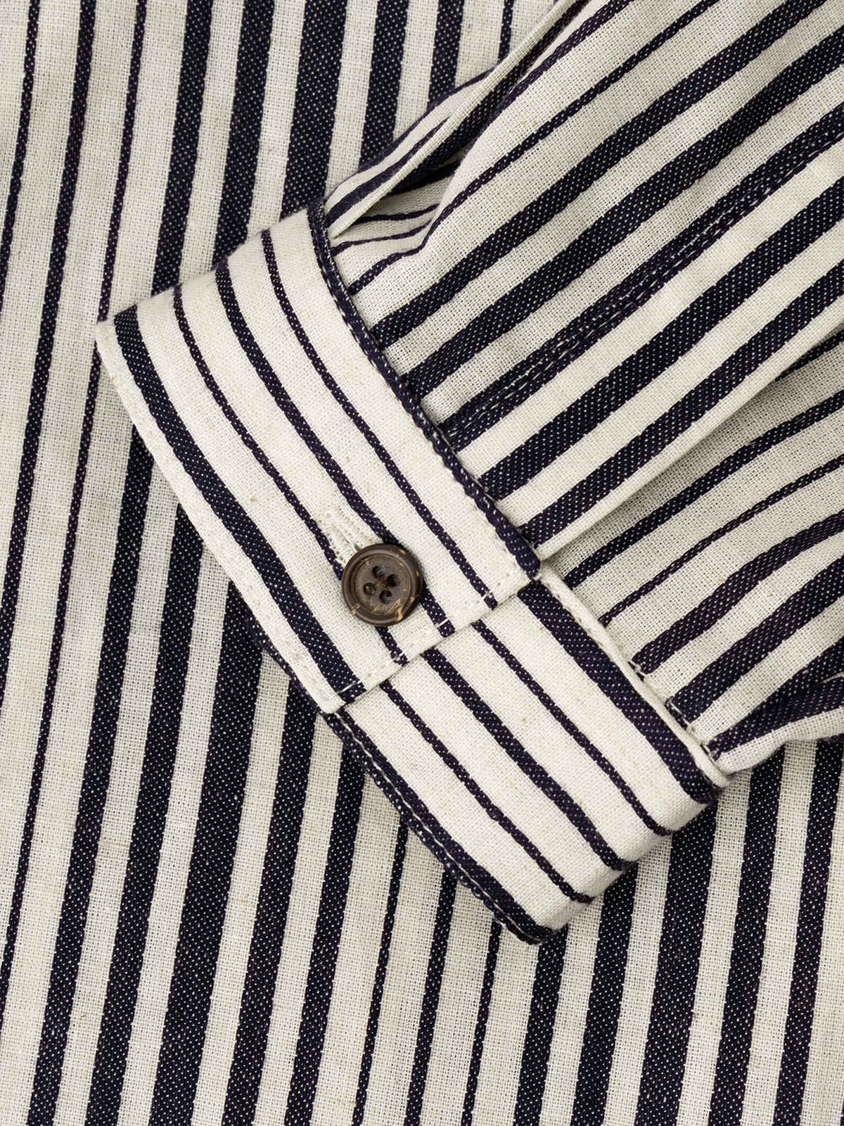 COCO ZONE 薄款V领条纹衬衫女百搭单排扣长袖上衣CC1B1230