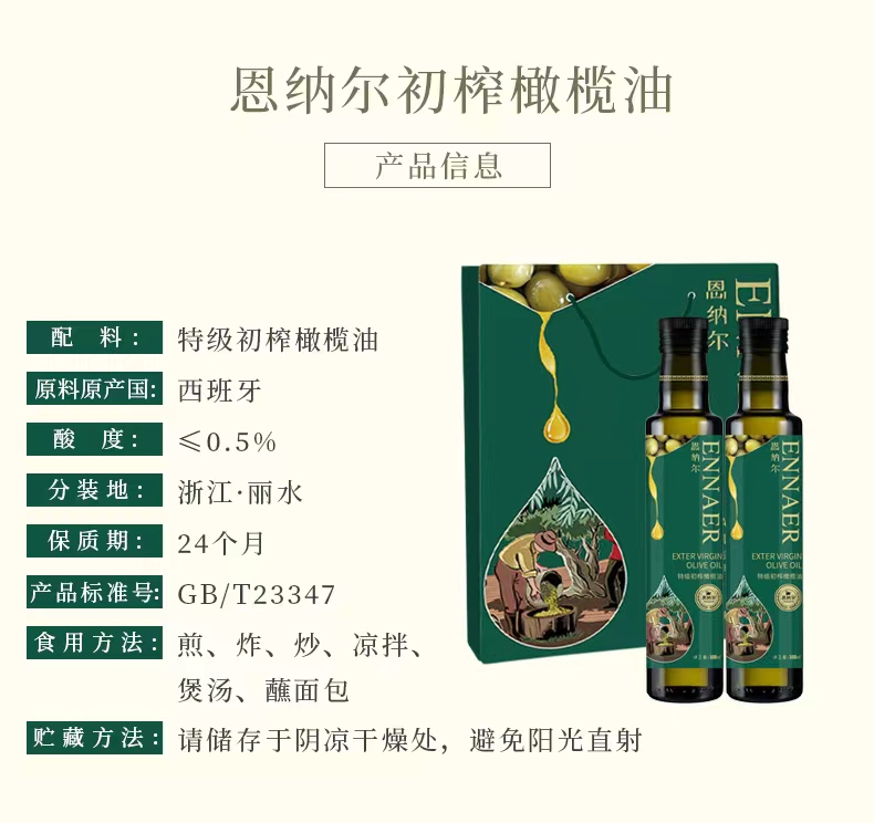 【鼎】恩纳尔特级初榨橄榄油500ml*2