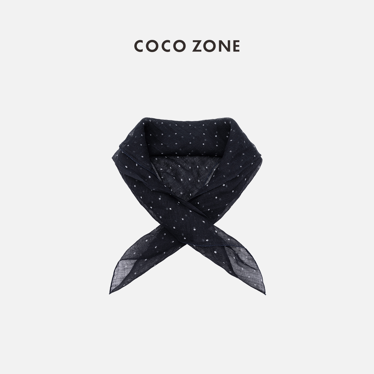 COCO ZONE100亚麻夏季高级感波点丝巾时尚百搭小方巾 CC1B0718