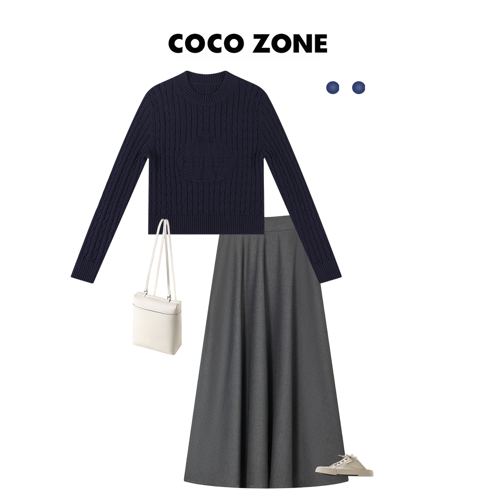 COCO ZONE 刘 一一 【羊毛混纺】H型纯色系带半身裙 CD1A1733