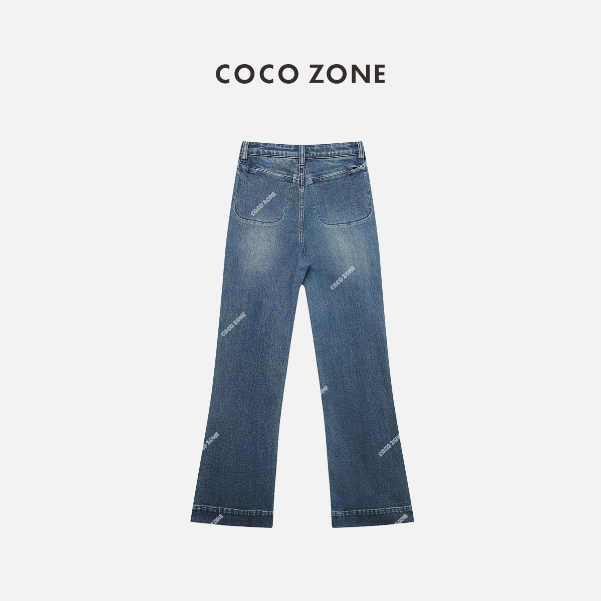 COCO ZONE "早春牛仔裤"复古微喇修身磨白微喇裤 23C19754