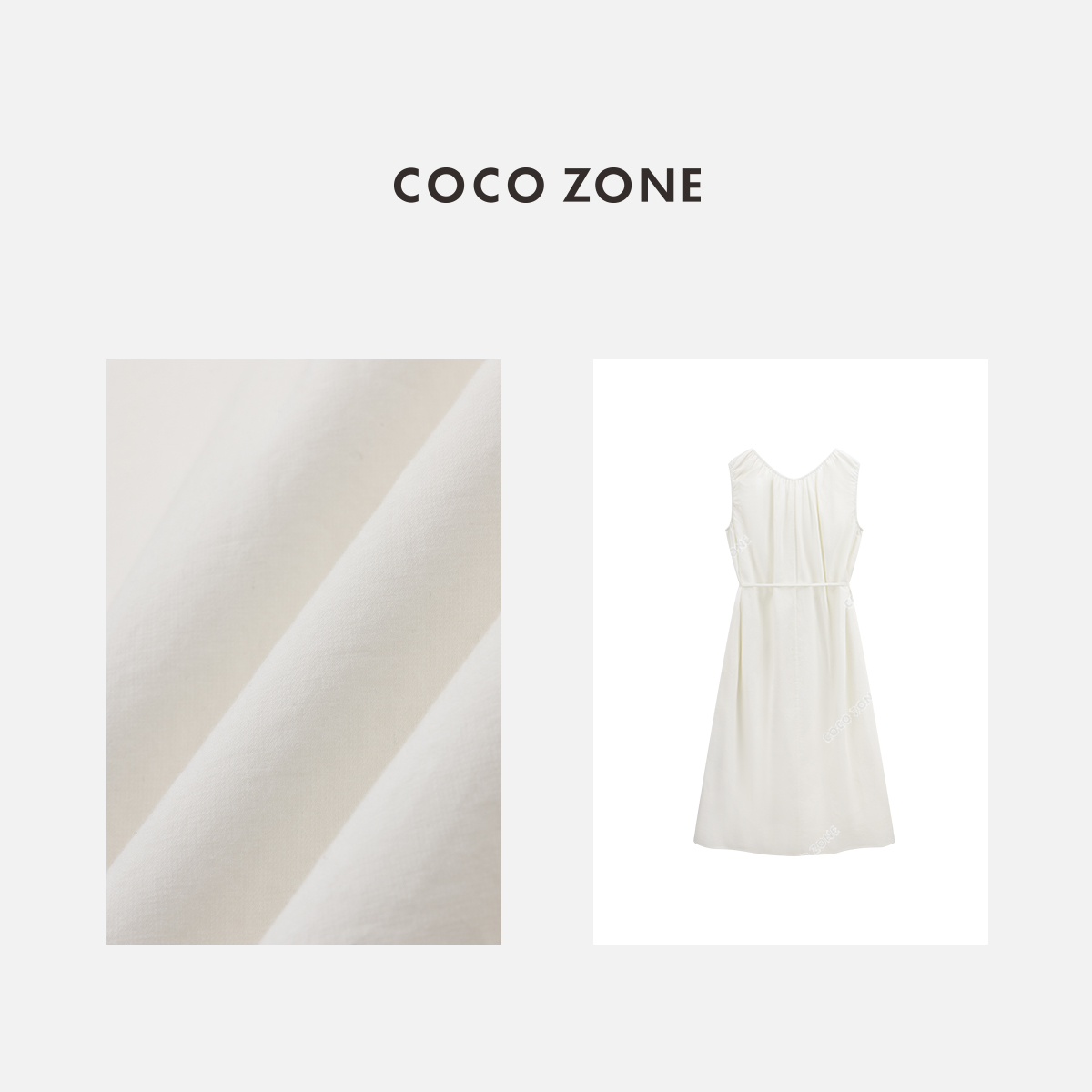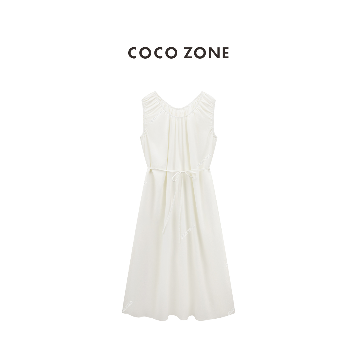 COCO ZONE 100棉夏季纯色抽绳收腰吊带裙v领连衣裙CC1B1137